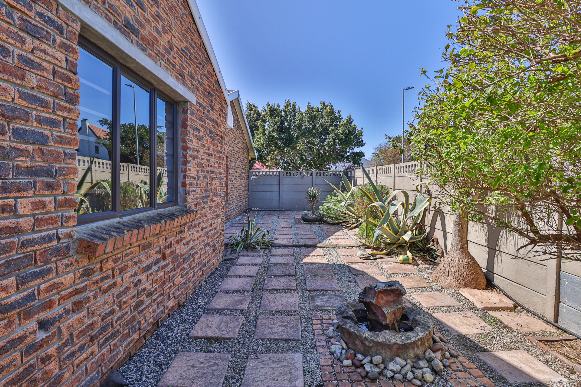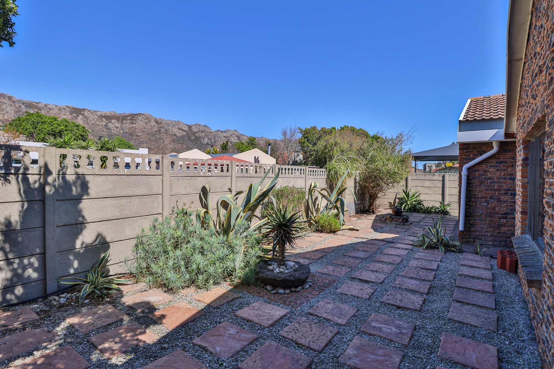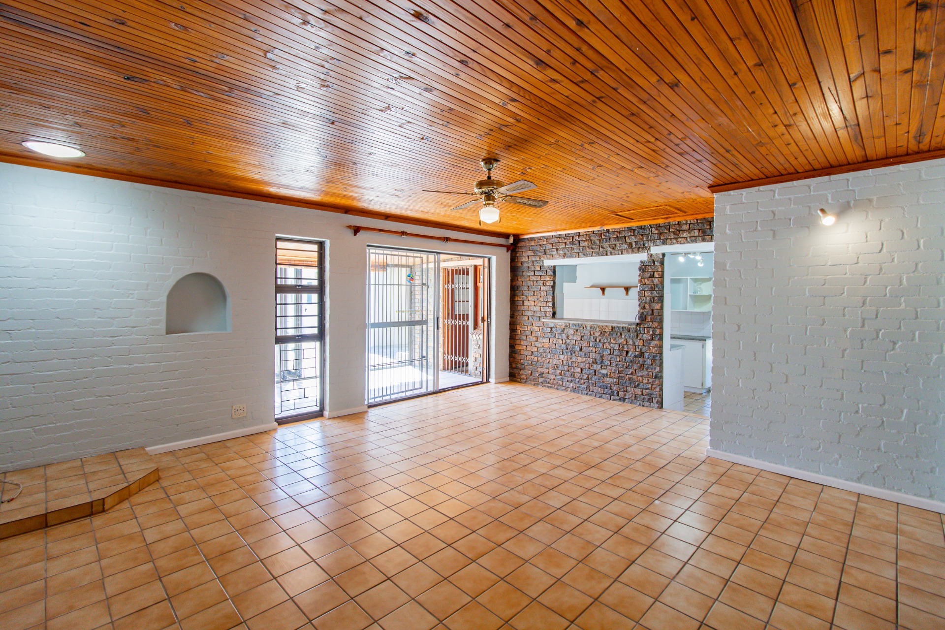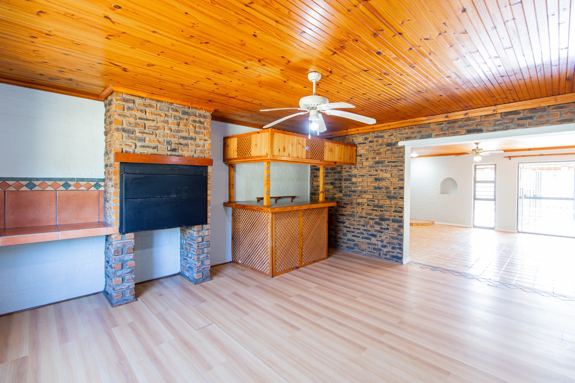 This home offers an open plan living areas with a large lounge and dining/family room with an indoor braai for those cold winter nights. The entertainment area comes with additional built-in braai, stacker doors leading out onto a enclosed, paved swimming pool area.