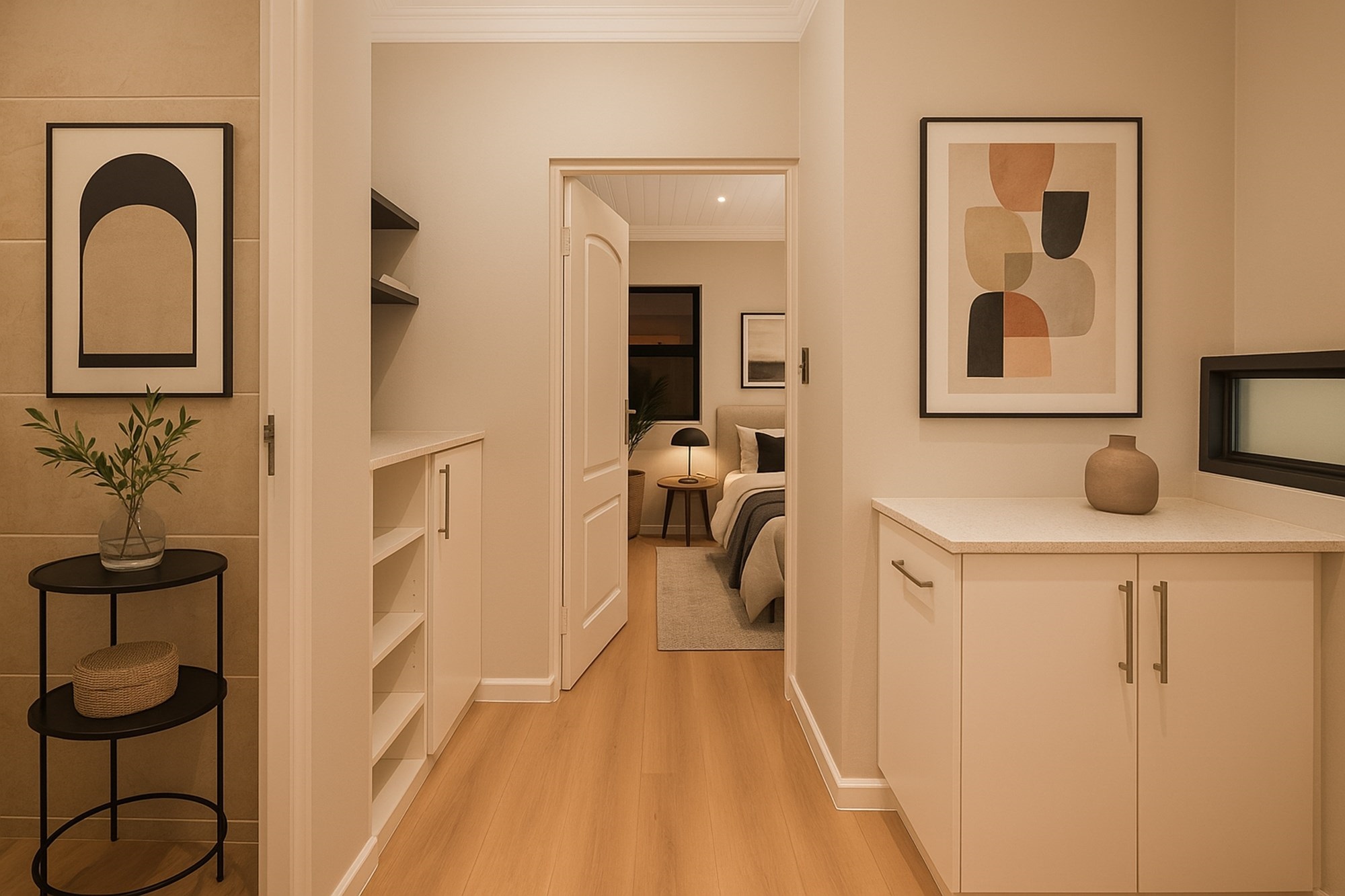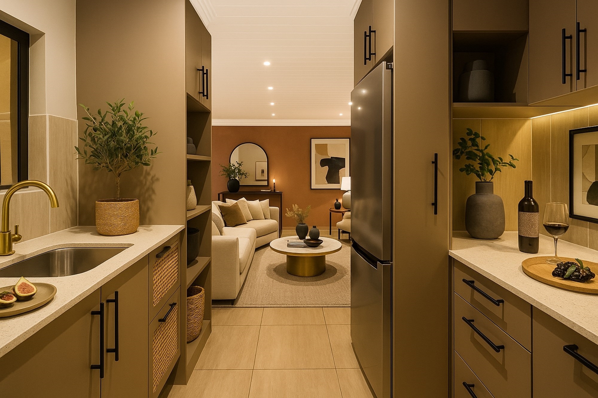 The floor plan maximizes the living areas to provide a flow that is perfect for entertaining guests or spending quiet evenings at home. The functional kitchen opens up to a warm, inviting living room—a perfect setting for family gatherings or casual dinners. Outside, a secured parking space ensures safe access, and potential for additional outdoor enhancements is promising for garden lovers.