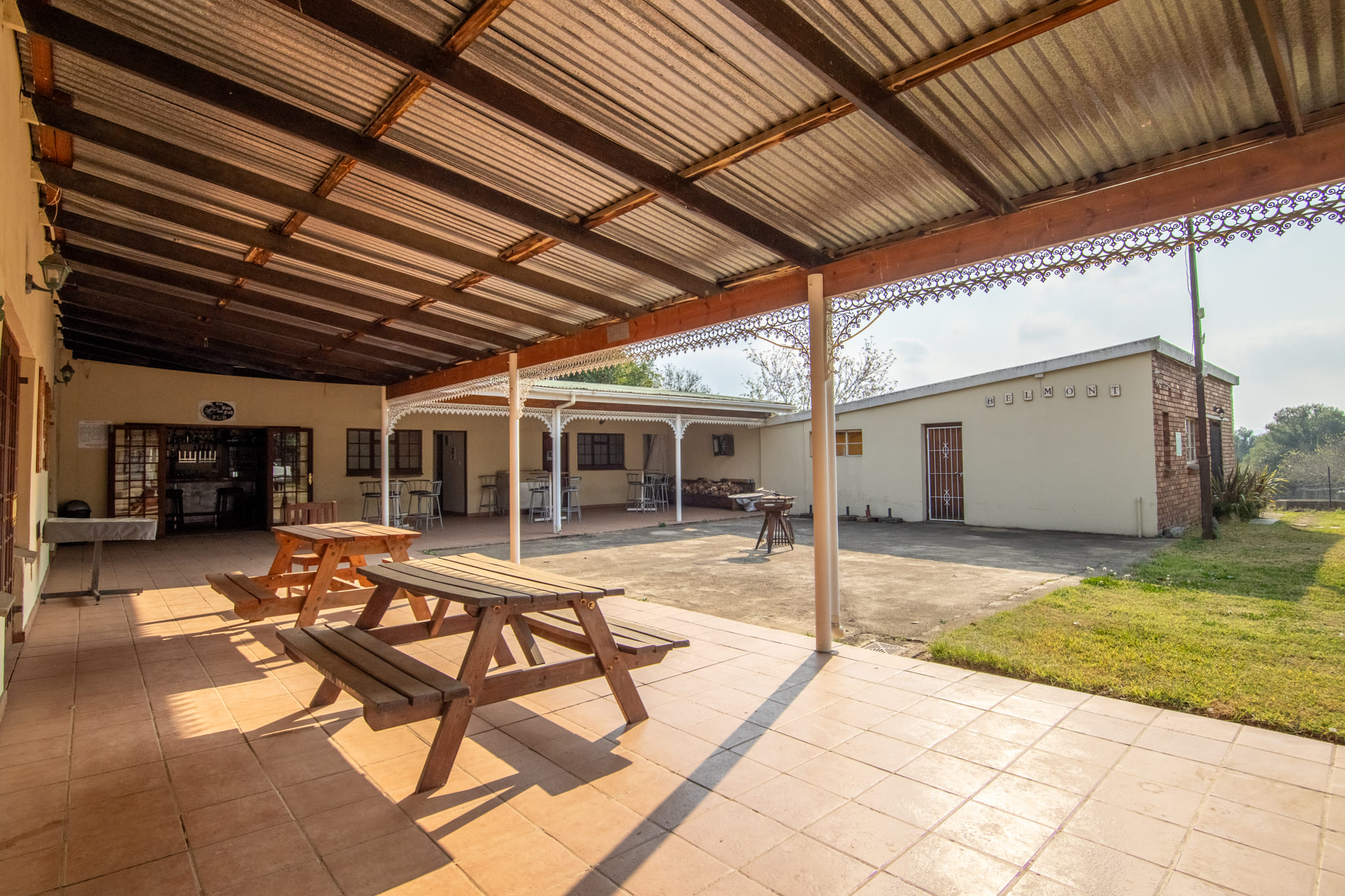 The property includes infrastructure for weddings and conferences, catering for up to 120 guests. Facilities feature a bar, lounge, toilets, office, buffet server, furniture, and all essentials for hosting. There are seven large B&B rooms, each with open-plan layouts, kitchenettes, and private bathrooms – ideal for weekend visitors, corporate groups, or wedding guests. All furniture and equipment is included for the conference / wedding venue and the B&B.
