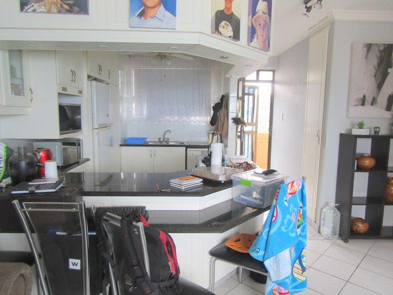 The open-plan lounge and dining area seamlessly connects to a fully equipped kitchen, creating a bright and airy space with stunning ocean views. The kitchen is beautifully fitted with ample cupboard space, making meal preparation a pleasure.