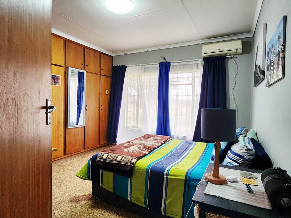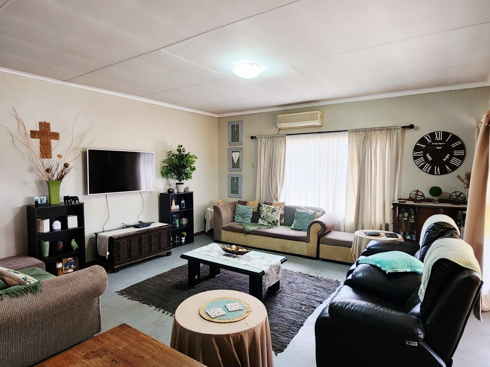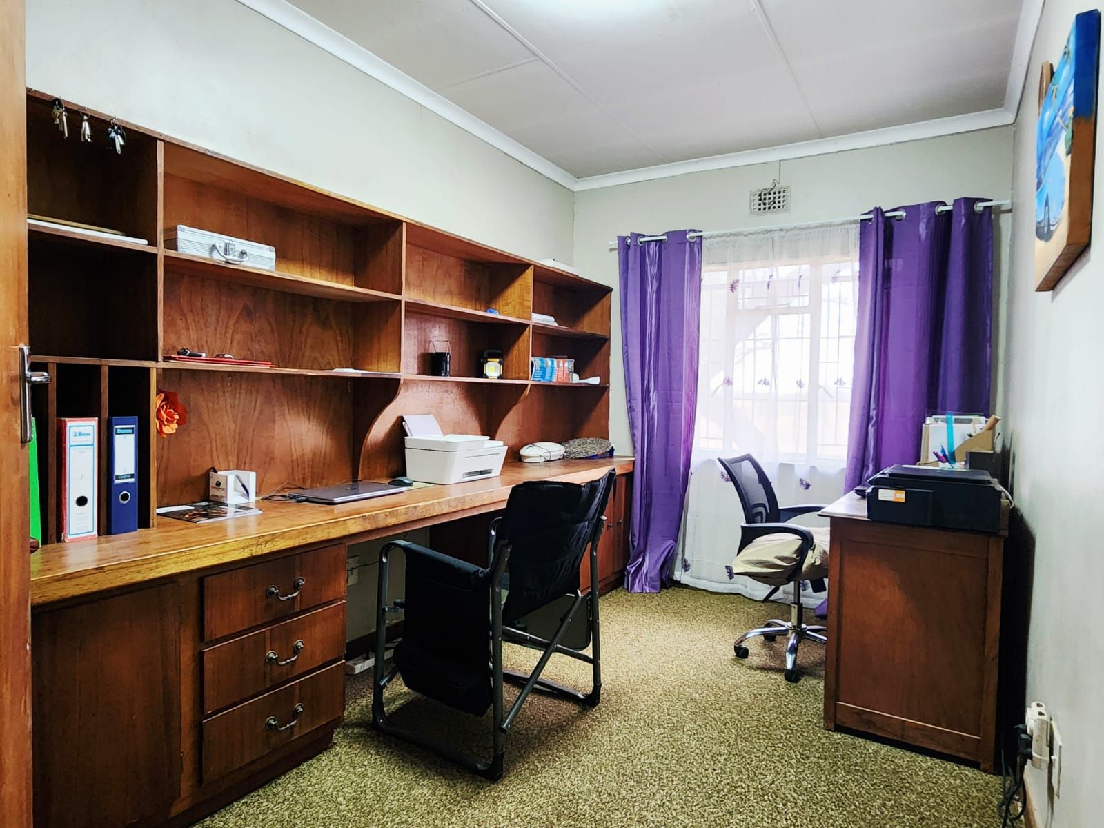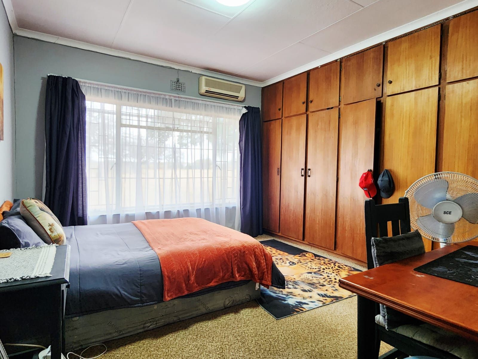 The main house boasts a tiled roof, brick walls, and steel-framed windows, providing durability and charm. Inside, you’ll find an open-plan dining area and family/TV room, a well-appointed kitchen complete with a scullery, laundry, and pantry, as well as a dedicated office or study space. The home offers four spacious bedrooms with built-in cupboards—one with a ceiling fan and three equipped with air conditioning. There are also three bathrooms, big kitchen with a separate laundry room and a double garage for added convenience.