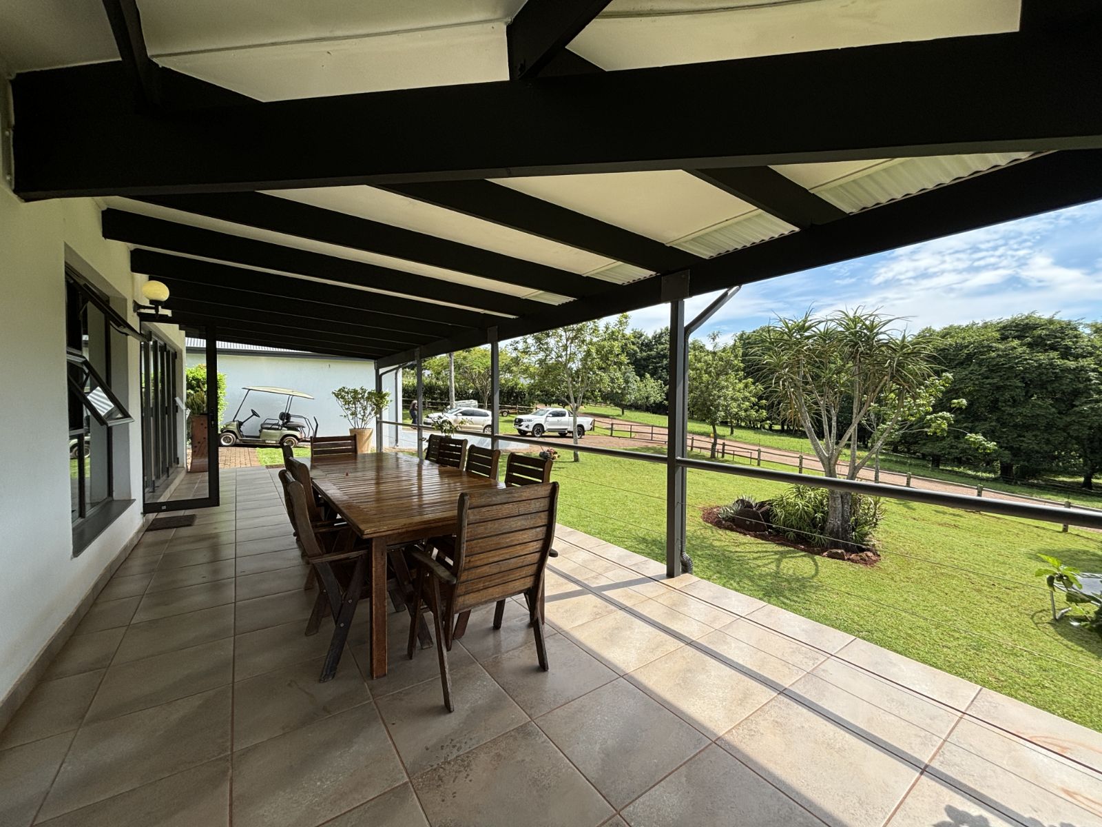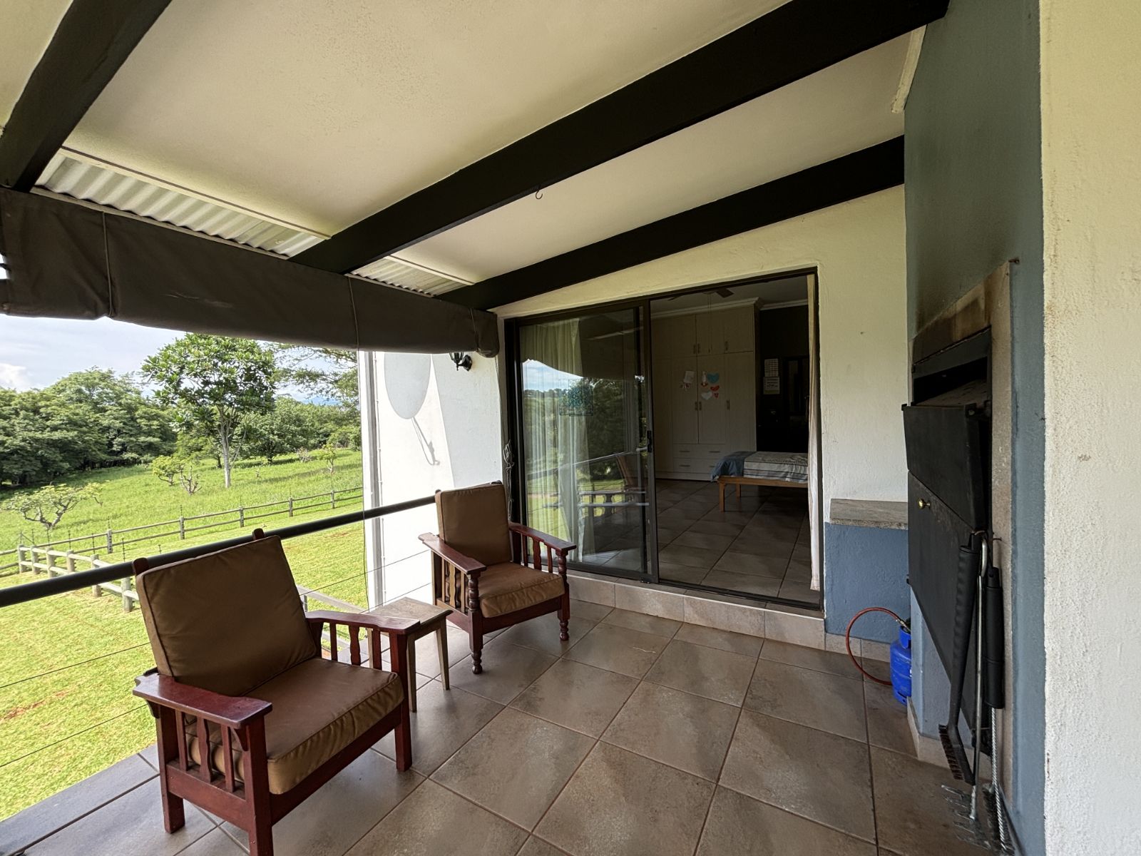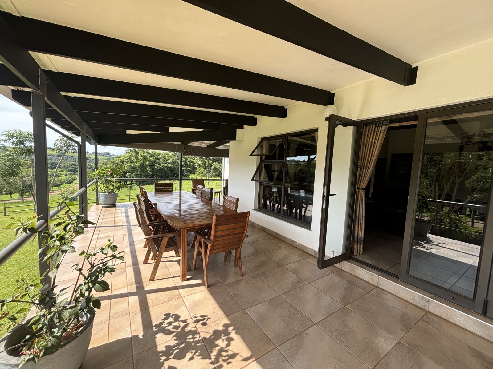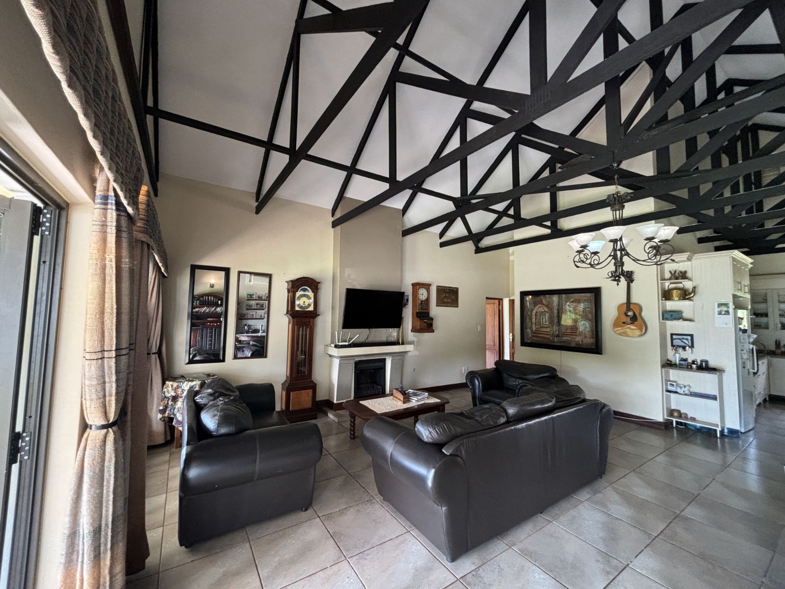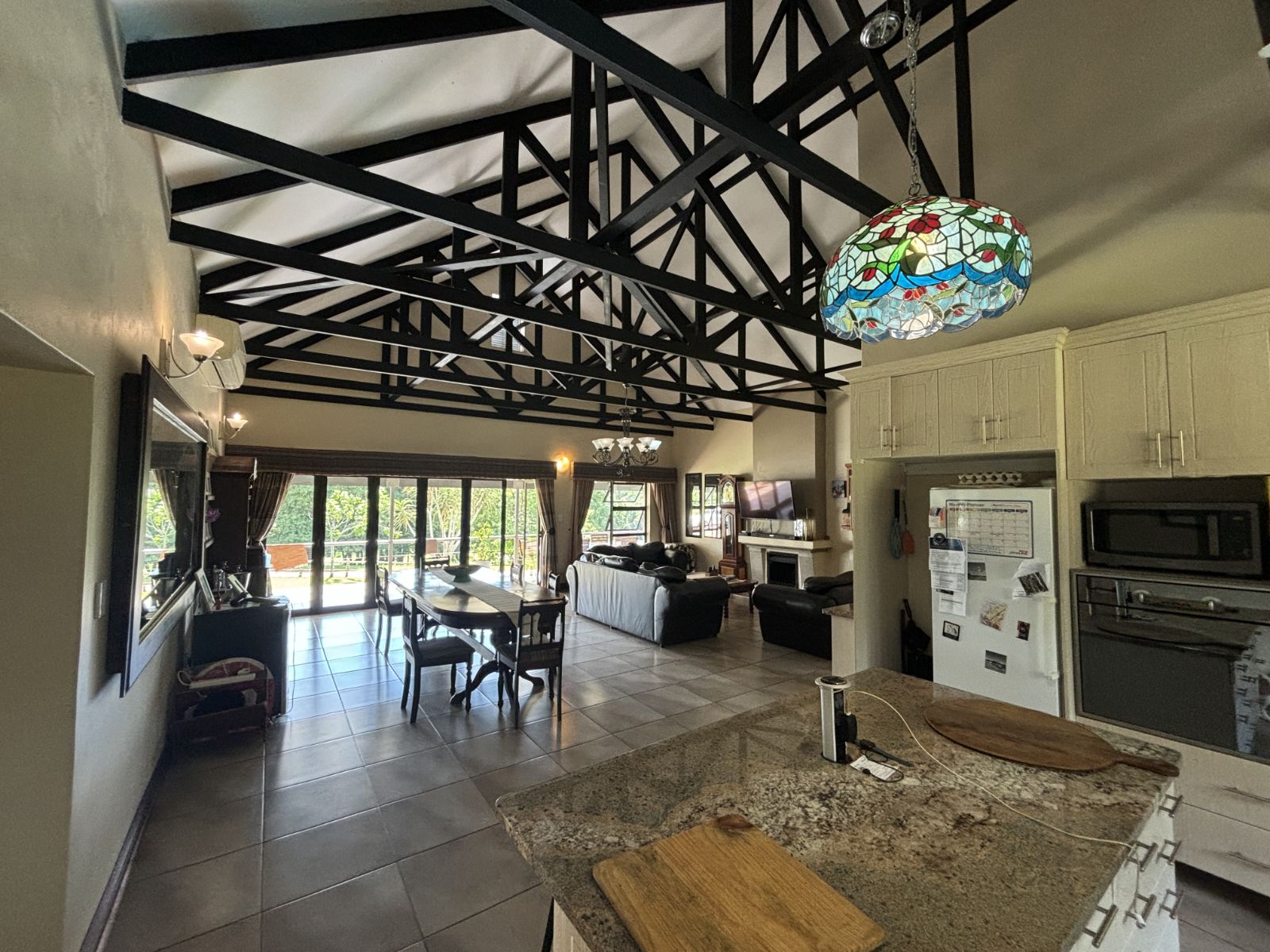 Open-Plan Living Area ideal for family gatherings and entertaining, with stacking doors opening onto the patio featuring a built-in braai (With aircon in living area).