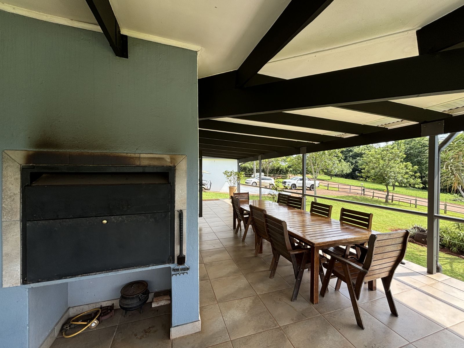 Lapa with a built-in braai and pizza oven, ideal for outdoor dining and entertaining.