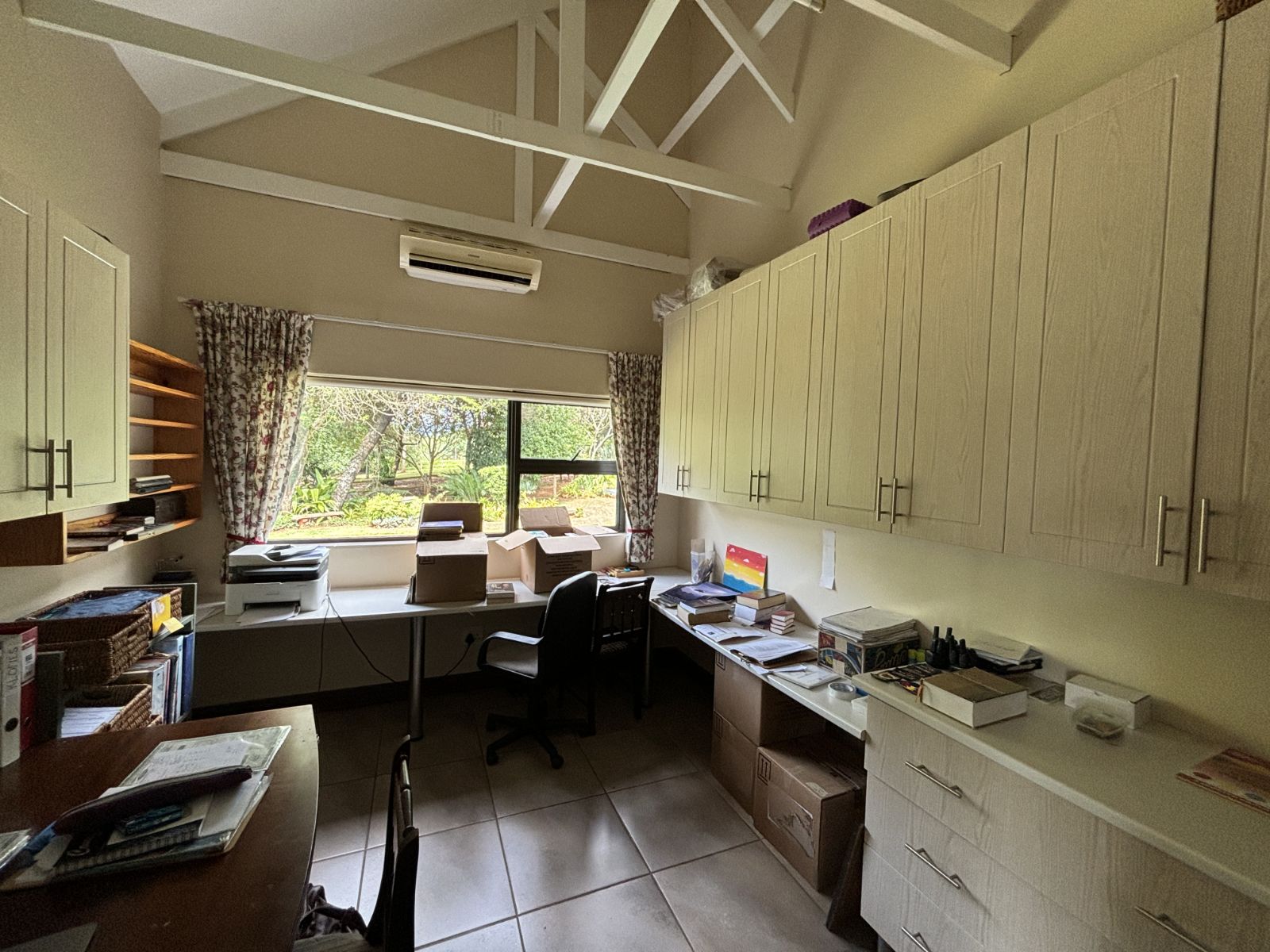 4 Spacious Bedrooms providing ample space for comfort and relaxation (Main bedroom with aircon). One of these rooms are currently used as a large Study complete with wall-to-wall built-in cupboards and a work station, perfect for home offices which can be be converted into a 4th bedroom.