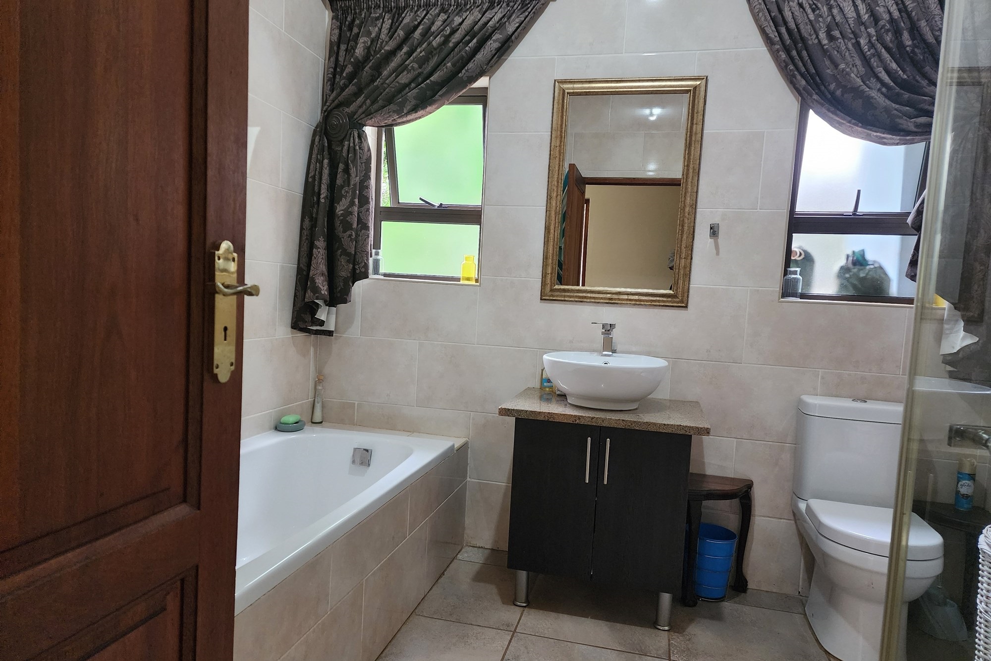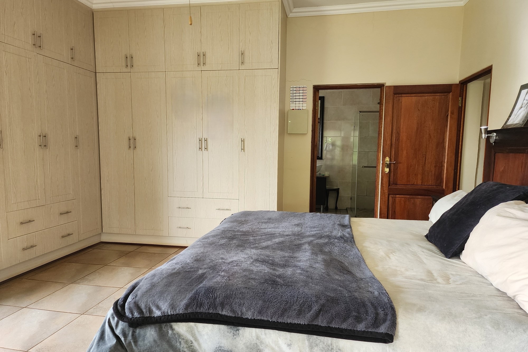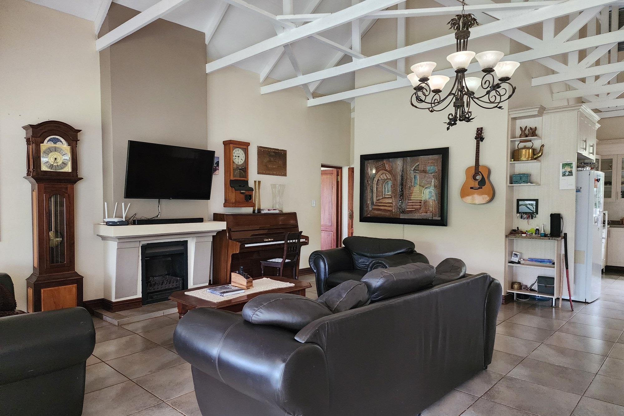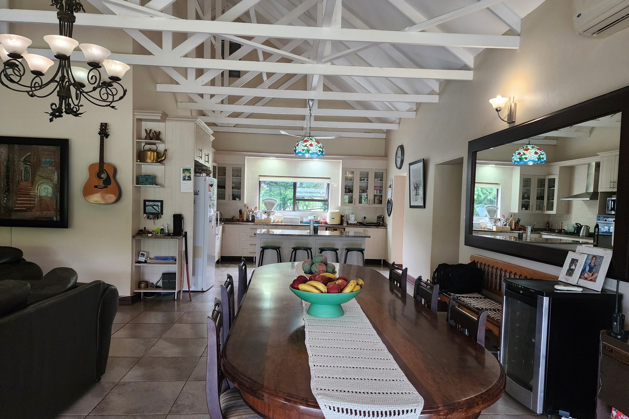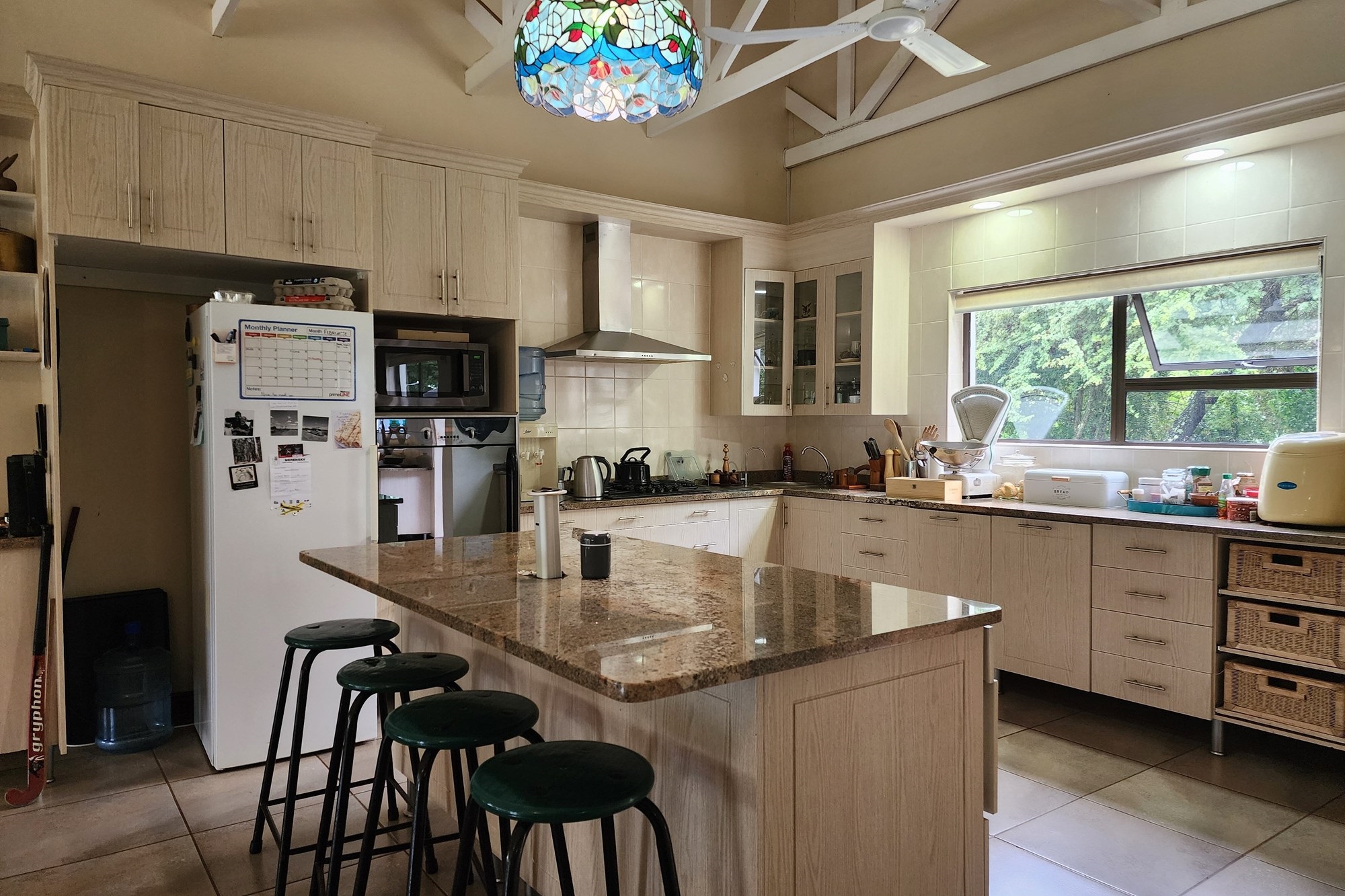 The well-appointed kitchen is both stylish and functional, offering ample cupboard space and a separate scullery to keep everything organized. Whether you`re preparing a casual family meal or hosting a gathering, this kitchen is designed to impress.