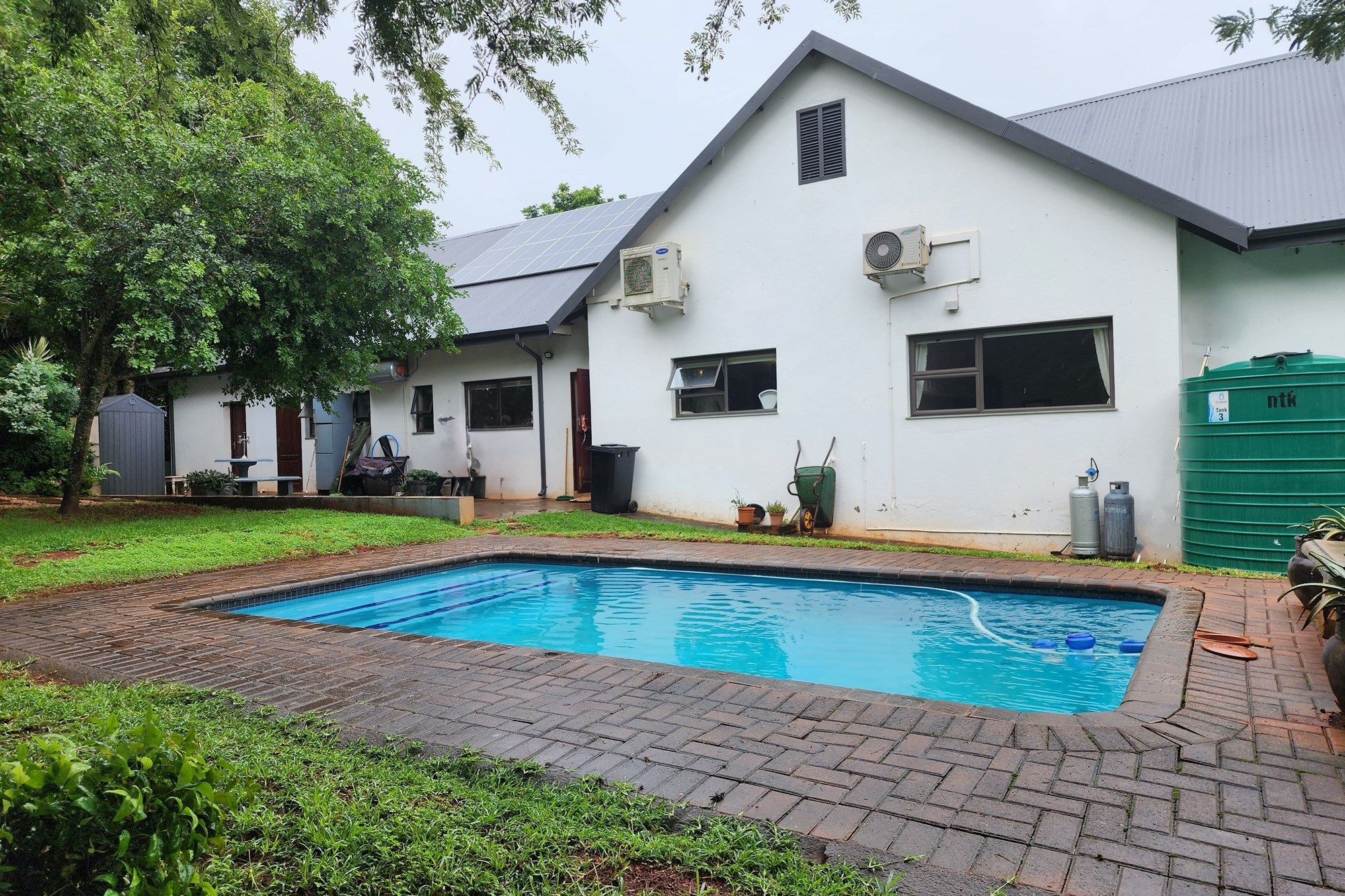 With solar panels, an inverter, and battery backup, you can enjoy uninterrupted power, while two JoJo tanks provide extra water security. The property is fully enclosed with electrified fencing, security beams, and an advanced alarm system, offering peace of mind in a secure environment.