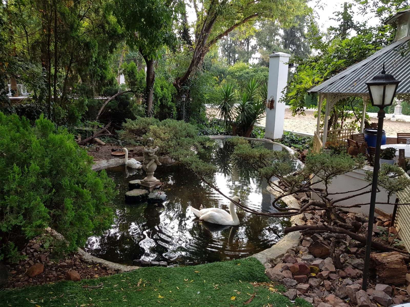The beautifully landscaped gardens, complete with charming water features and serene fishponds, provide additional space for guests to relax and enjoy the surroundings.