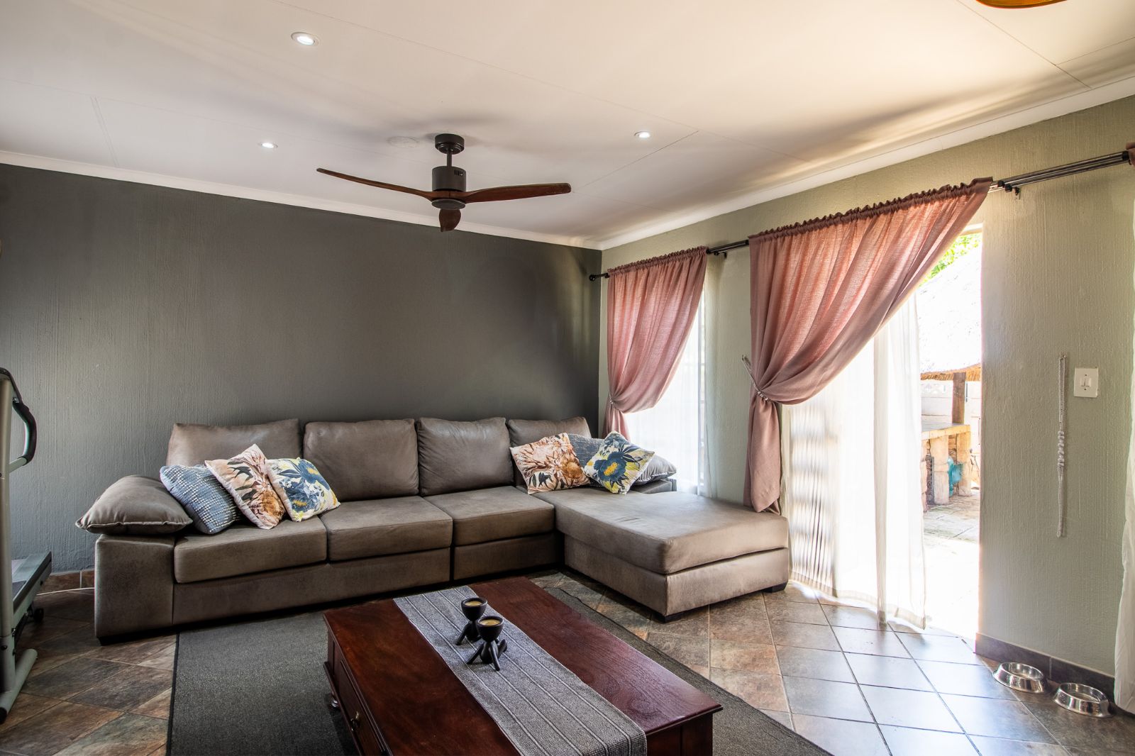 The home offers a comfortable lounge that flows naturally to the outdoor entertainment area, creating a welcoming space for everyday living and relaxed get-togethers.