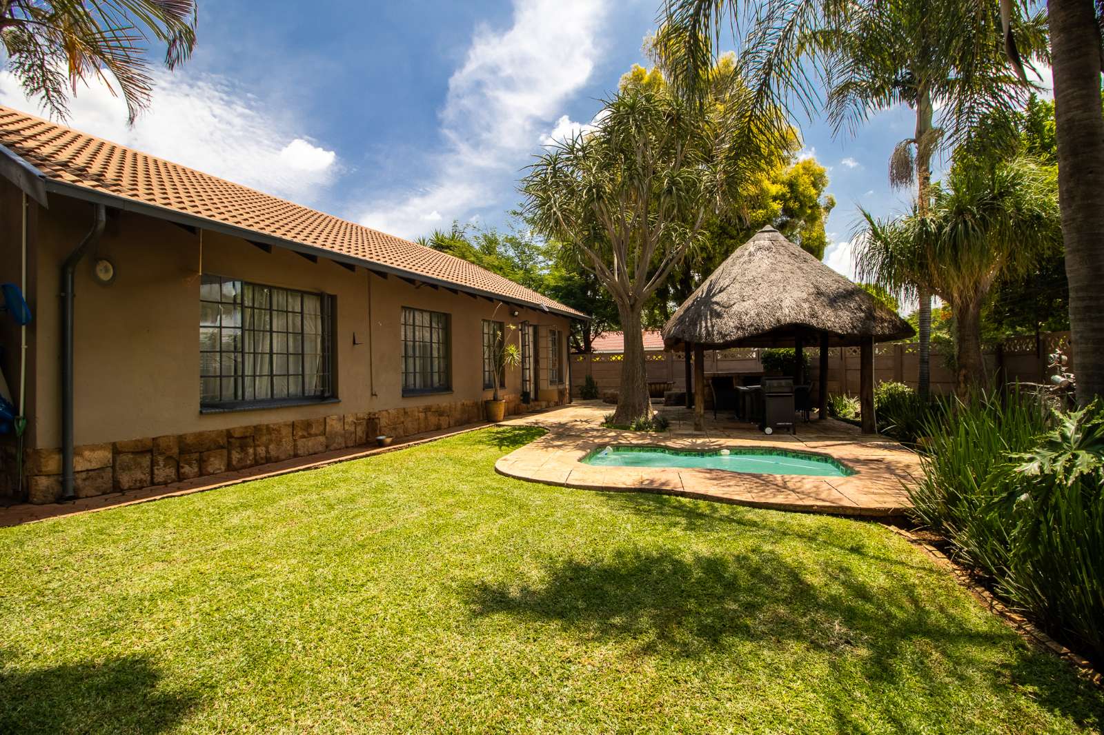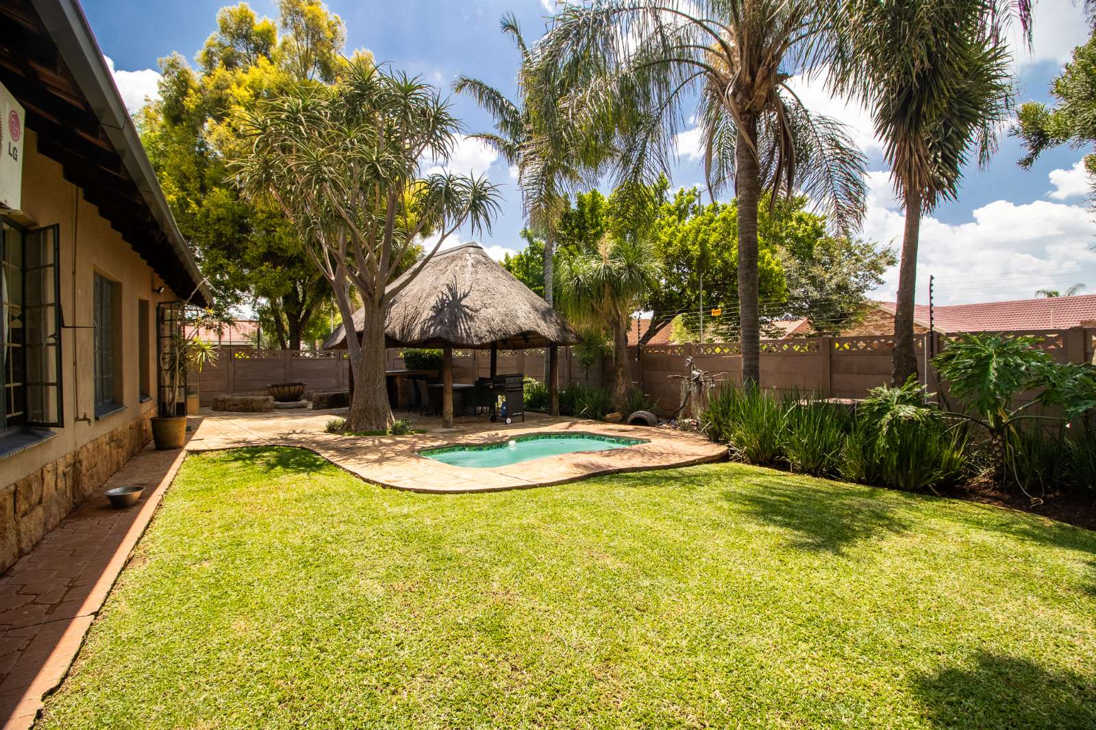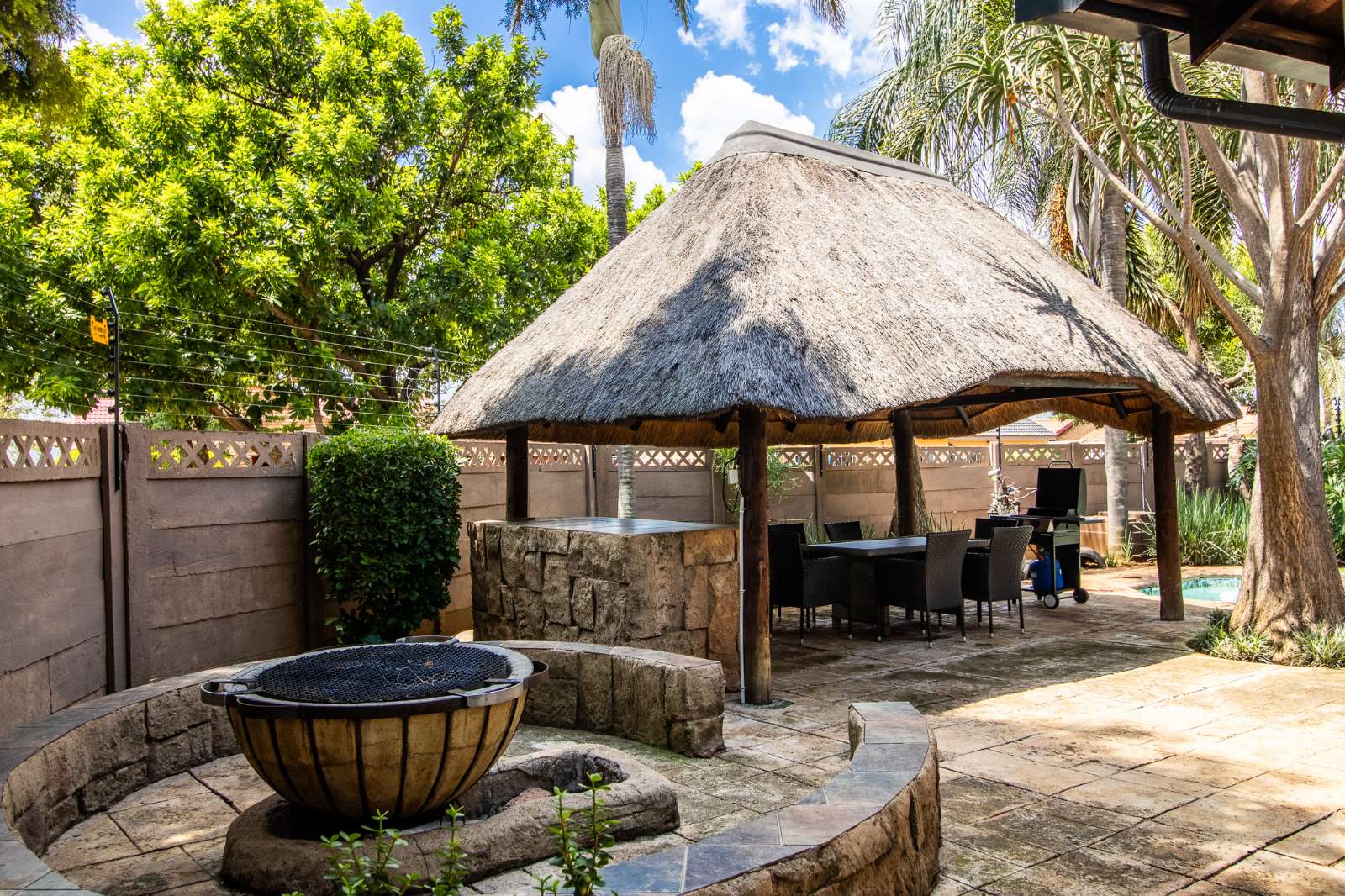 Entertainer’s backyard with a Boma, Lapa and swimming pool