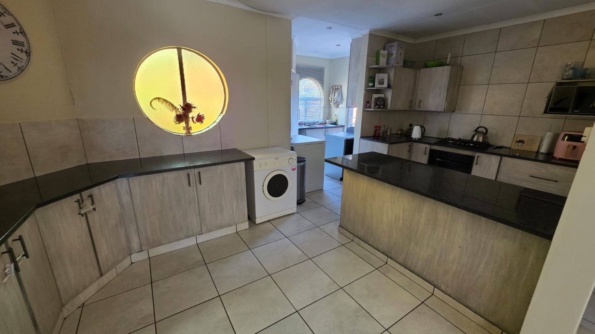 This house is totally in a different class, with features that reek of luxury and comfort set against a backdrop of relaxing, quiet surroundings. The kitchen is every chef’s dream, offering generous granite worktops, a gas stove, a separate scullery, and a dedicated wash-up area that ensures both style and practicality.