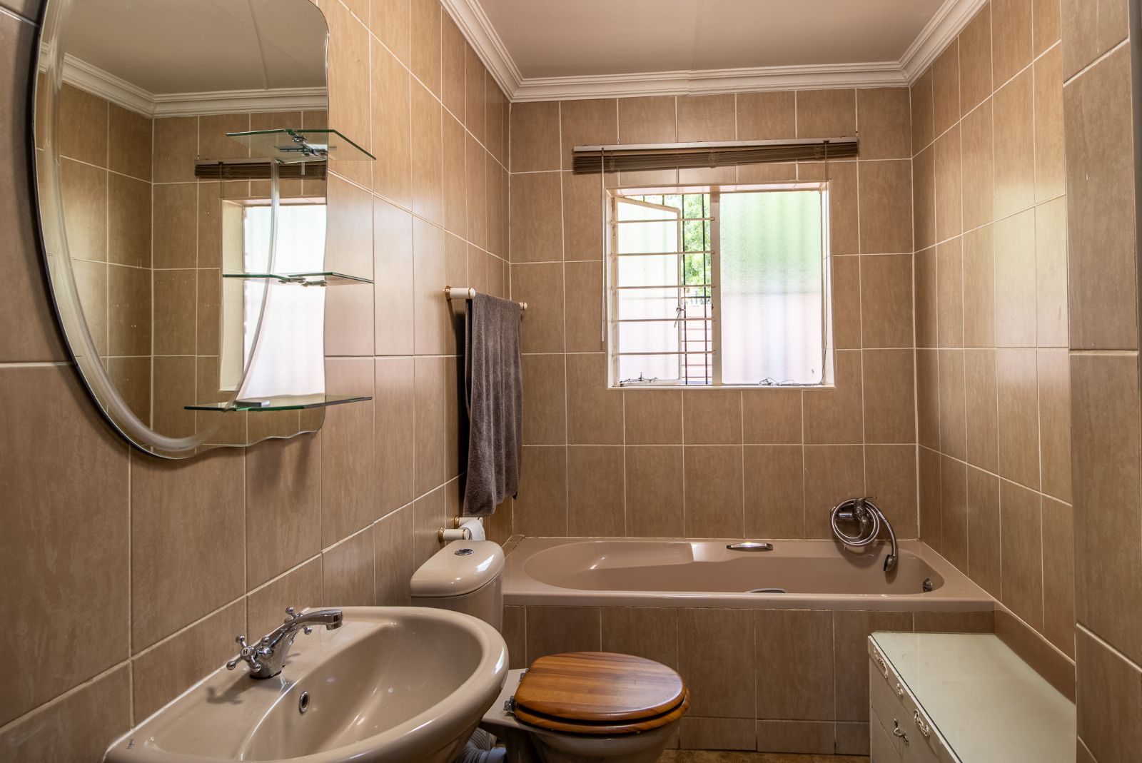 There are 3 well-proportioned bedrooms, all with space for queen or double beds with build-in wardrobes. The main bedroom feels like a calm retreat with soft finishes and a large window as well as an air conditioner. The full bathroom is tiled to the ceiling and offers a bath, shower, basin and toilet for easy day to day living.