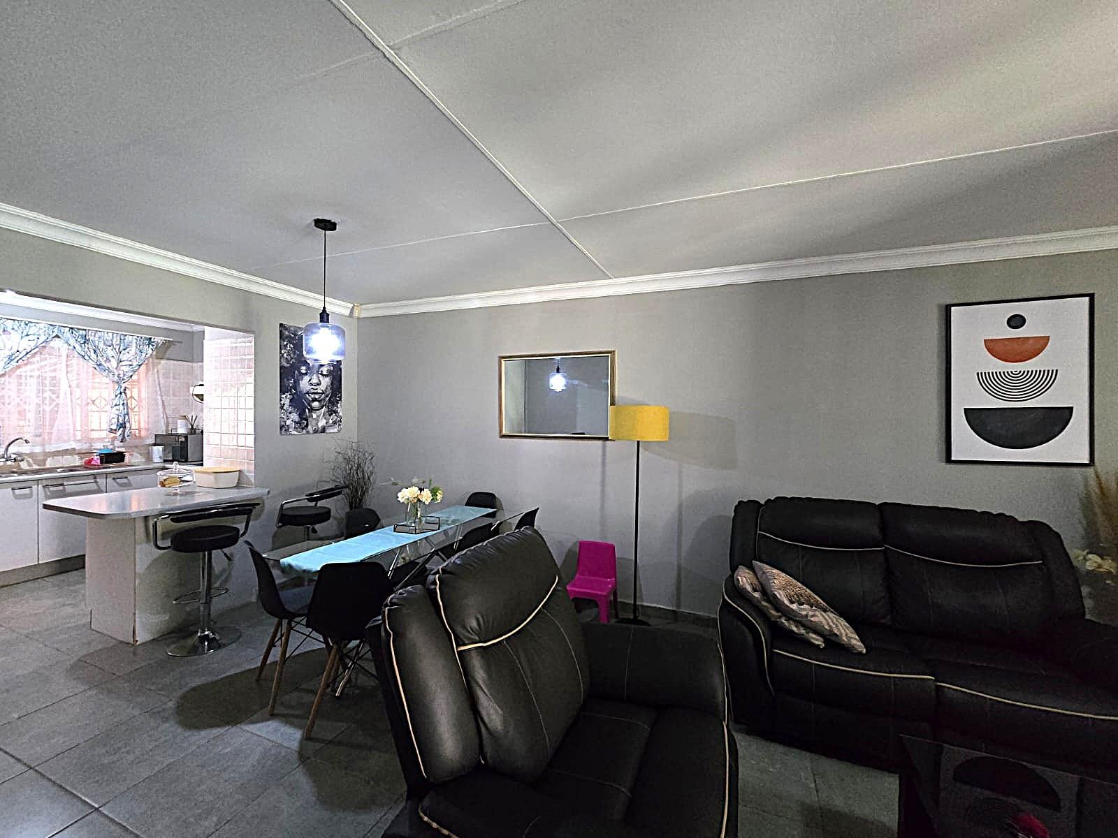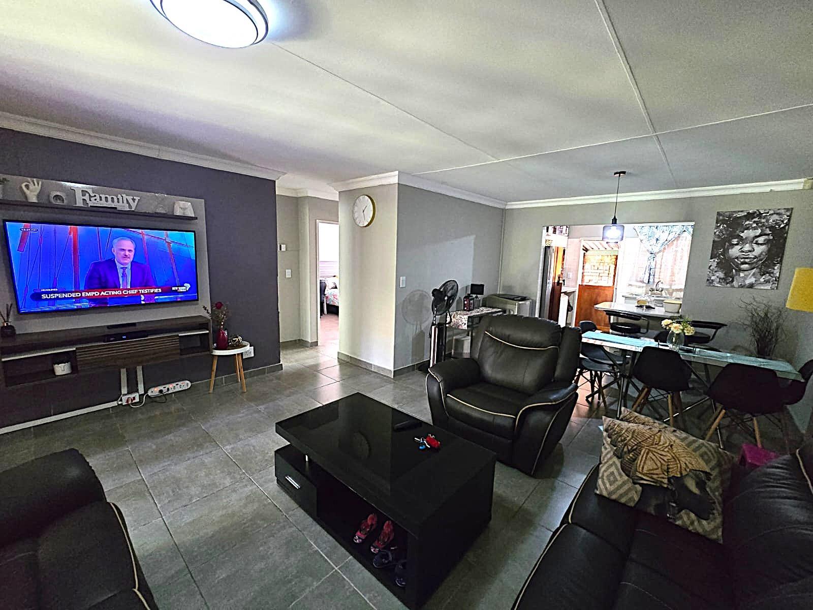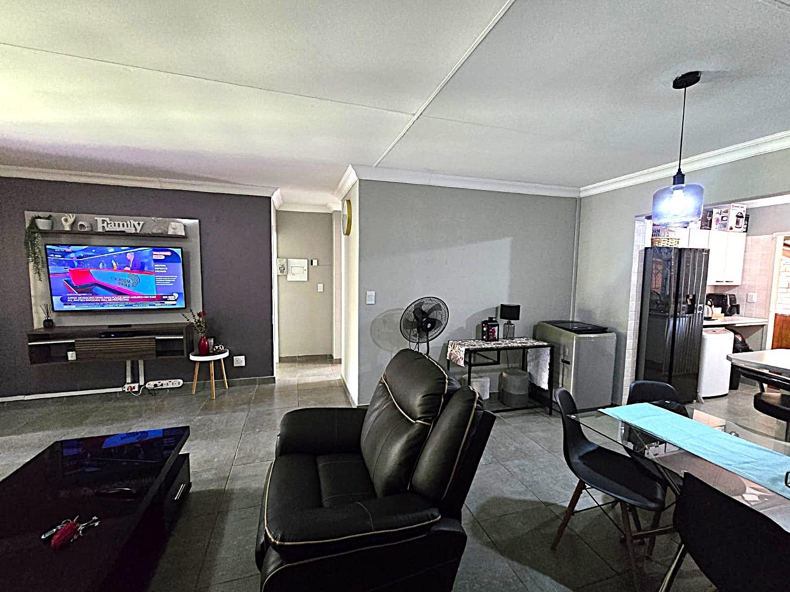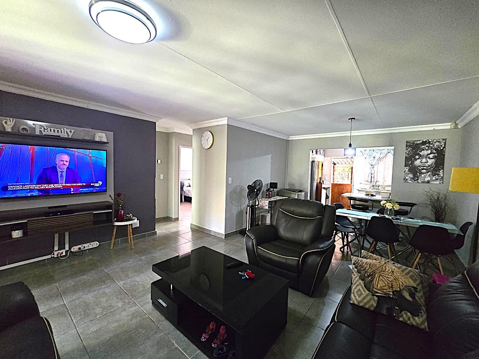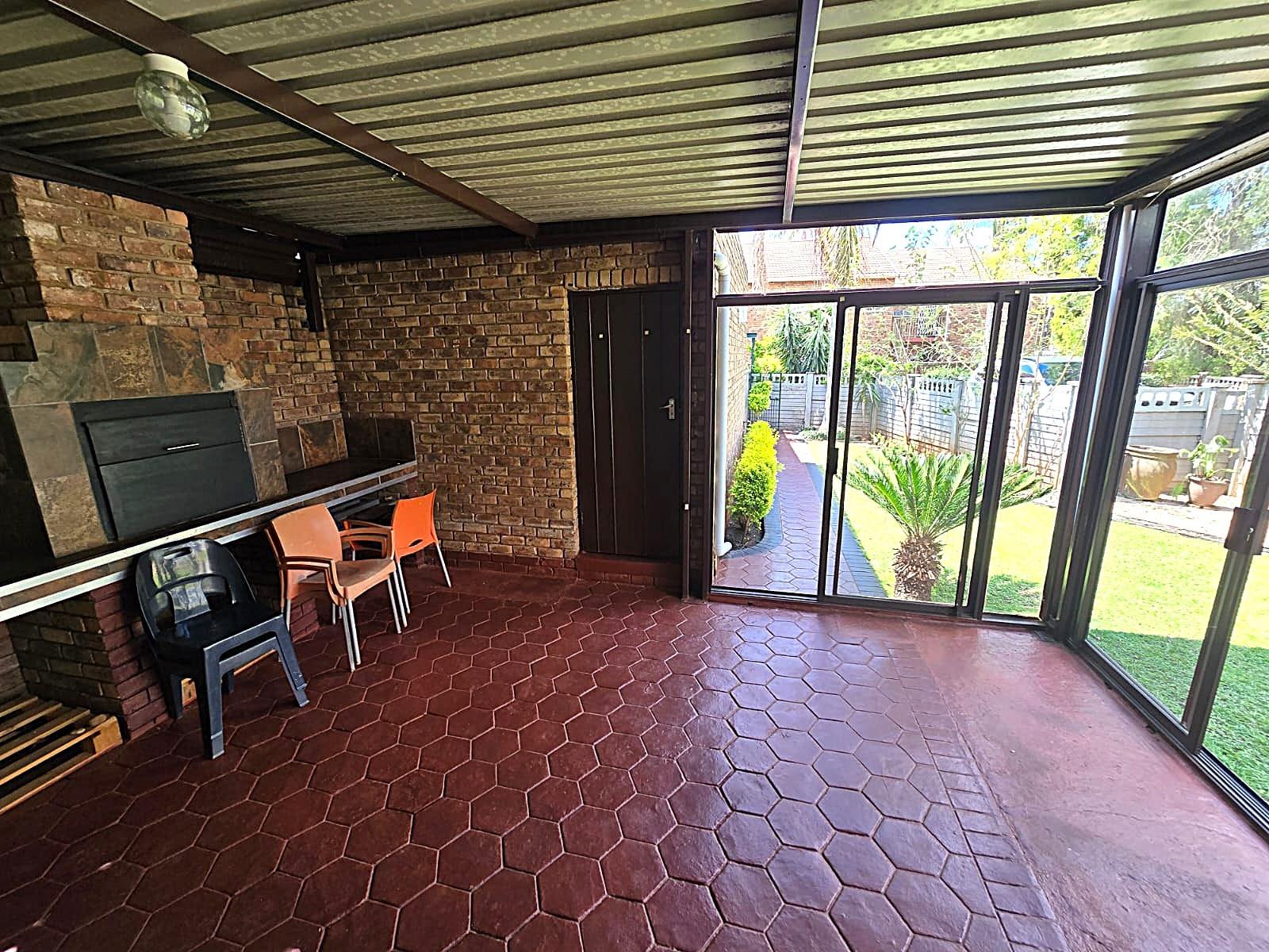 Welcome to this lovely and well-maintained townhouse, ideally situated in a quiet and peaceful complex in Doornpoort. From the moment you arrive, you are greeted by a single garage and a carport, offering convenient and secure parking. This flows seamlessly into a spacious covered patio area — perfect for relaxing or entertaining — which leads you directly into the home.