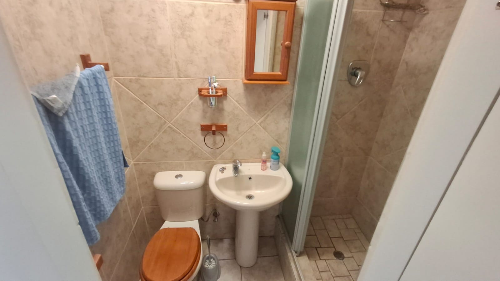 The main bedroom featuring an en-suite bathroom with a shower, toilet, and basin. A kitchenette and spacious dressing room with ample cupboards add to the luxury.
