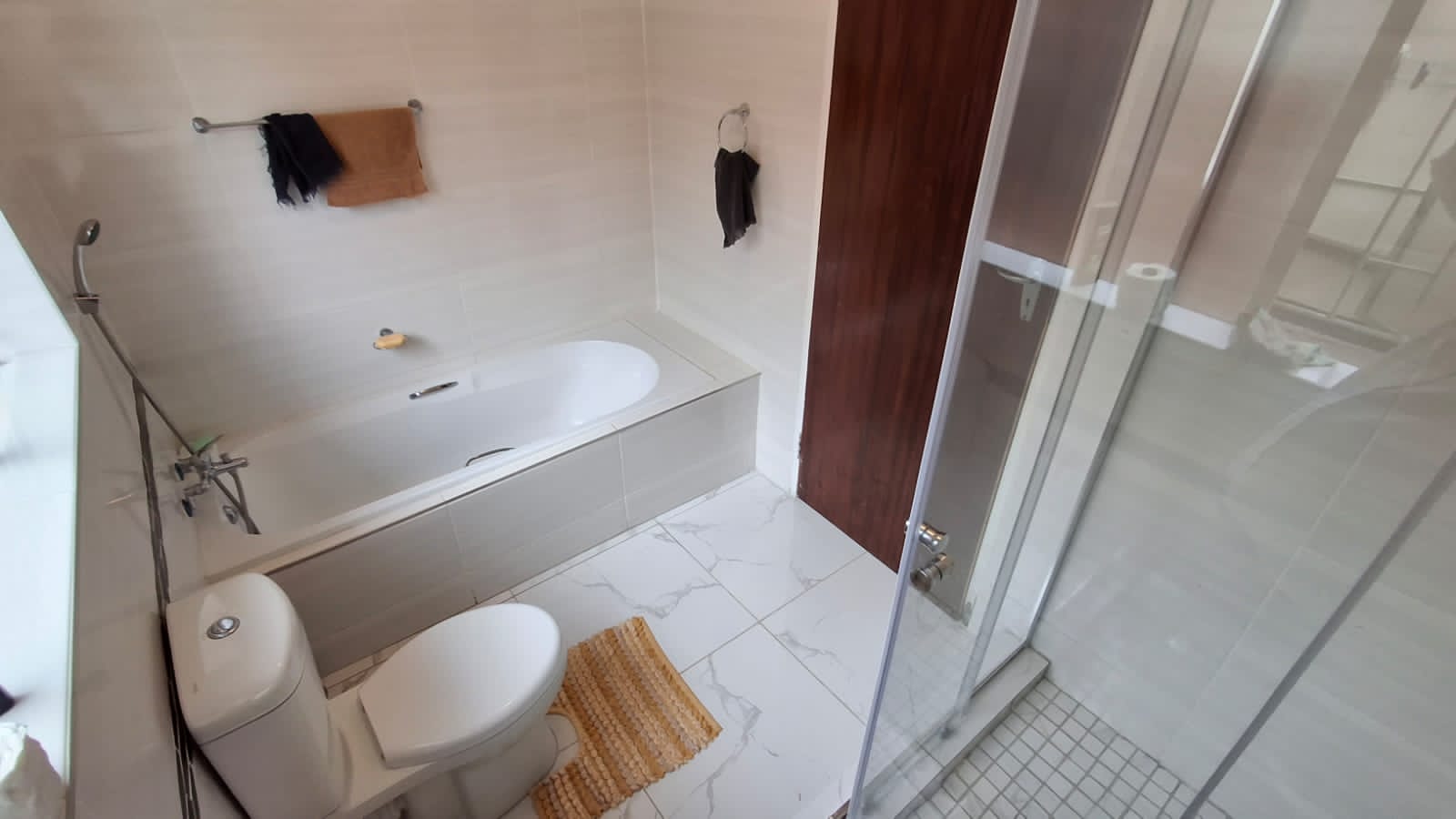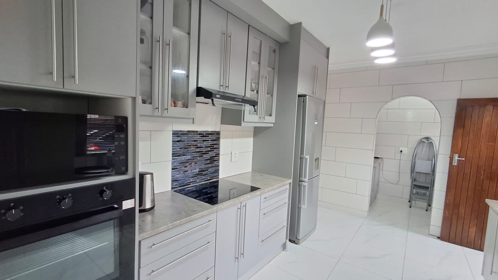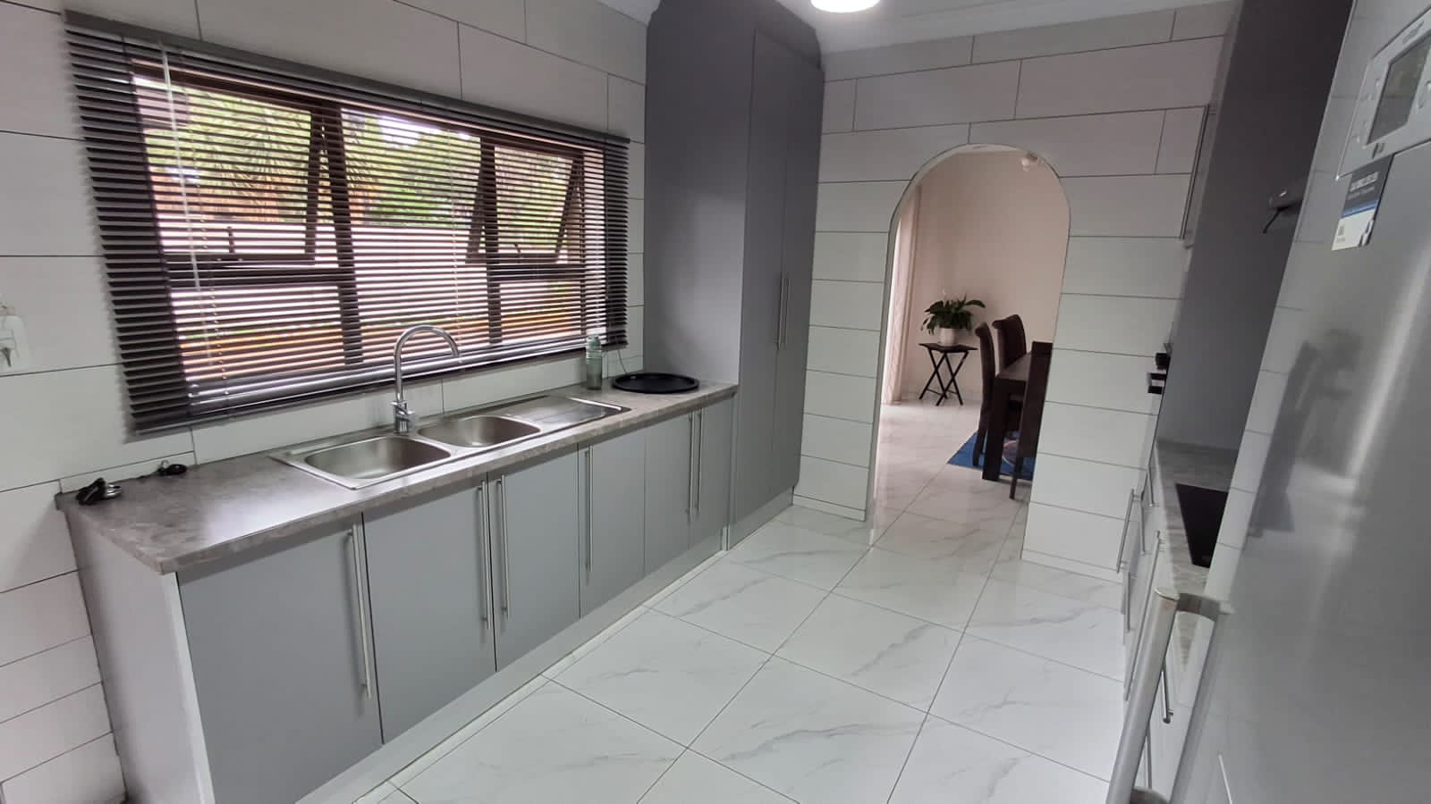 Modern kitchen with granite tops, ample built in cupboards and scullery