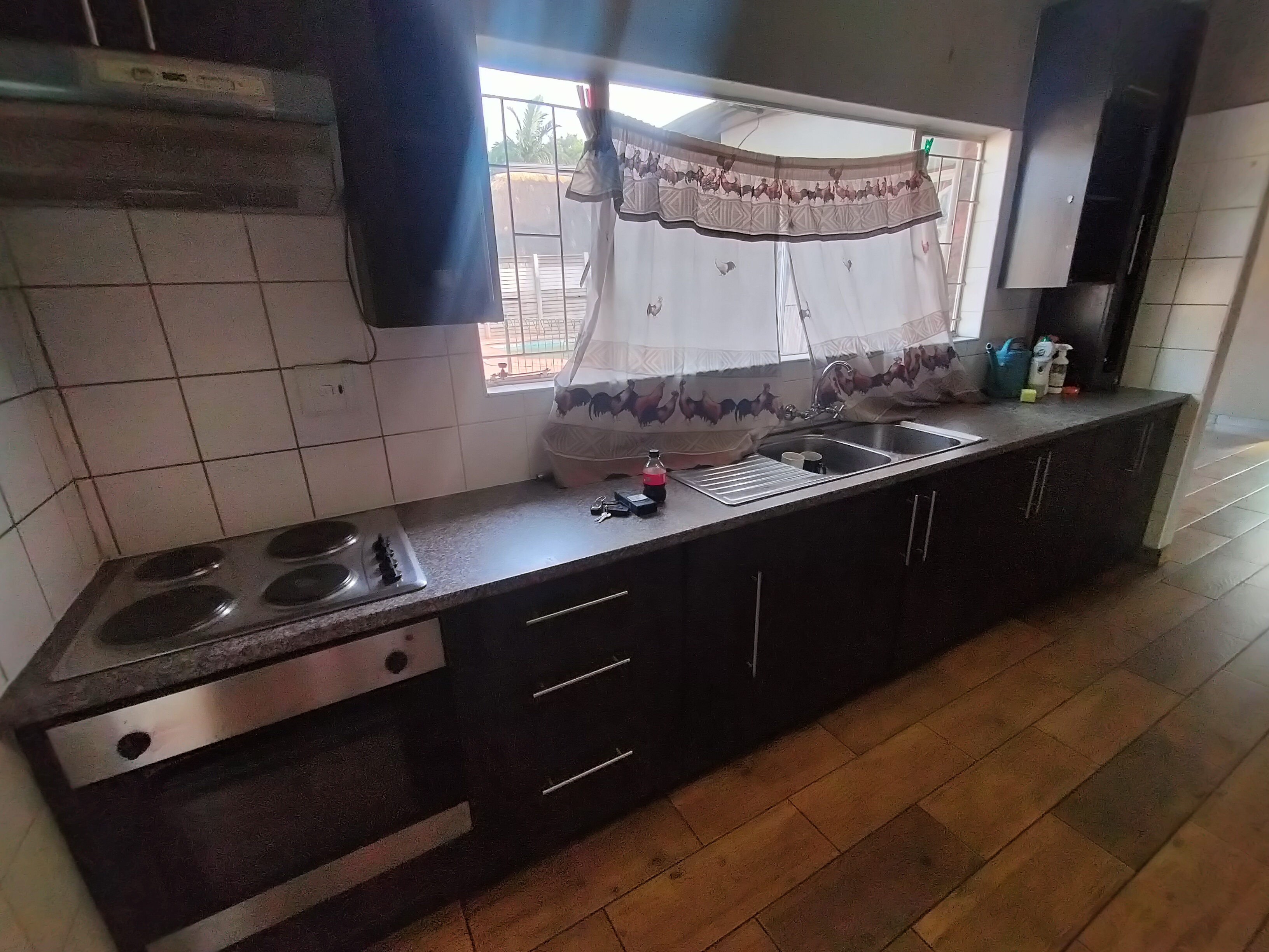 This spacious 4-bedroom, 2-bathroom home offers generous open-plan living areas, a well-sized kitchen with a laundry, and large bedrooms and bathrooms. The property includes a single garage, two entrances, and a flatlet, making it ideal for extended family living or generating extra rental income. Conveniently located near schools, shopping centres, and on bus and taxi routes, it offers both comfort and accessibility.