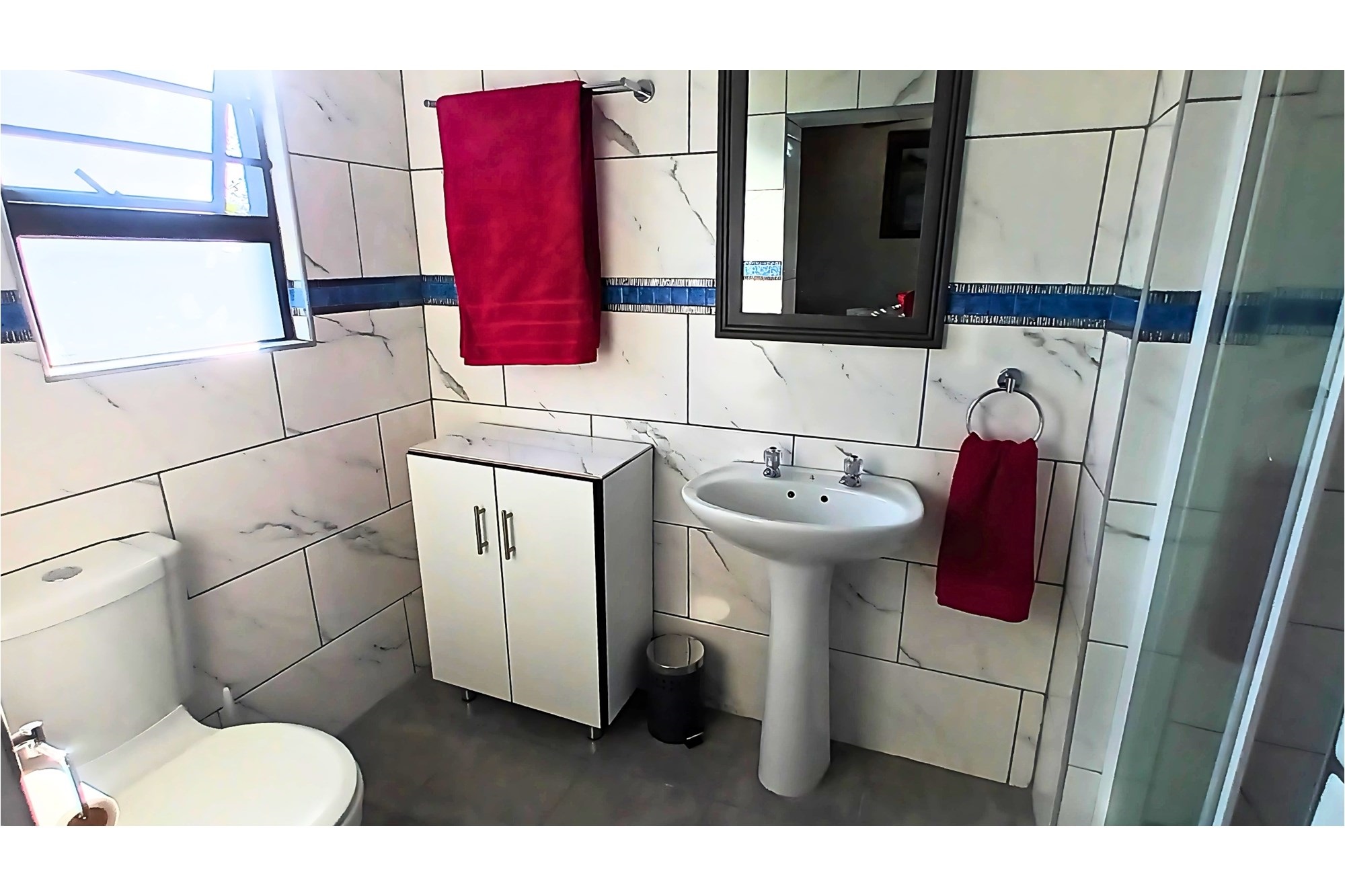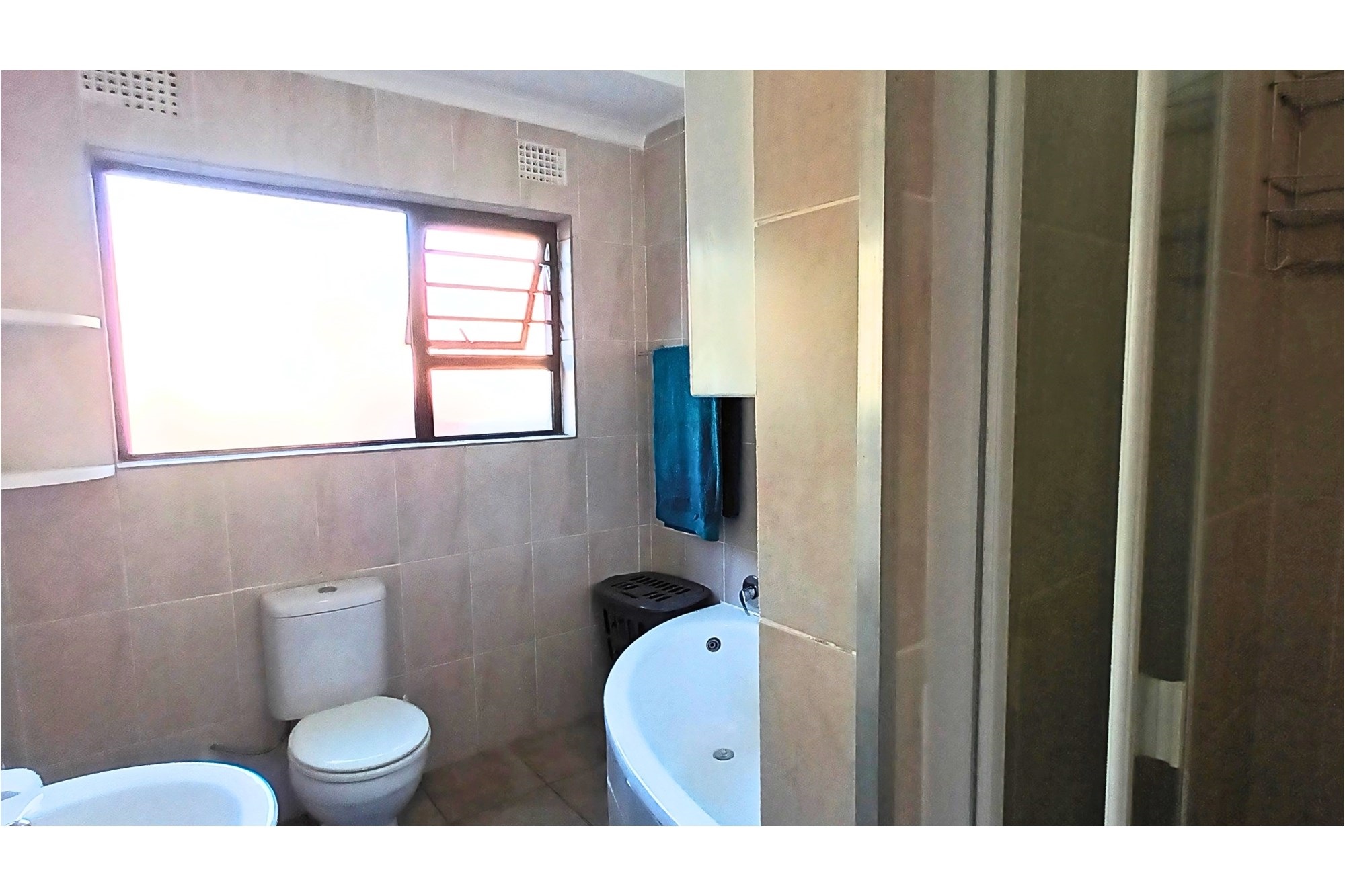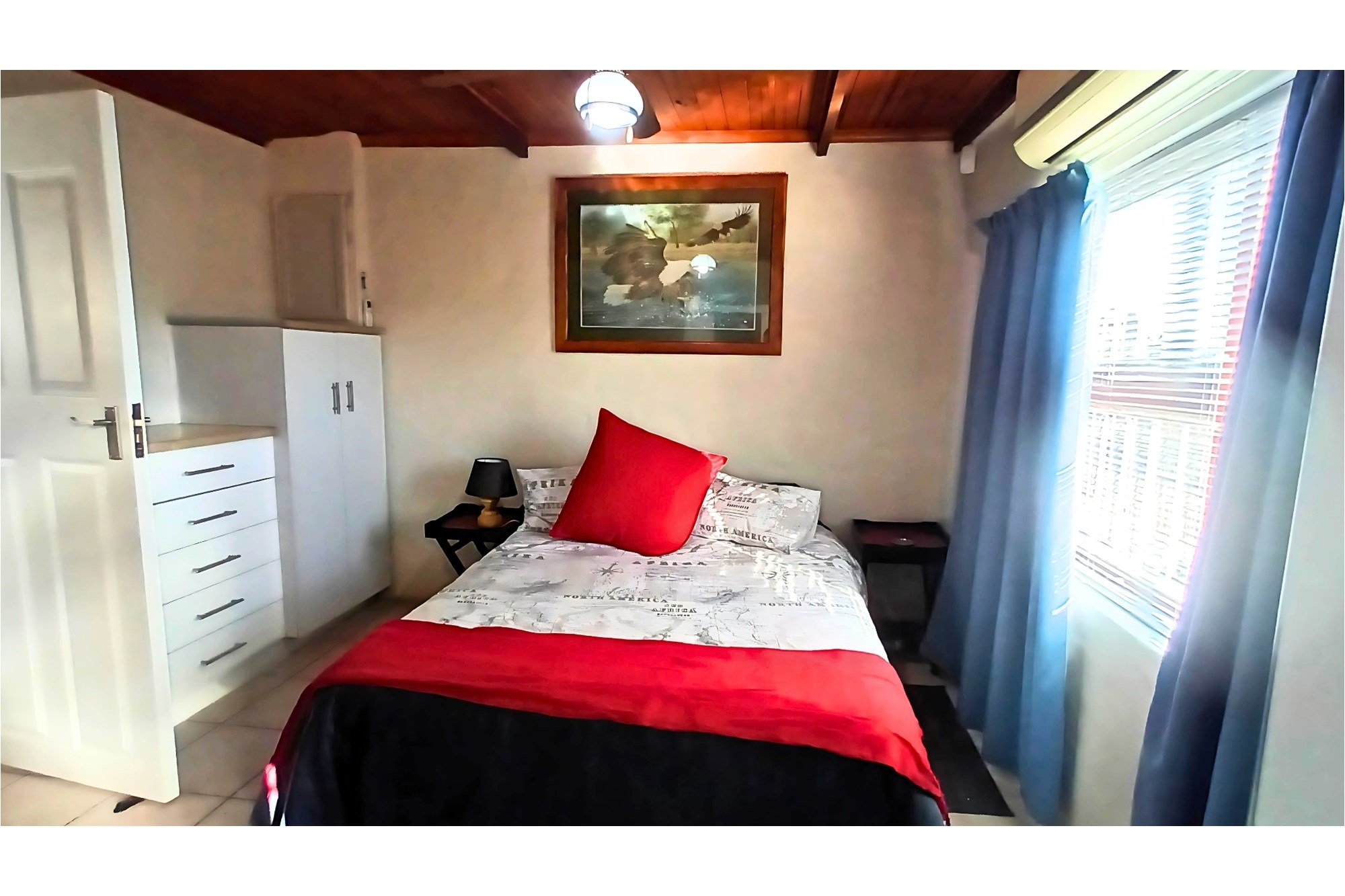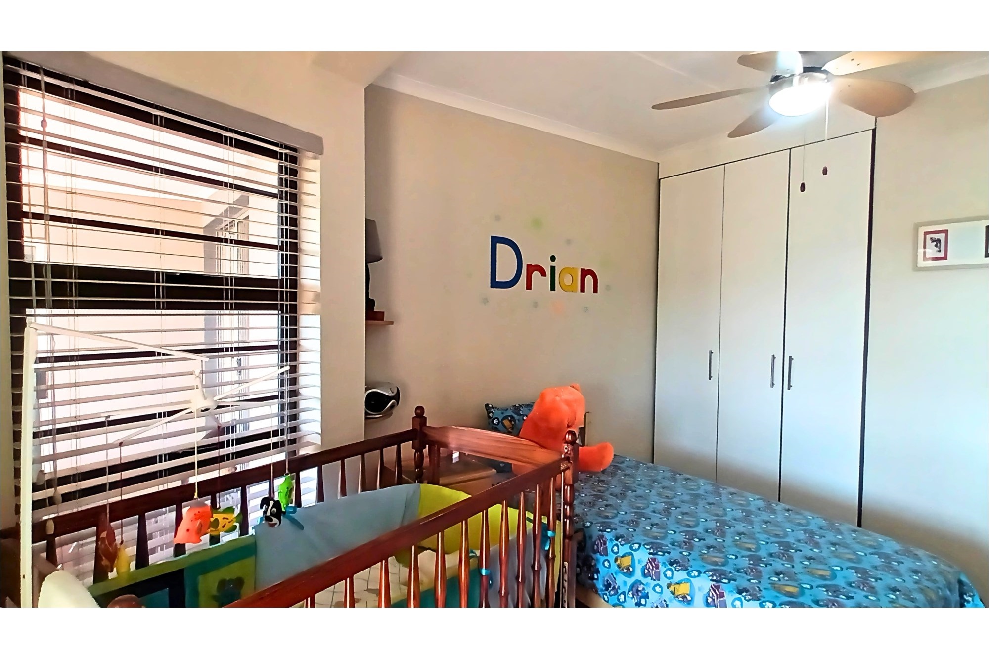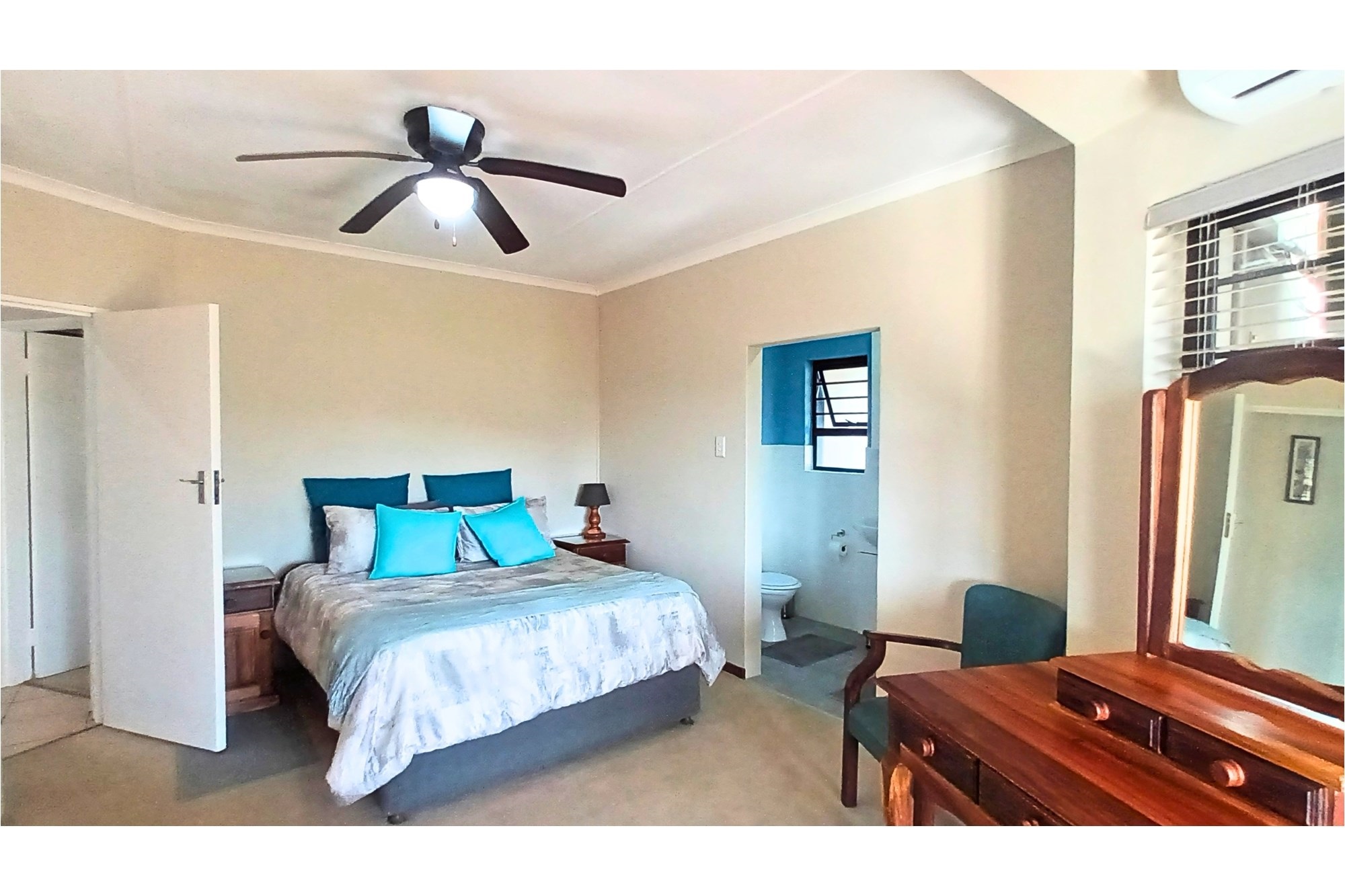 The spacious Granny Flat has its own private entrance and is tiled throughout. It offers a comfortable open-plan lounge with a ceiling fan, a well-fitted kitchen with built-in cupboards, blinds, and a washing machine connection, and a separate study, also fitted with built-in cupboards and blinds. The flat boasts a spacious bedroom, complete with built-in cupboards, ceiling fan, and air conditioning, and a modern bathroom with a shower, toilet, and basin—making it an ideal space for extended family, guests, or potential rental income.