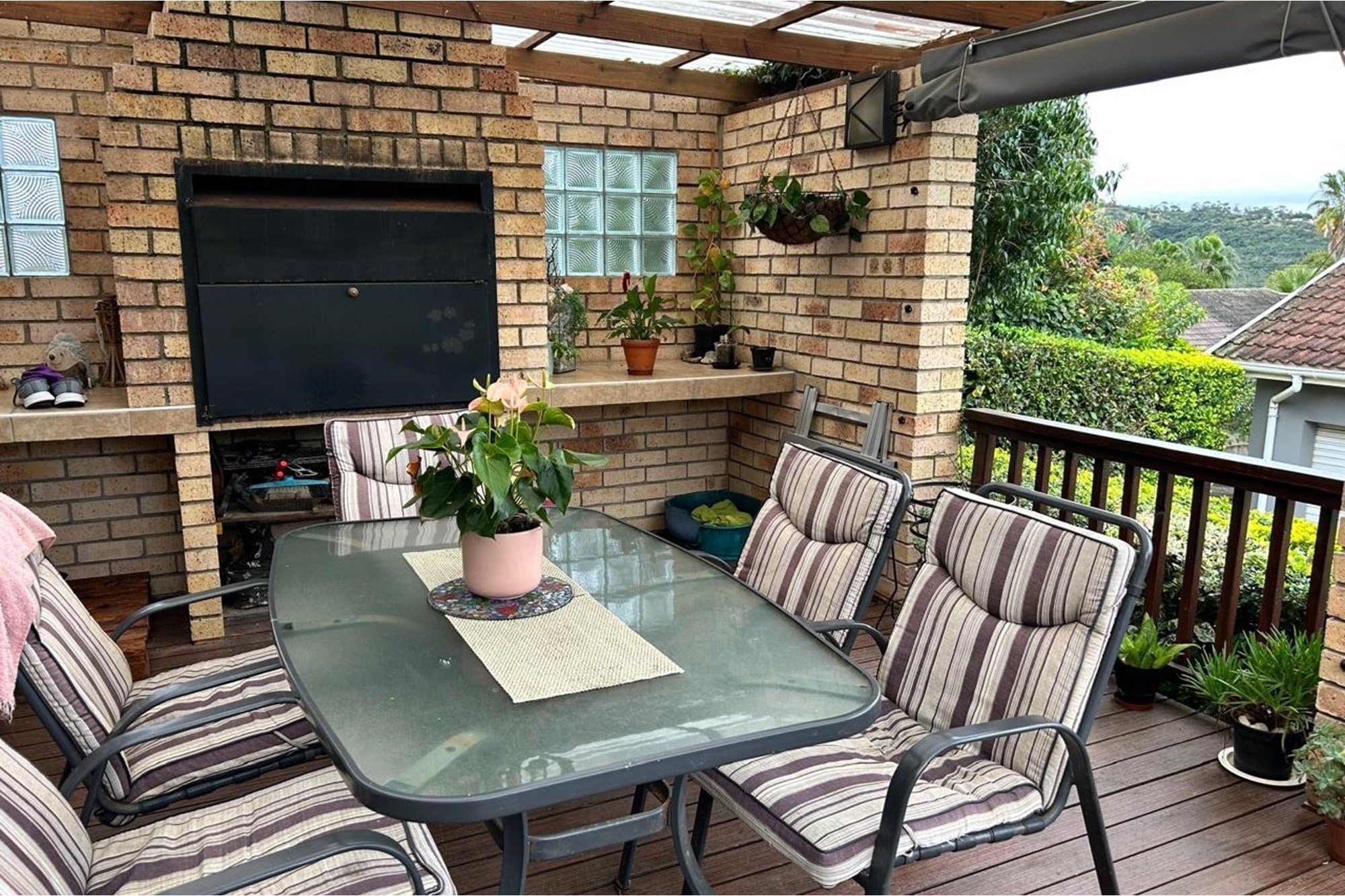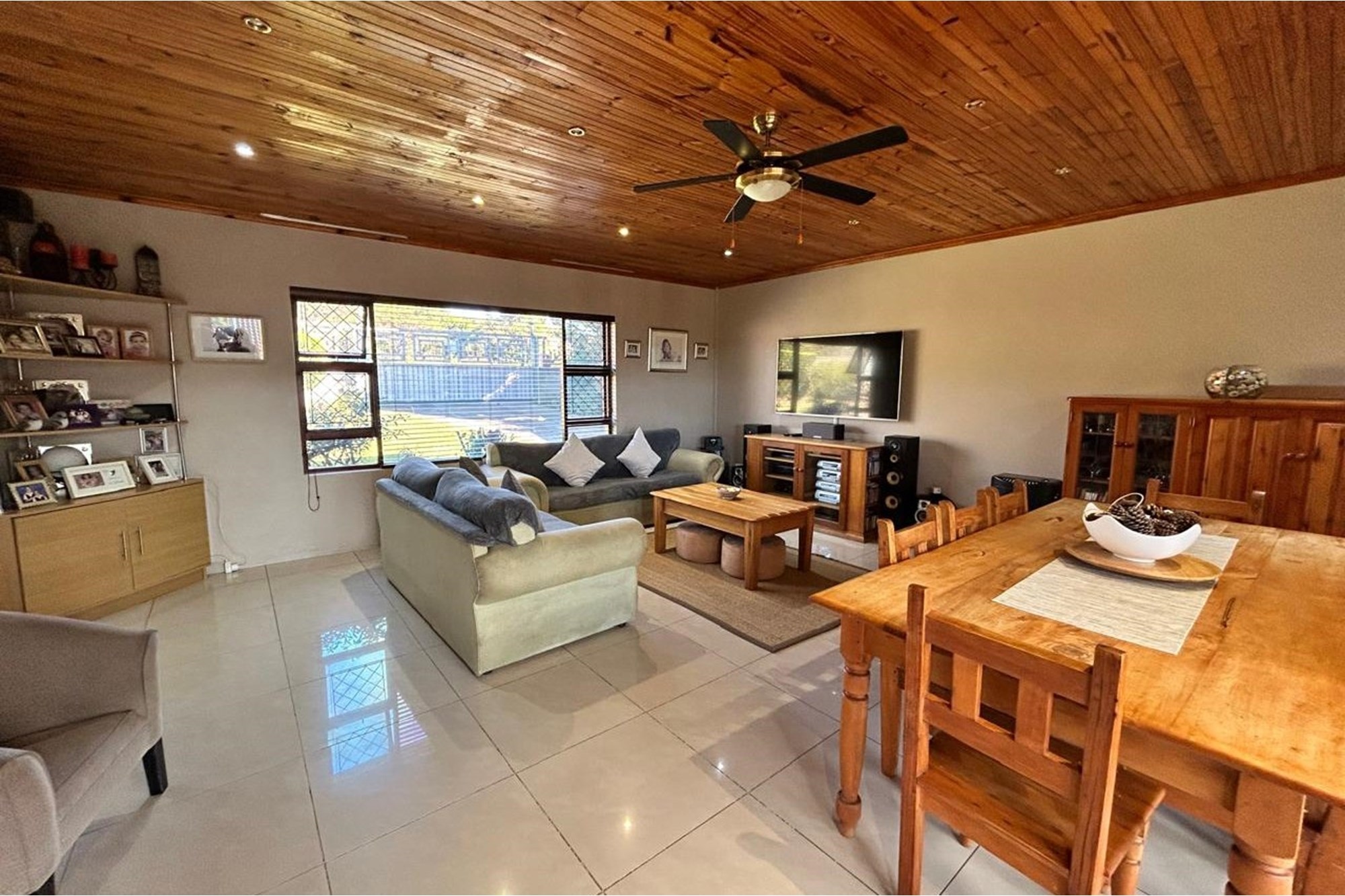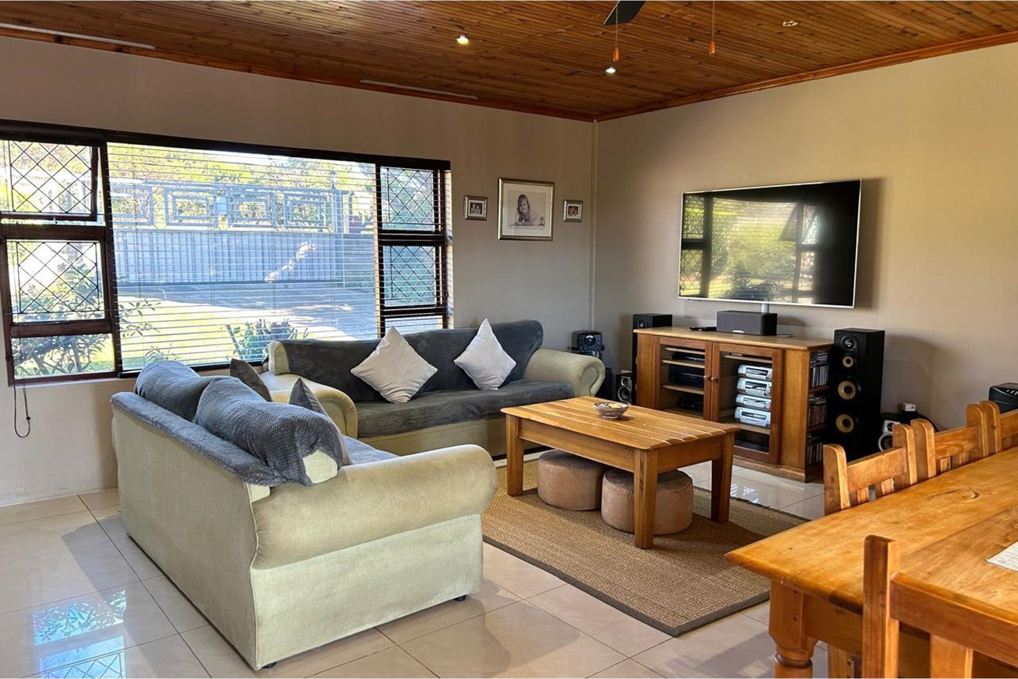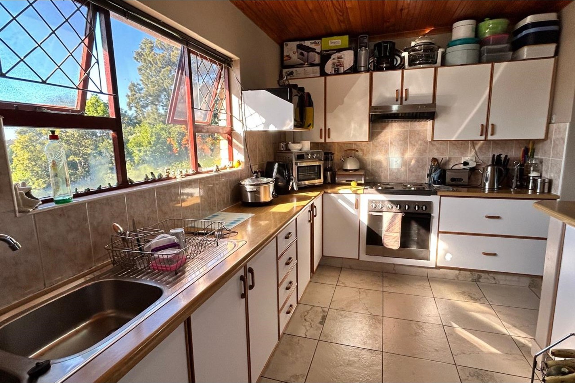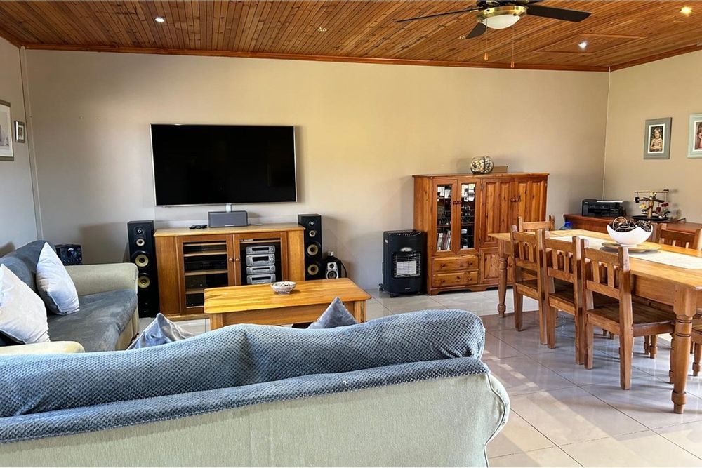 Step through the welcoming entrance hall into a home designed for both relaxation and entertaining. The airy lounge flows effortlessly onto alarge wooden deck, offering spectacular views over thesparkling swimming pooland lush garden – ideal for sundowners, family braais, or lazy weekend lounging.