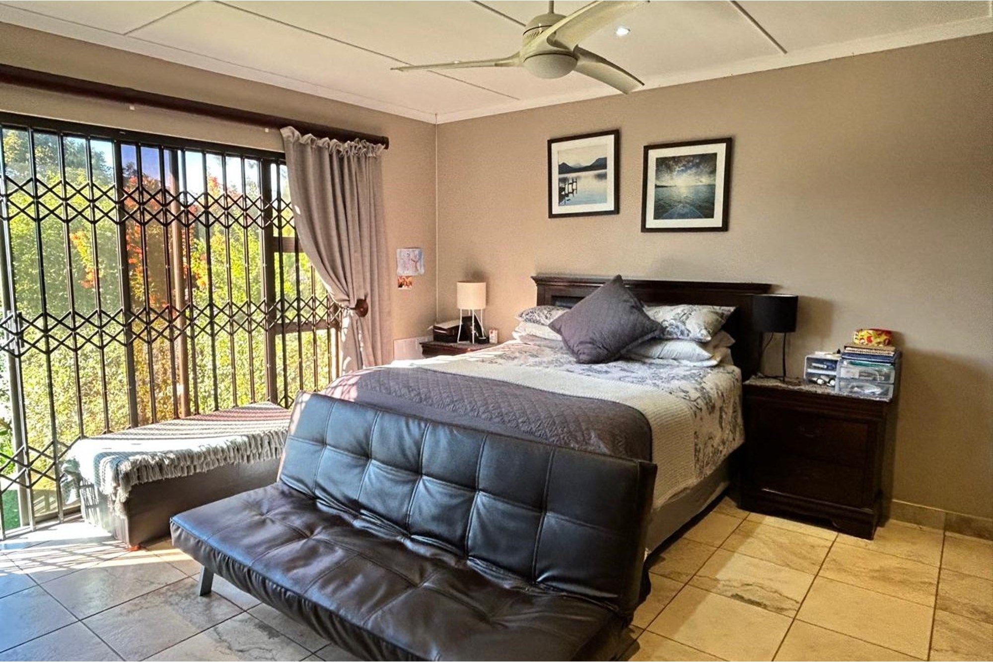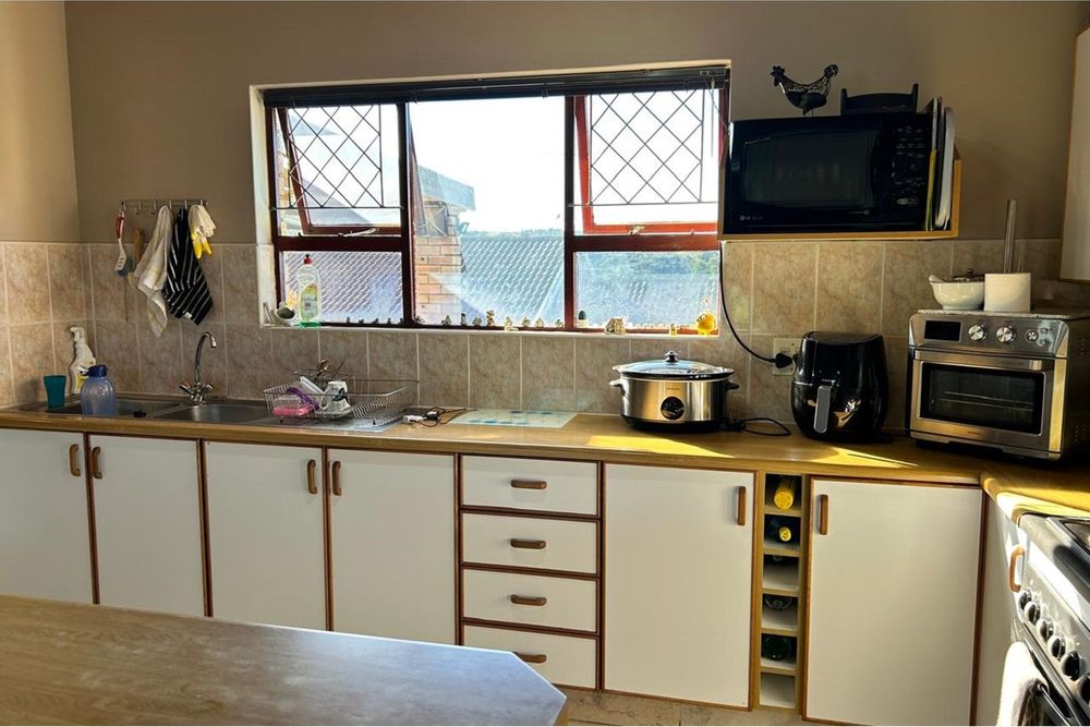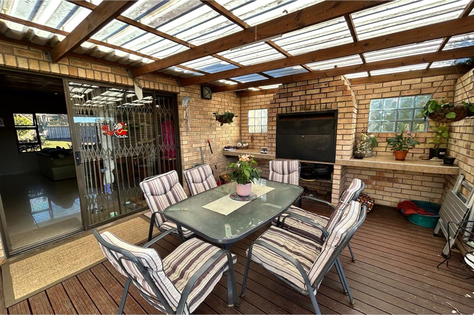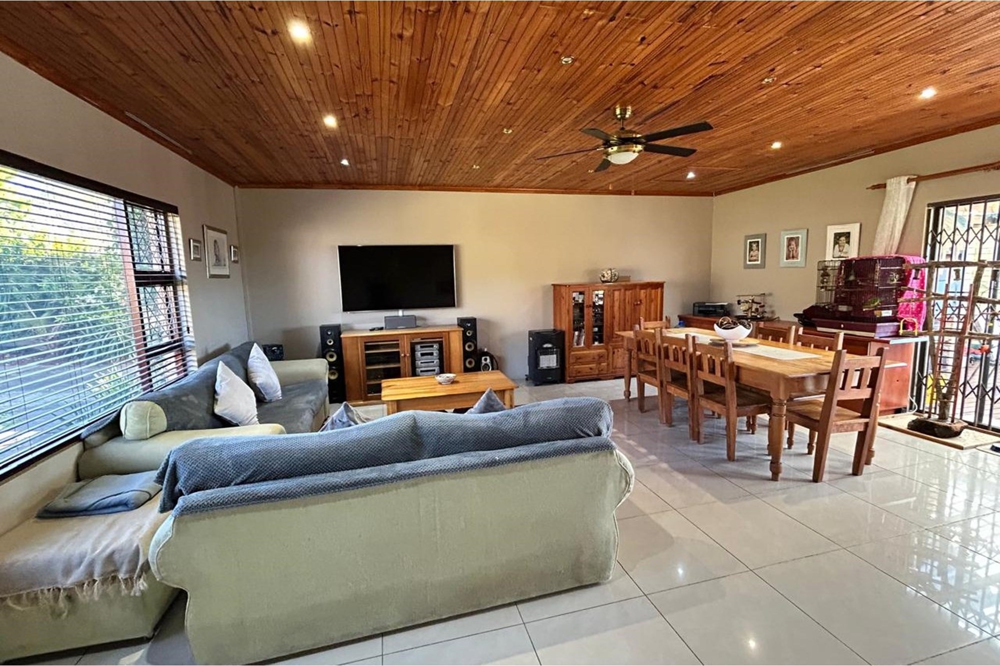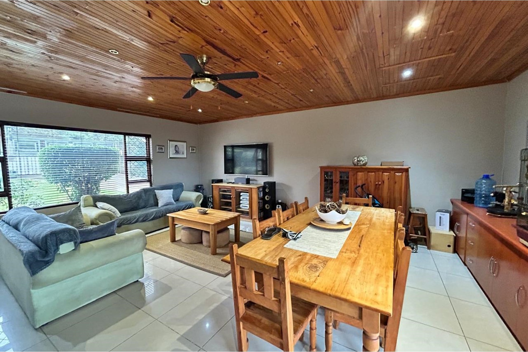 Step through the welcoming entrance hall into a home designed for both relaxation and entertaining. The airy lounge flows effortlessly onto alarge wooden deck, offering spectacular views over thesparkling swimming pooland lush garden – ideal for sundowners, family braais, or lazy weekend lounging.