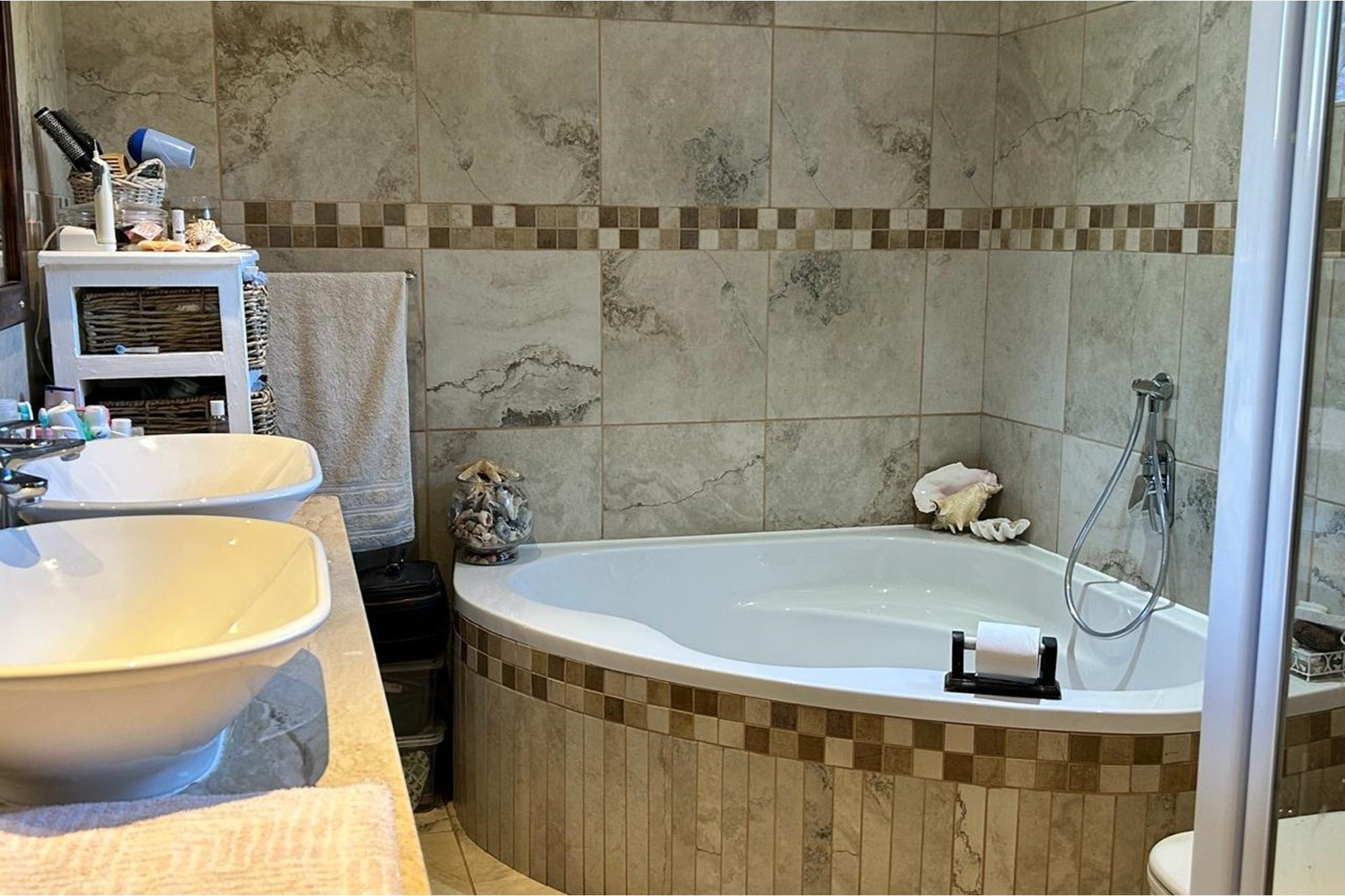 This home features four well-sized bedrooms, all with built-in cupboards and large windows that allow for plenty of natural light. The main bedroom includes a stylish en-suite bathroom, providing a private retreat within the home. The remaining three bedrooms are serviced by a modern second bathroom, perfect for children or guests.