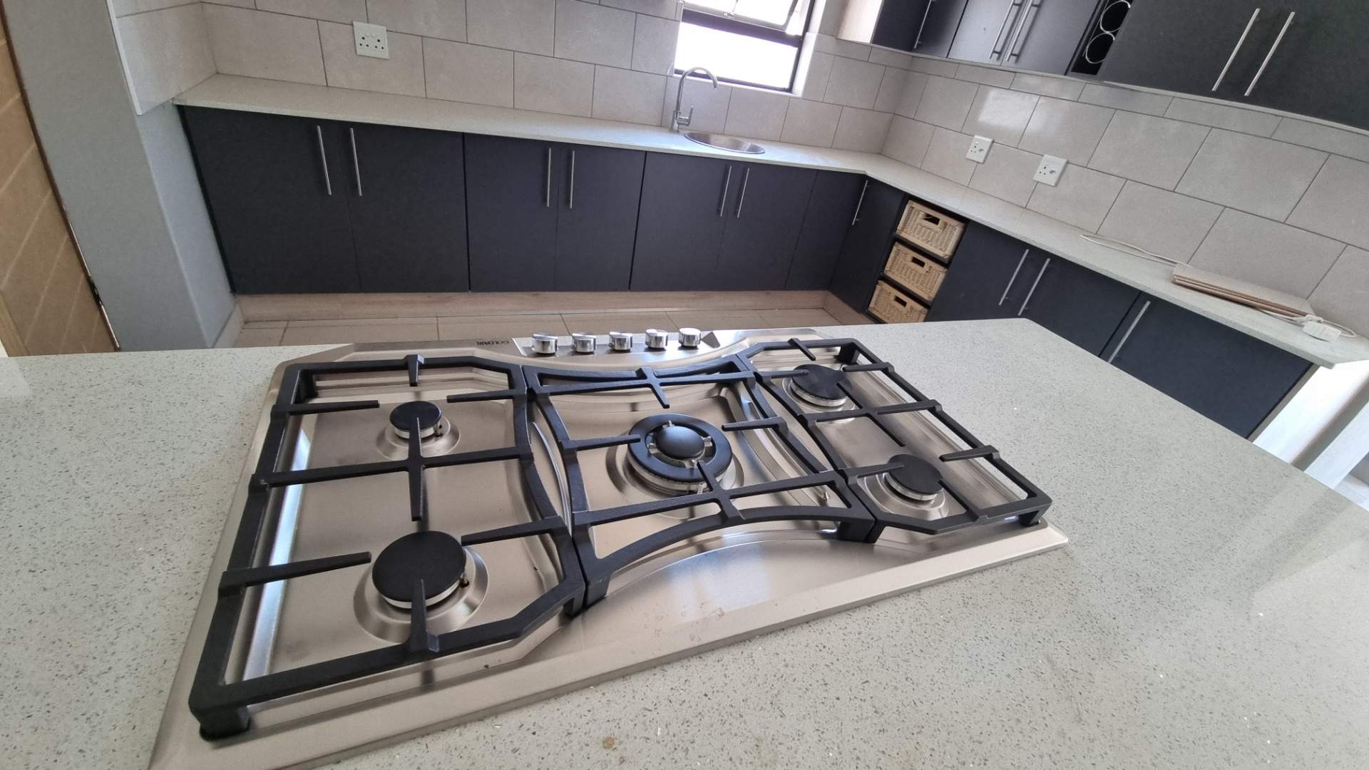 Step inside and discover a spacious kitchen that boasts an abundance of cupboards, an island, and modern appliances. With a gas stove and a separate eye-level oven, this kitchen is perfect for preparing delicious meals. The generous amount of workspace ensures that meal preparation is a breeze. Additionally, there is a spacious scullery and laundry area to accommodate all your appliances.
