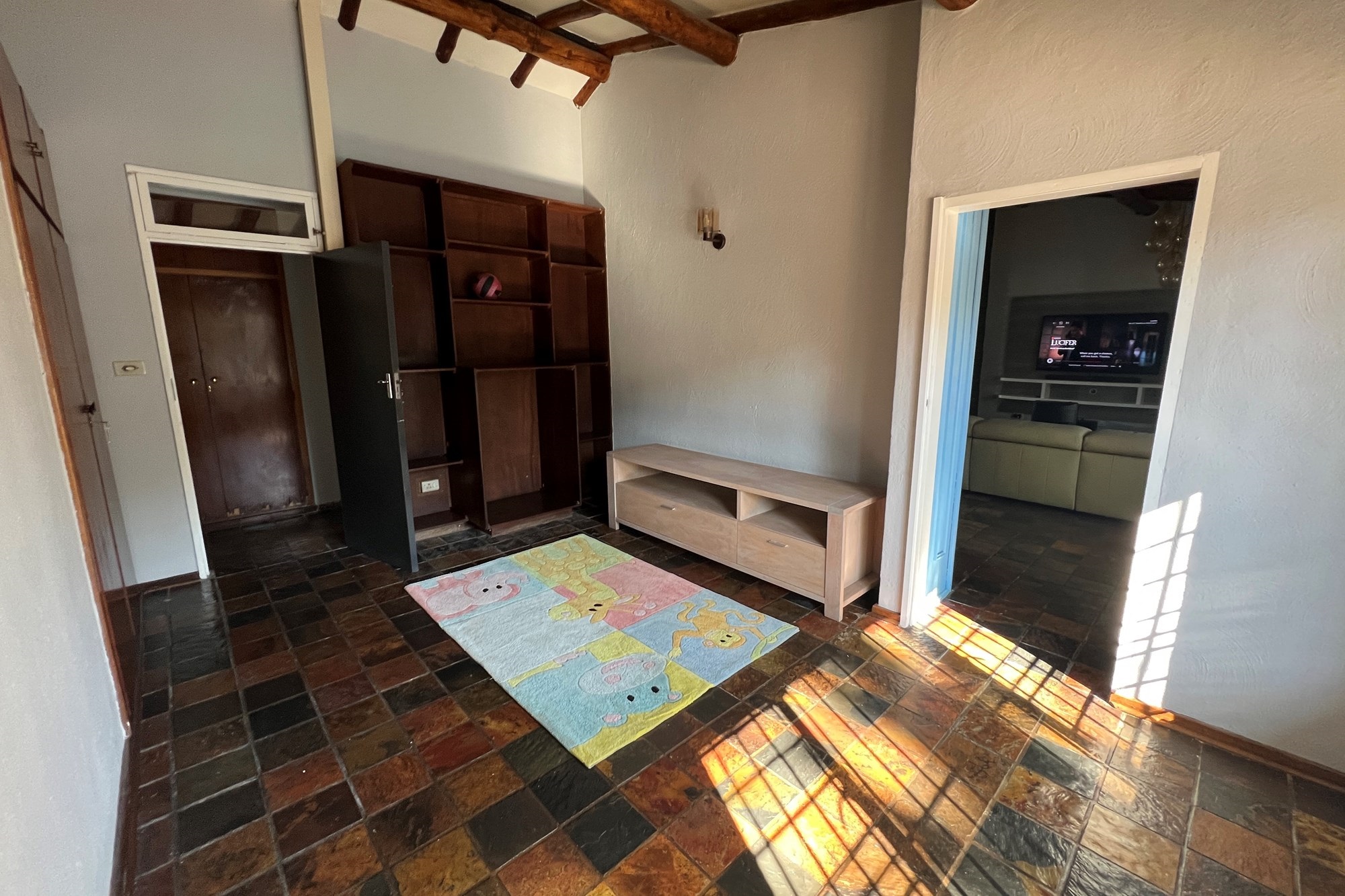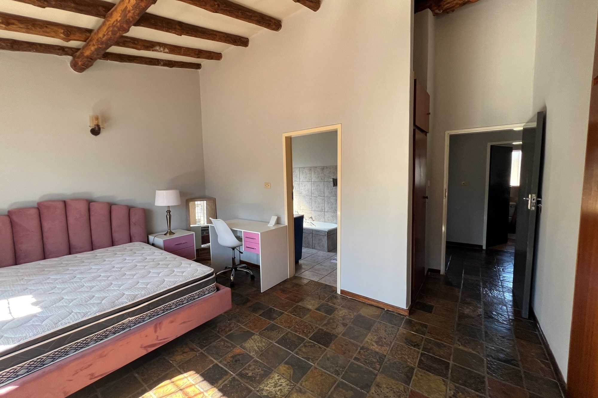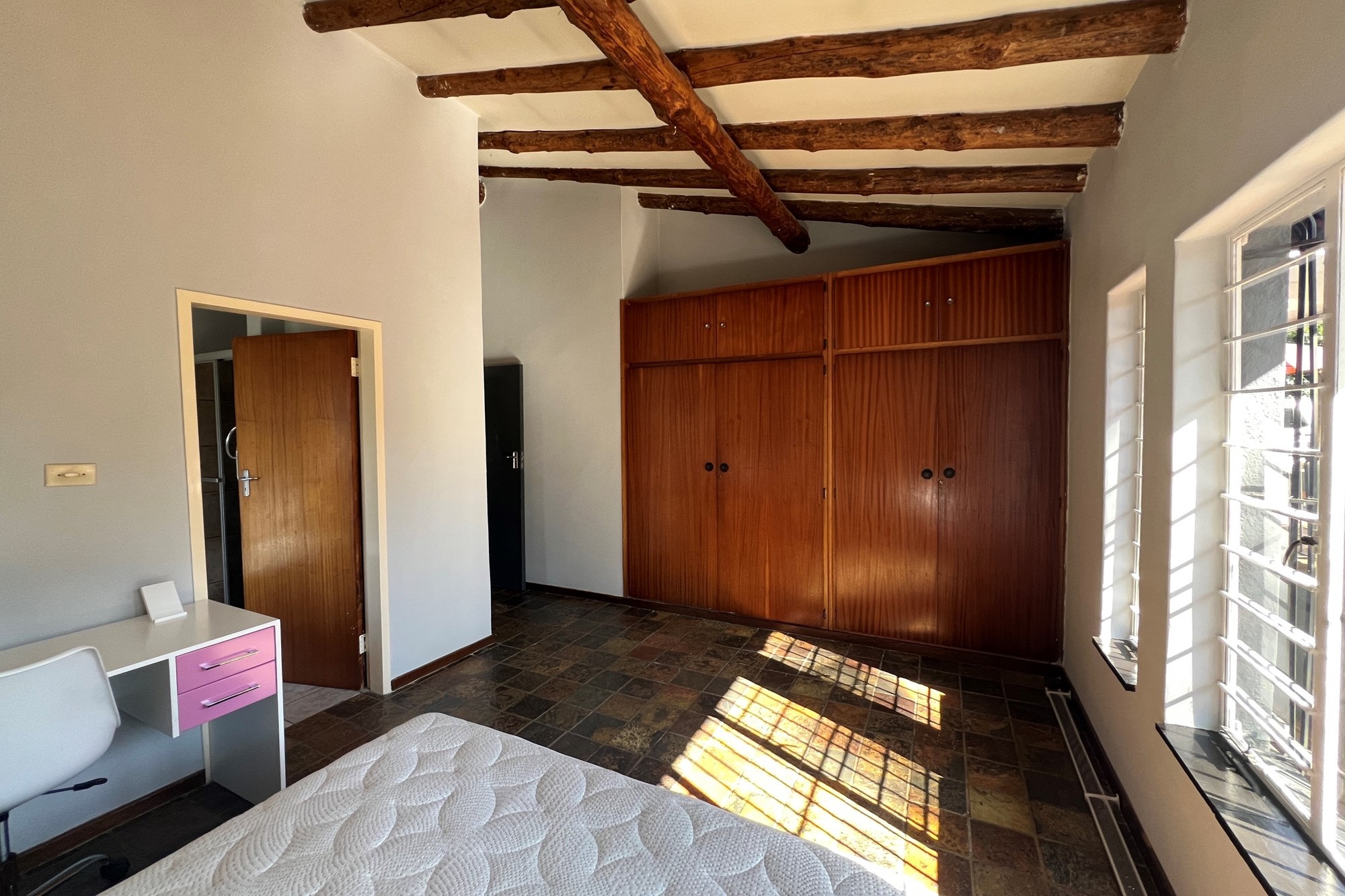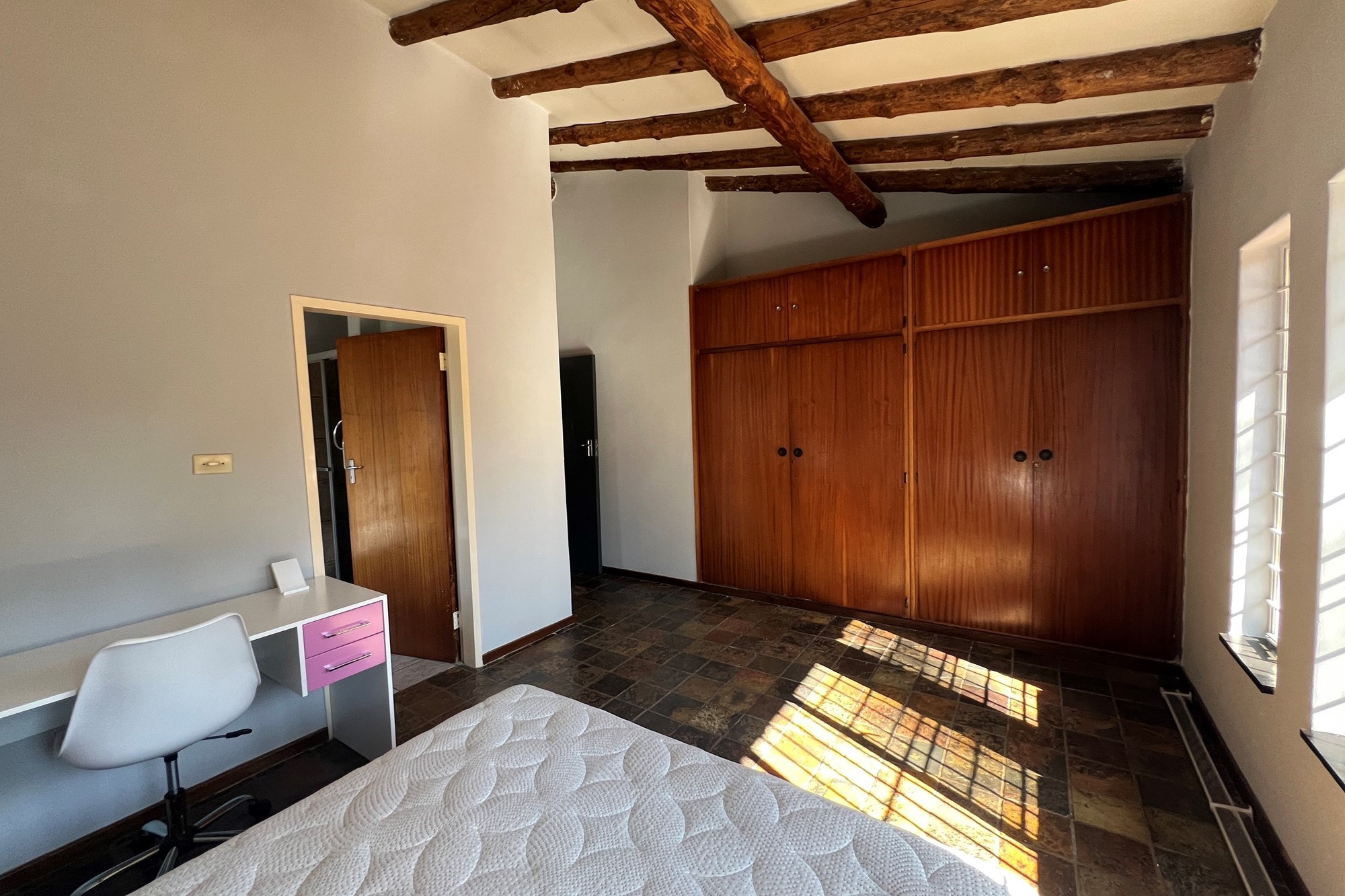 Step outside into a spacious yard that’s perfect for entertaining and relaxation. A huge swimming pool — currently being renovated — is ideal for summer days, while the lapa with a built-in braai stand sets the scene for weekend get-togethers. The garden includes additional storage units, an extra outside room (without built-in cupboards), and a functional borehole to support water needs.