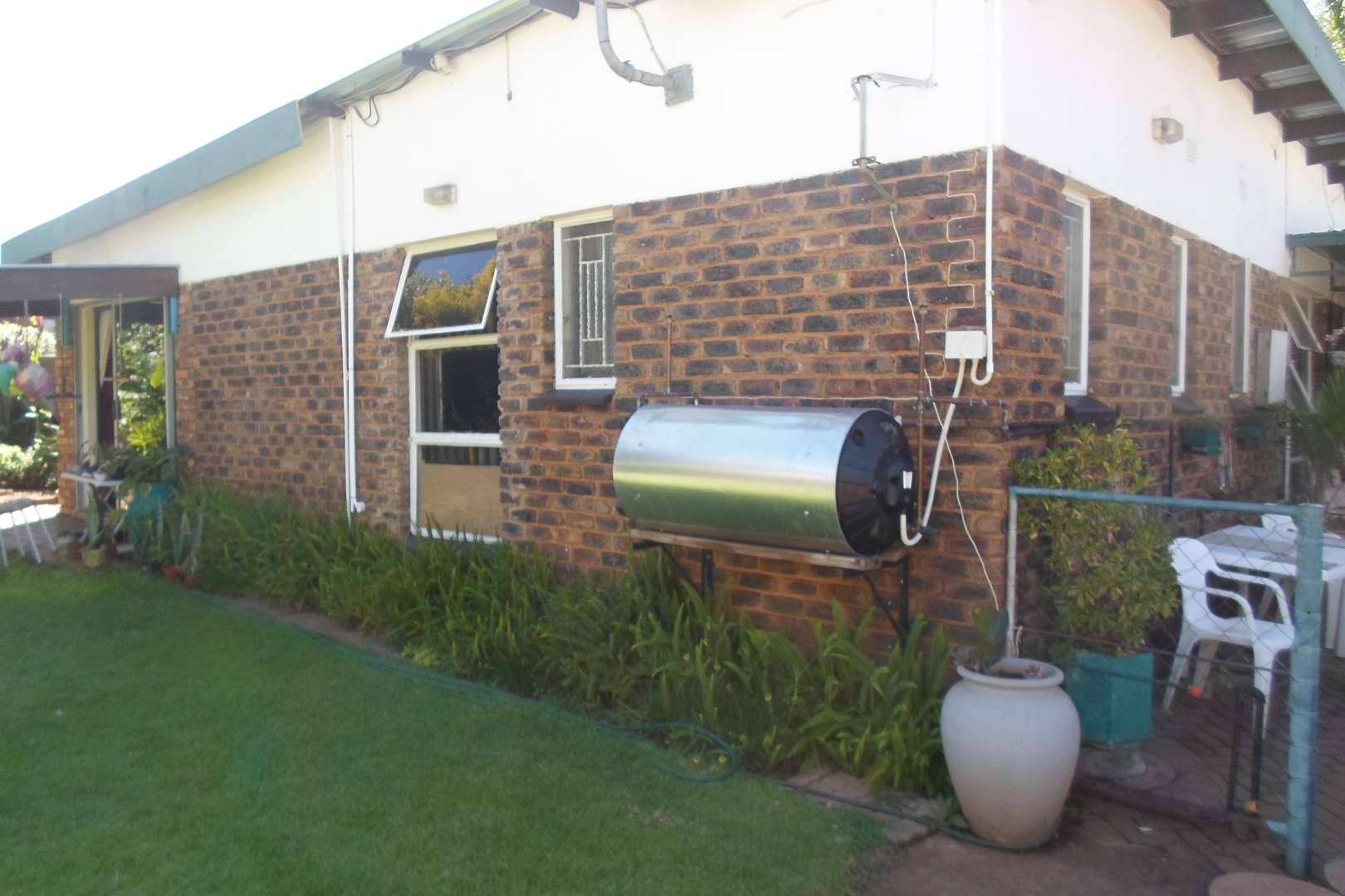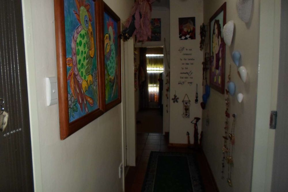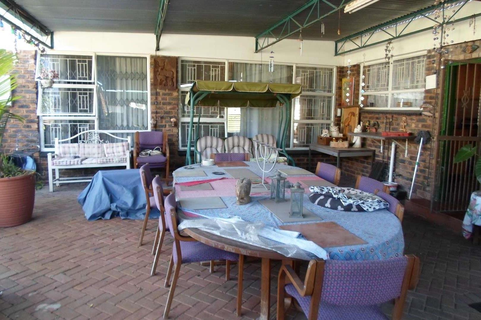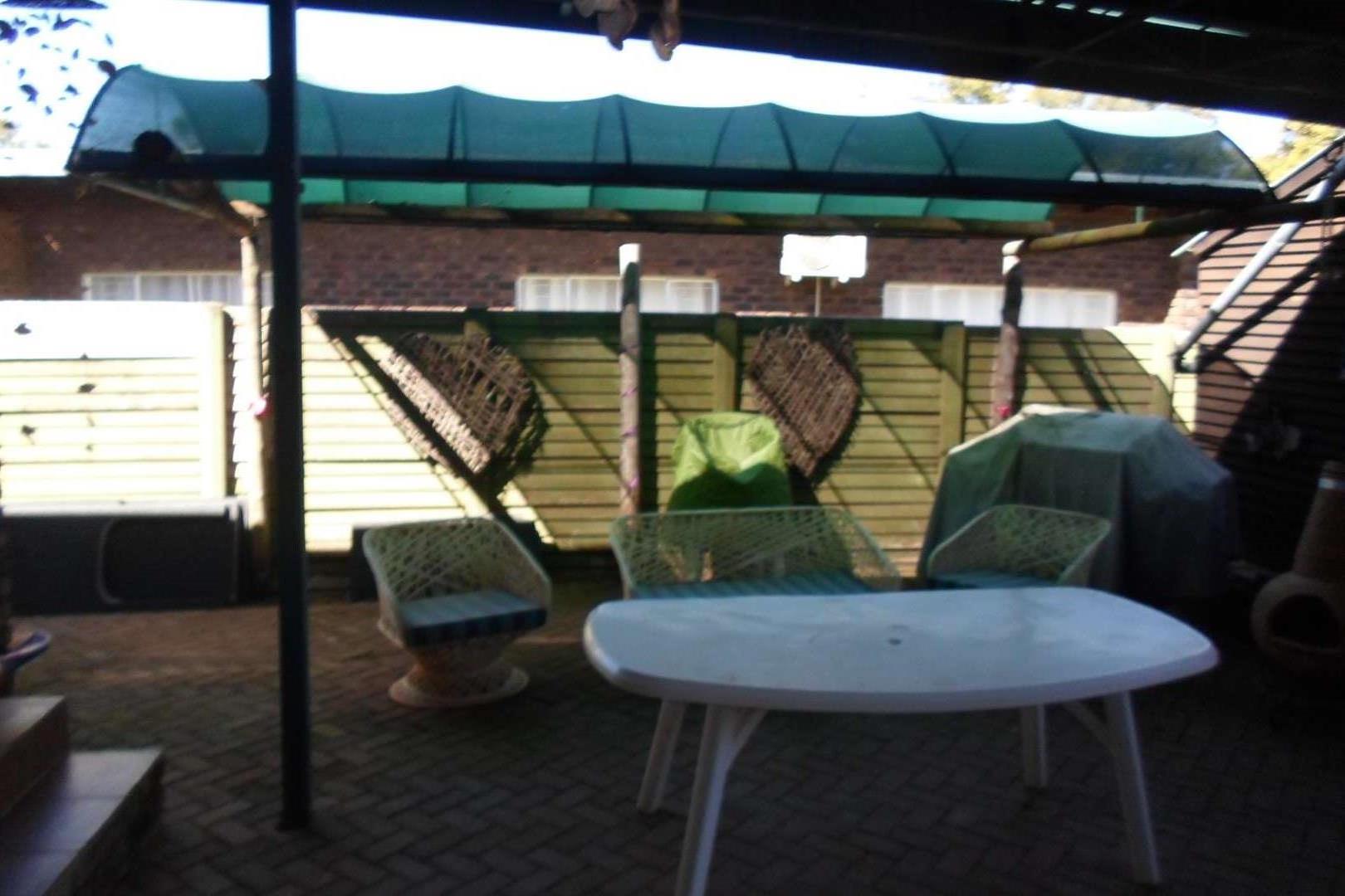 This beautiful family home is located in a quiet area of Doringkloof. You enter property through a beautiful excellently maintained garden. Entering the front door with safety door into a well decorated entrance area into a beautiful lounge/tv area. It has a comfortable dining room leading into a well-equipped kitchen with neat melamine tops and ample wooden cupboards. From the kitchen there is access to a storeroom and a laundry room. The geyser is fitted on the outside of the house. The double garage with a store room can also be accessed from the kitchen.