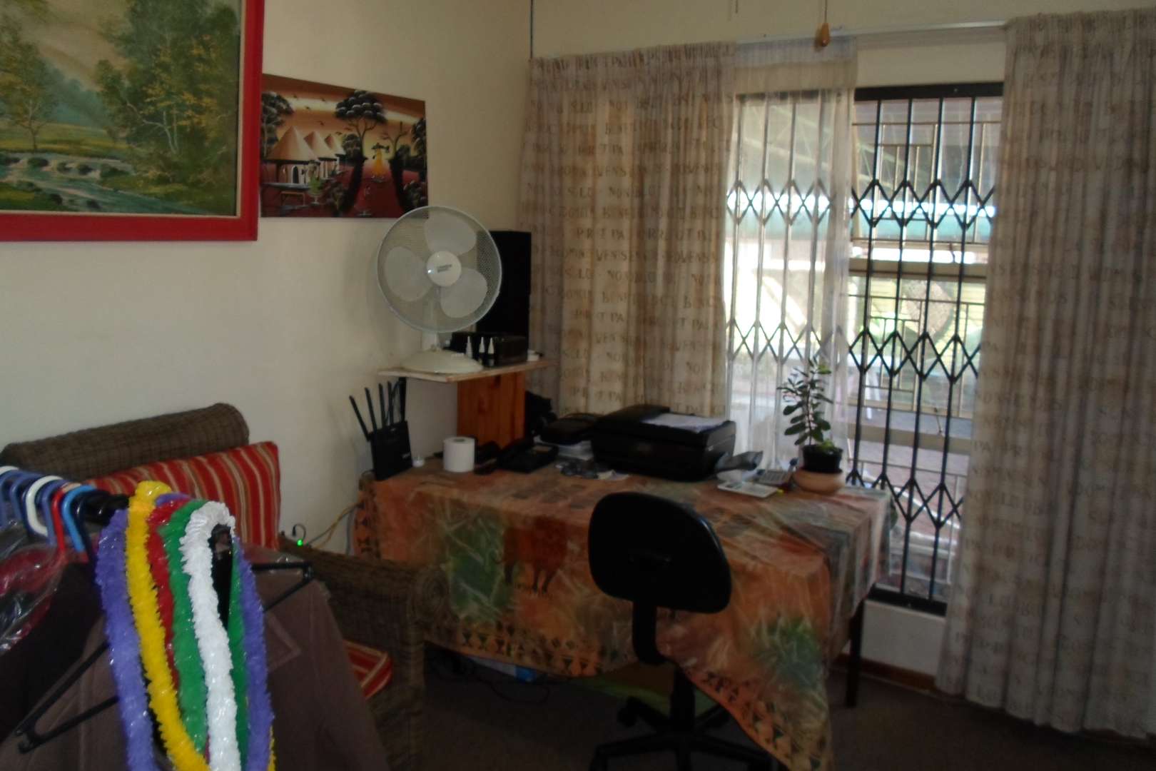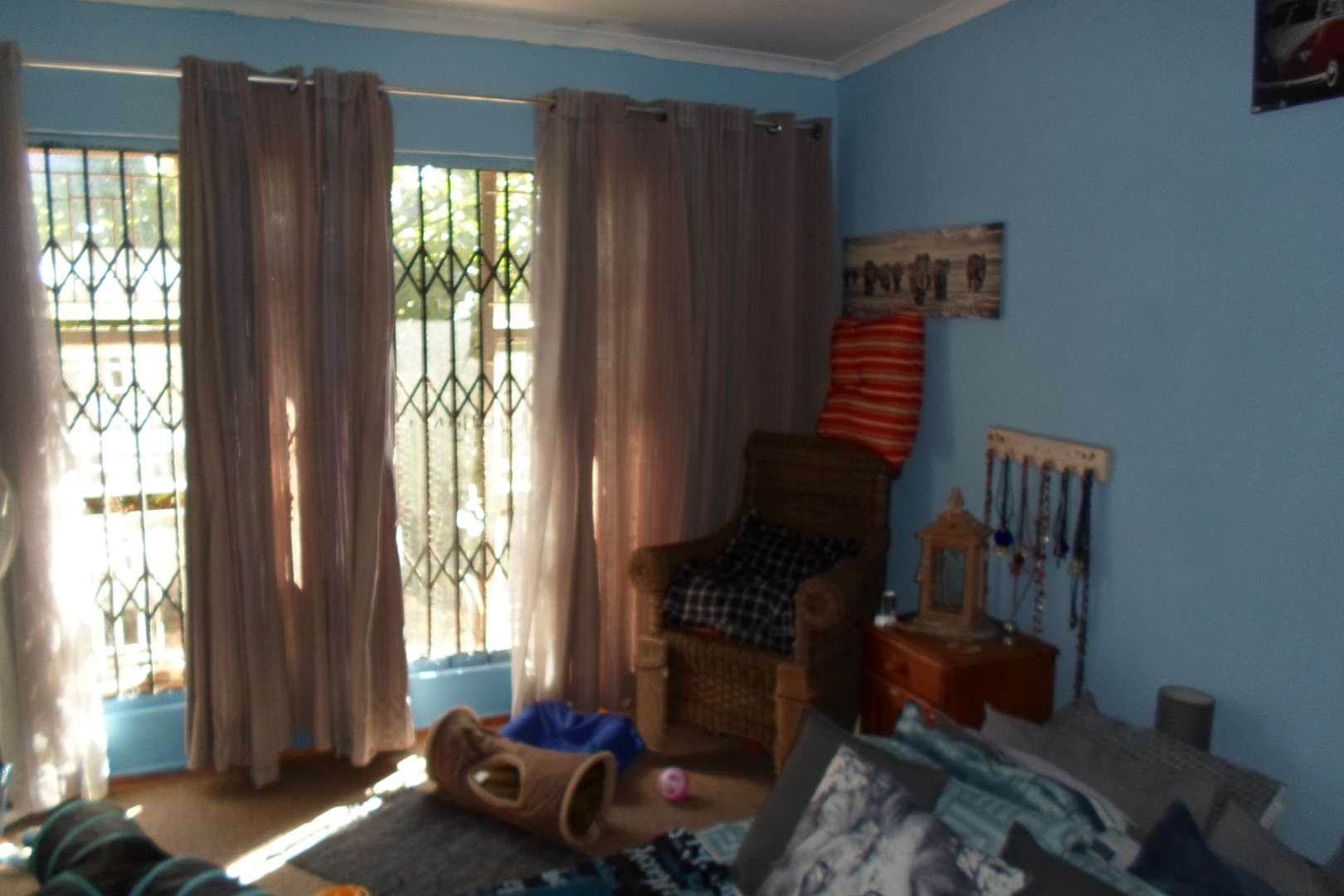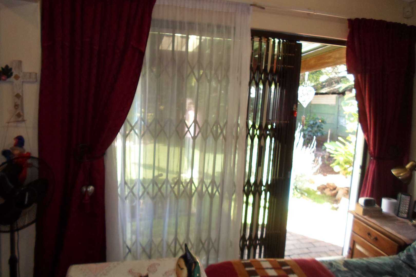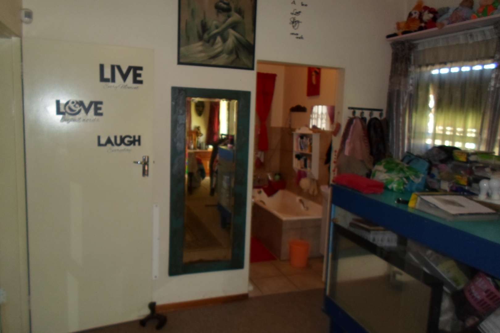 This beautiful family home is located in a quiet area of Doringkloof. You enter property through a beautiful excellently maintained garden. Entering the front door with safety door into a well decorated entrance area into a beautiful lounge/tv area. It has a comfortable dining room leading into a well-equipped kitchen with neat melamine tops and ample wooden cupboards. From the kitchen there is access to a storeroom and a laundry room. The geyser is fitted on the outside of the house. The double garage with a store room can also be accessed from the kitchen.