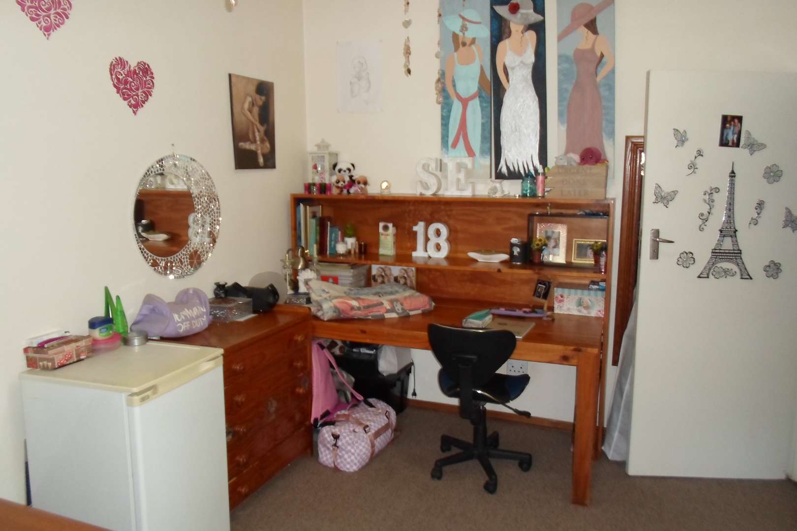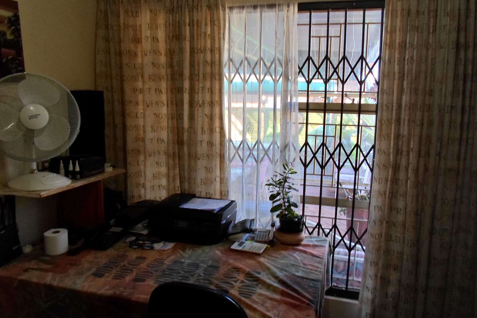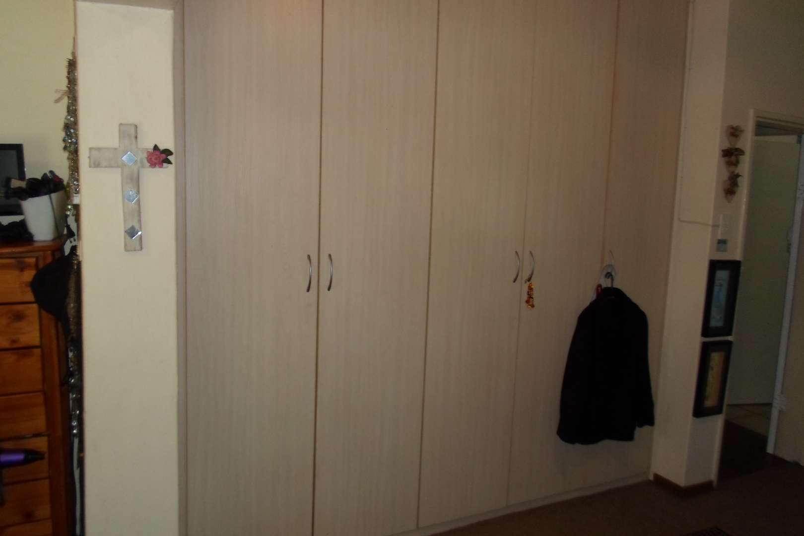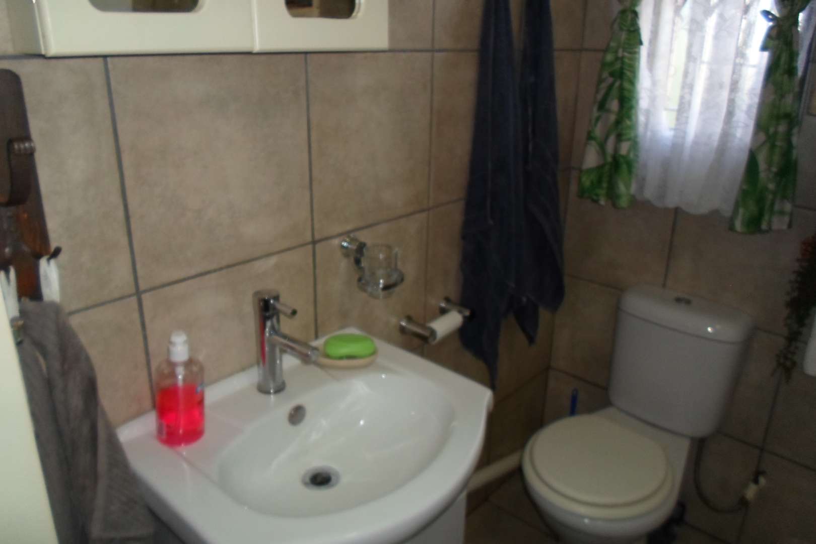 This beautiful family home is located in a quiet area of Doringkloof. You enter property through a beautiful excellently maintained garden. Entering the front door with safety door into a well decorated entrance area into a beautiful lounge/tv area. It has a comfortable dining room leading into a well-equipped kitchen with neat melamine tops and ample wooden cupboards. From the kitchen there is access to a storeroom and a laundry room. The geyser is fitted on the outside of the house. The double garage with a store room can also be accessed from the kitchen.