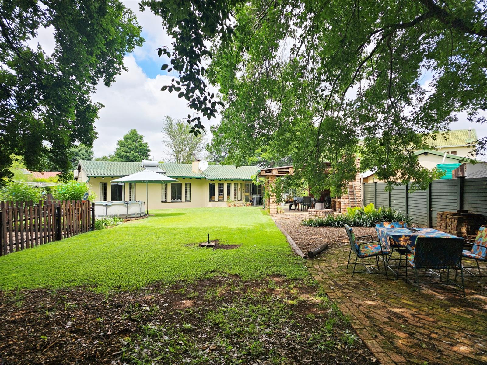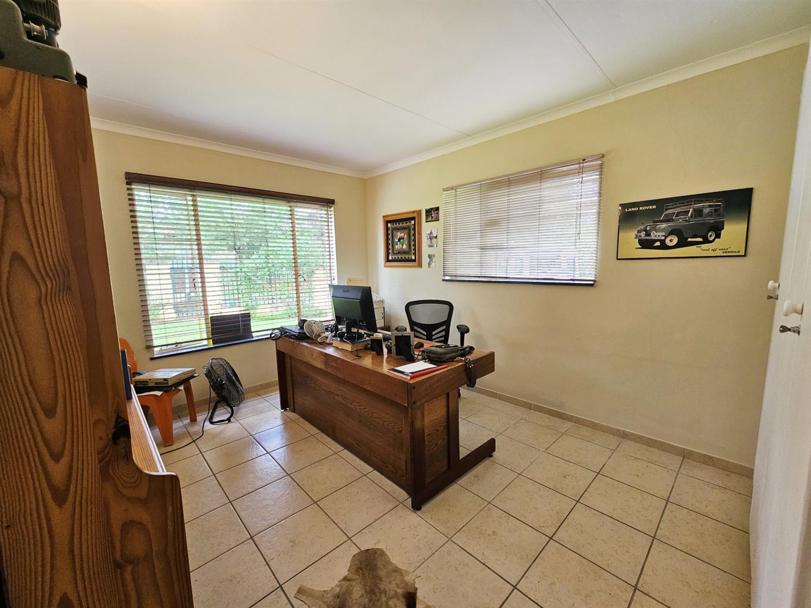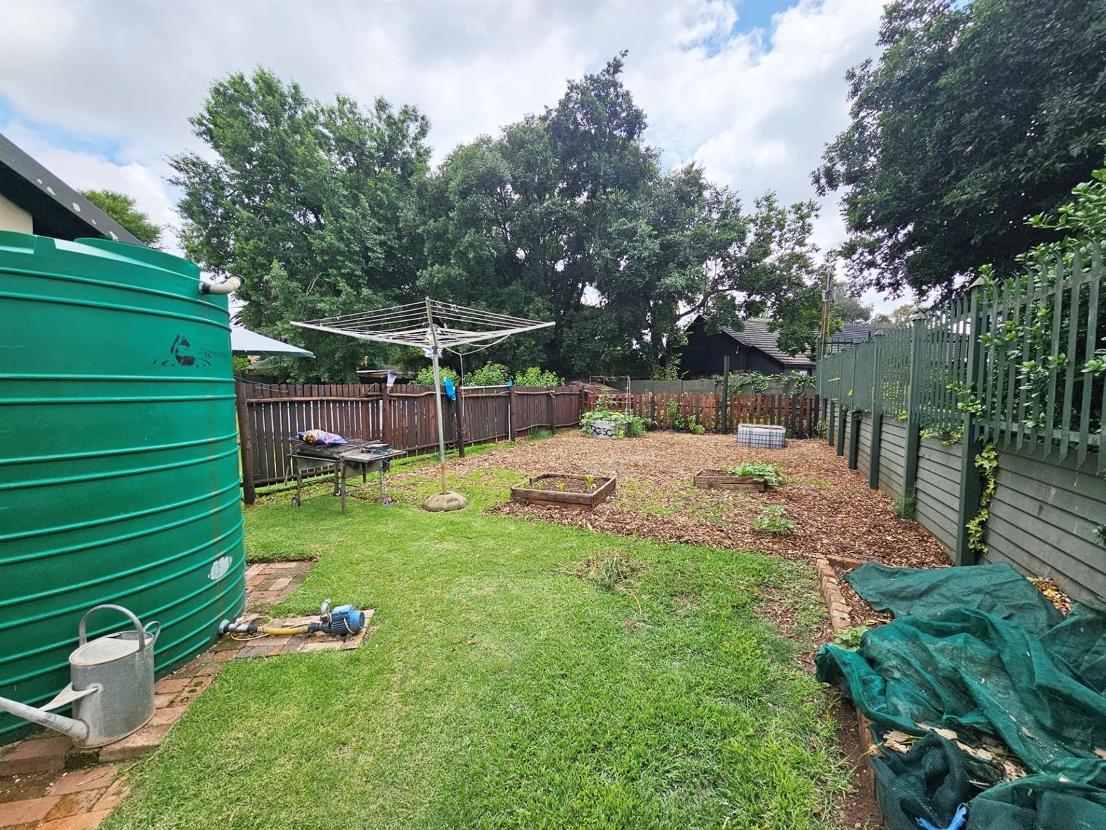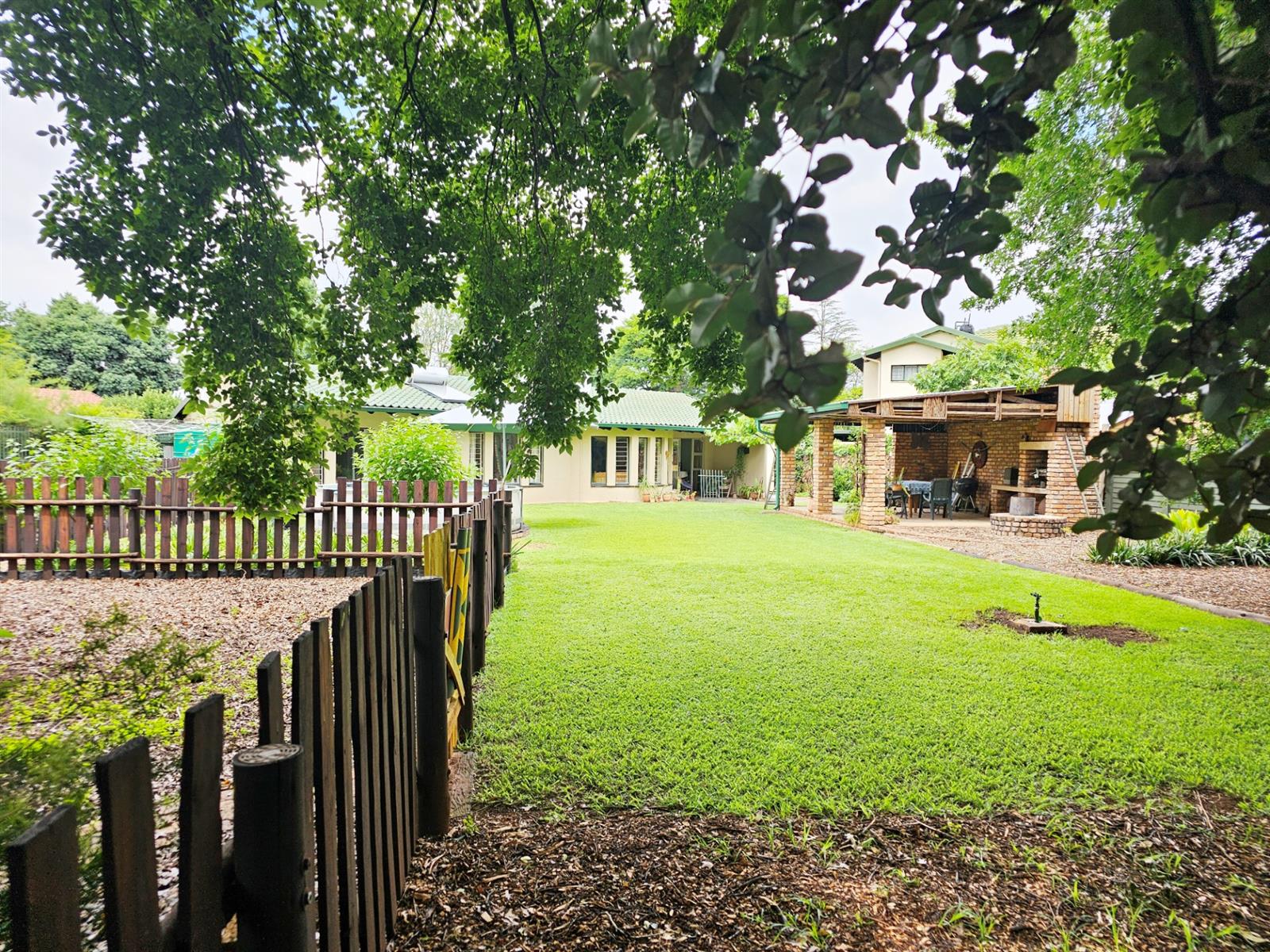 Off to the side, there’s a versatile room that works beautifully as a guest bedroom or home office. A second living area/ or an alternative as an office, spills out through sliding doors into a lush, tree-filled garden — the kind of garden that’s clearly been tended with pride, complete with mature trees, grapevines, a chicken coop , and a veggie patch tucked behind the fence. A big attraction here is also the entertainment area - spacious, open sided, zinc roof with a reed ceiling, provinding insulation, a built - in braai and a boma - setting the scene for memorable evenings with friends and family.