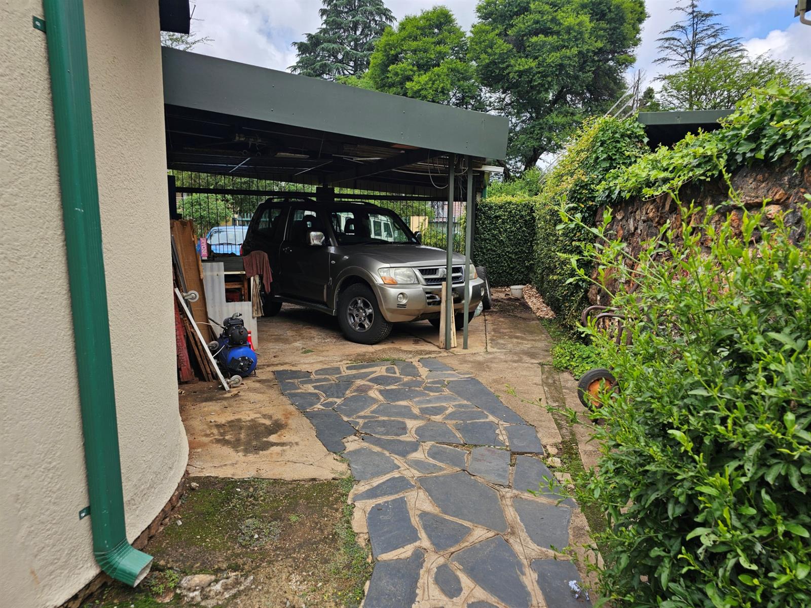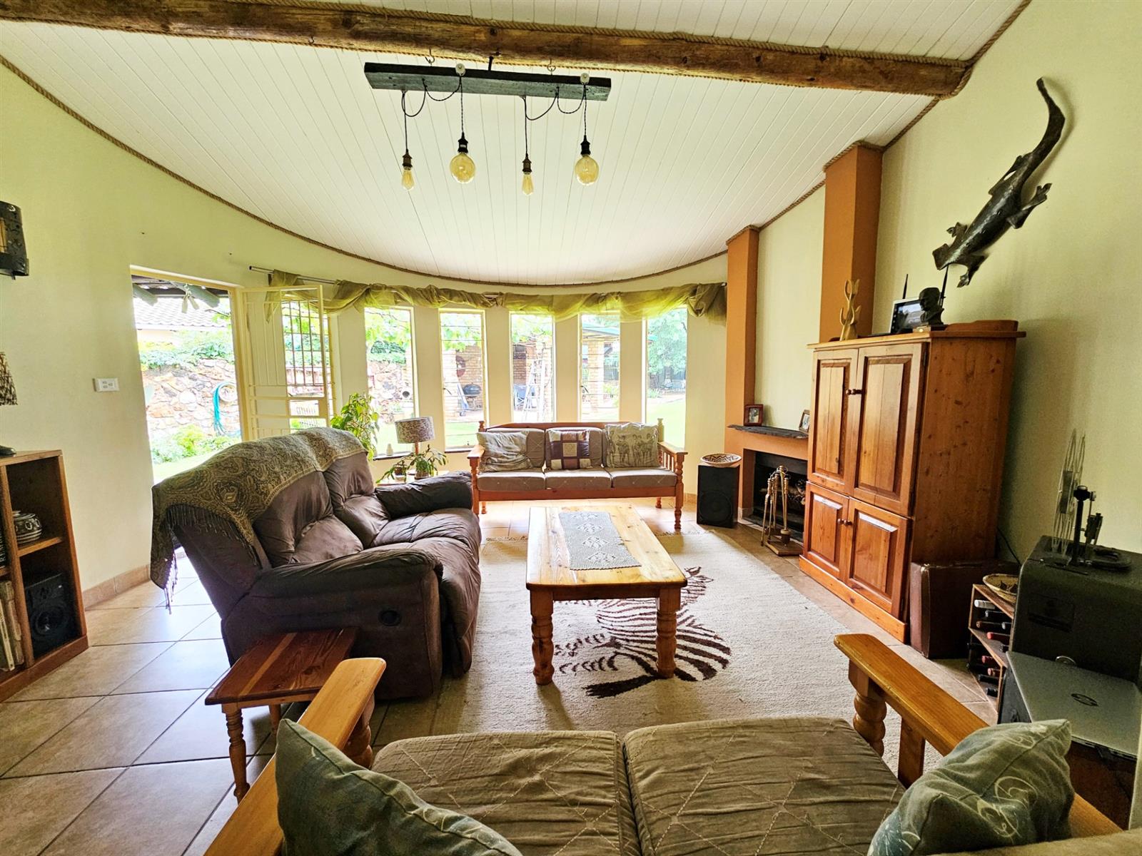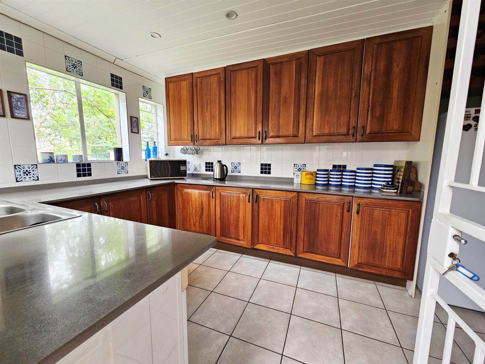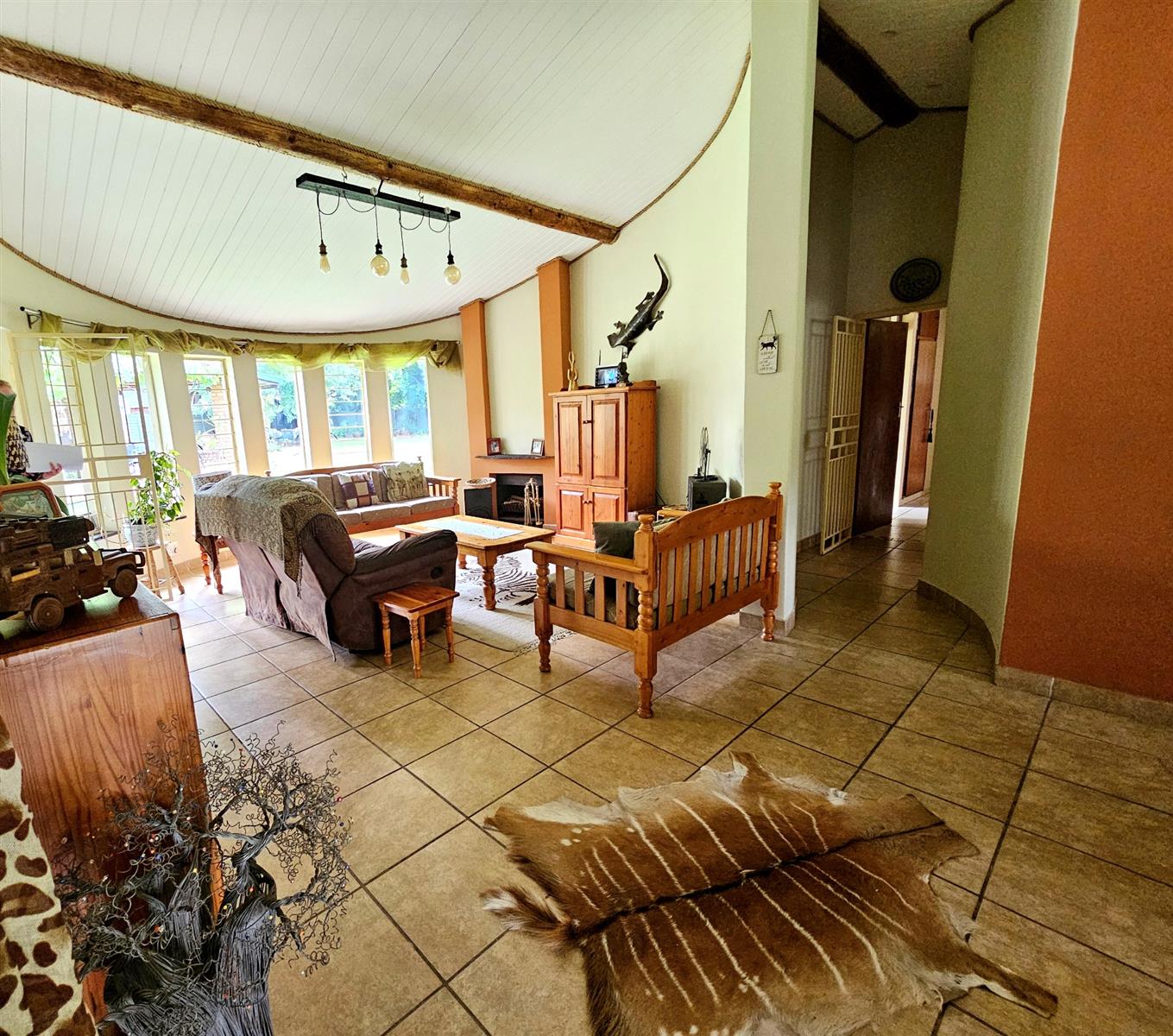 Off to the side, there’s a versatile room that works beautifully as a guest bedroom or home office. A second living area/ or an alternative as an office, spills out through sliding doors into a lush, tree-filled garden — the kind of garden that’s clearly been tended with pride, complete with mature trees, grapevines, a chicken coop , and a veggie patch tucked behind the fence. A big attraction here is also the entertainment area - spacious, open sided, zinc roof with a reed ceiling, provinding insulation, a built - in braai and a boma - setting the scene for memorable evenings with friends and family.