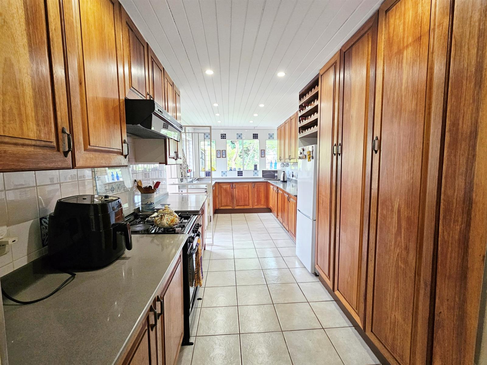 The kitchen blends practicality with personality — fitted with quartz countertops, a gas stove, and a proper pantry cupboard. Natural light floods in, and the flow between inside and out makes it ideal for real family living. The laundry is large and separate, tucked just outside the kitchen door and forms part of a very handy service area or courtyard, where you will also find an outside loo with a hot/cold shower