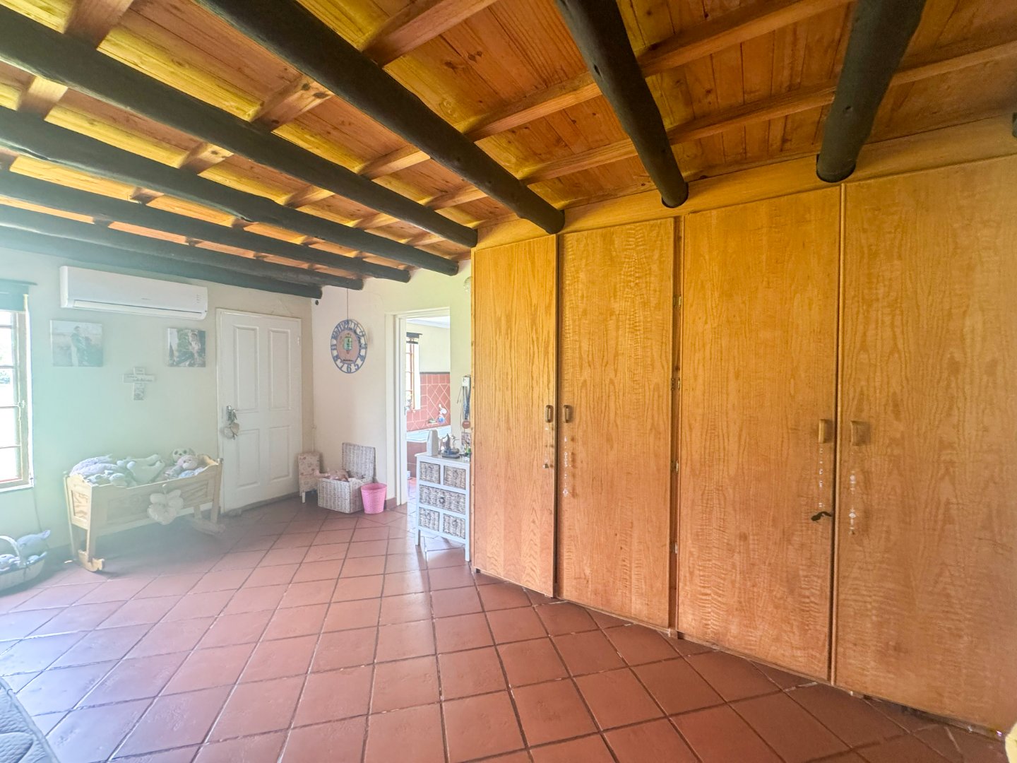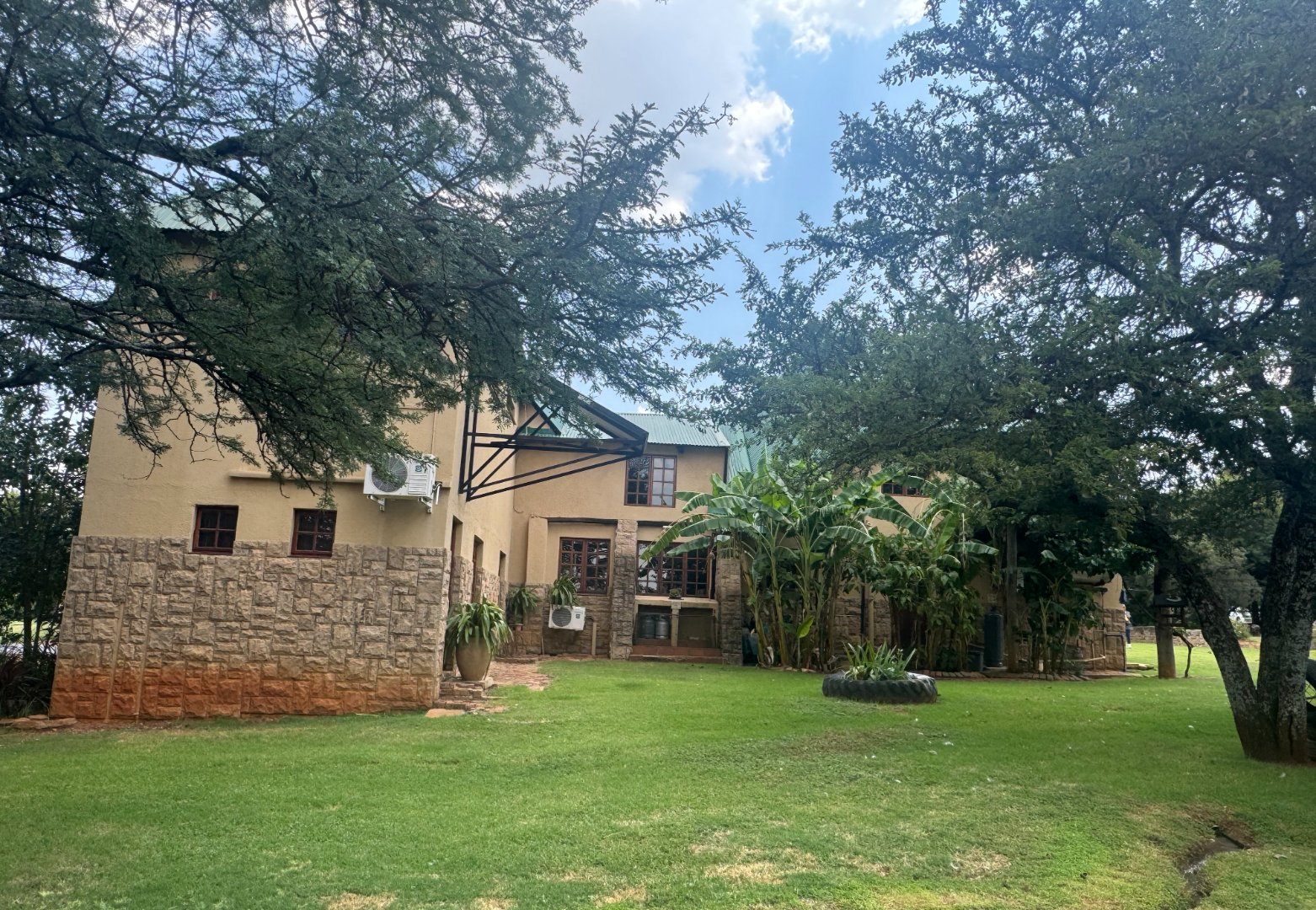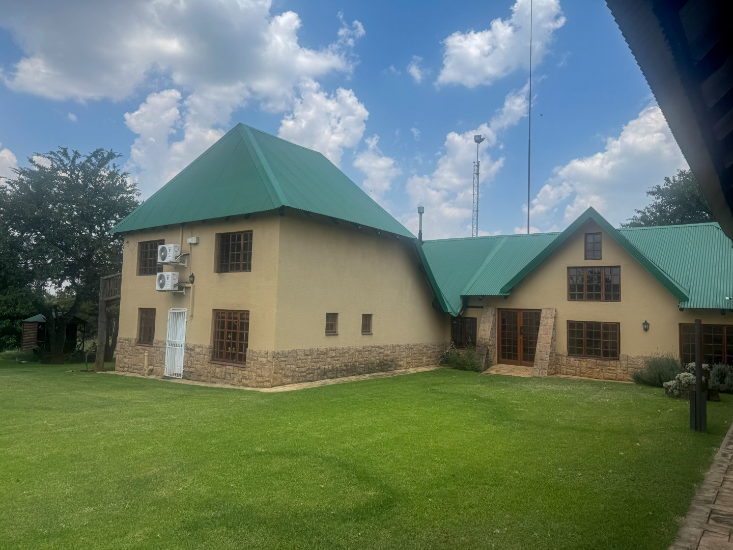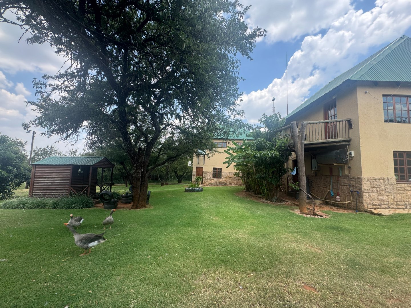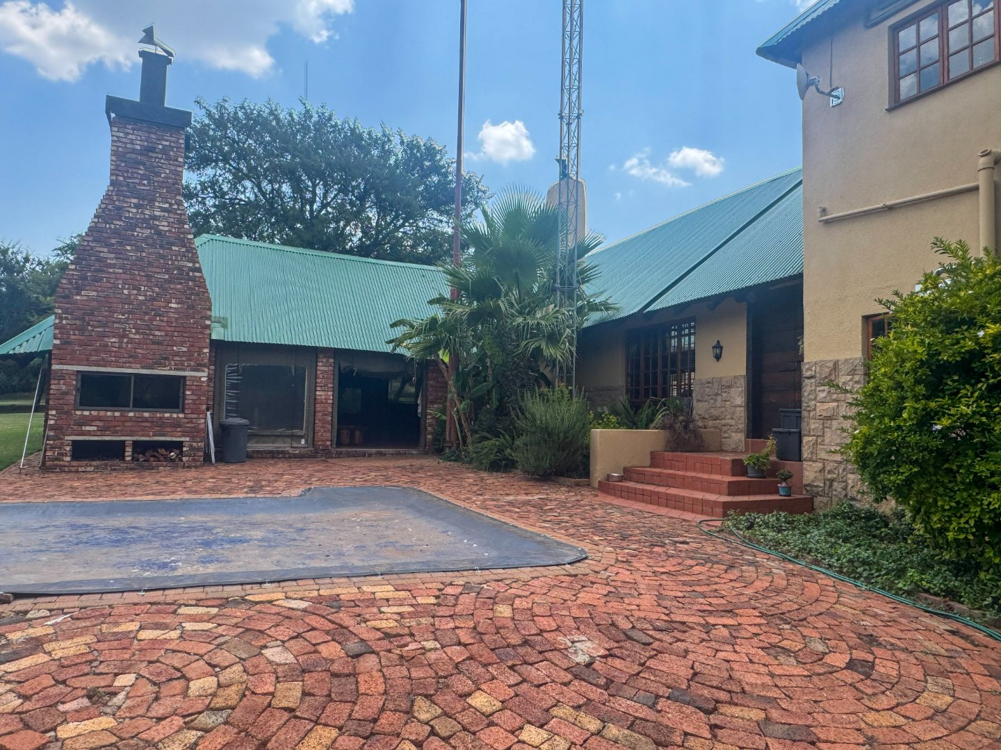 Set on 3.1 hectares in Klerksdorp, this impressive property blends peaceful country living with the practicality of town convenience. The double-storey main residence offers four spacious en-suite bedrooms, each with its own bathroom, delivering privacy, comfort and a high standard of living. High ceilings throughout and striking wooden finishes on the upper level create warmth and a timeless, upmarket feel.