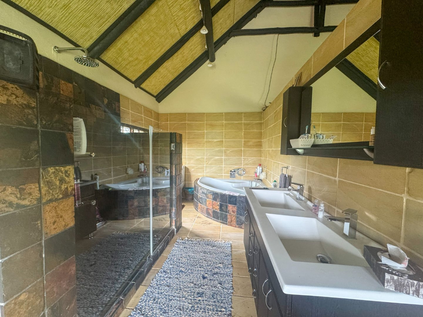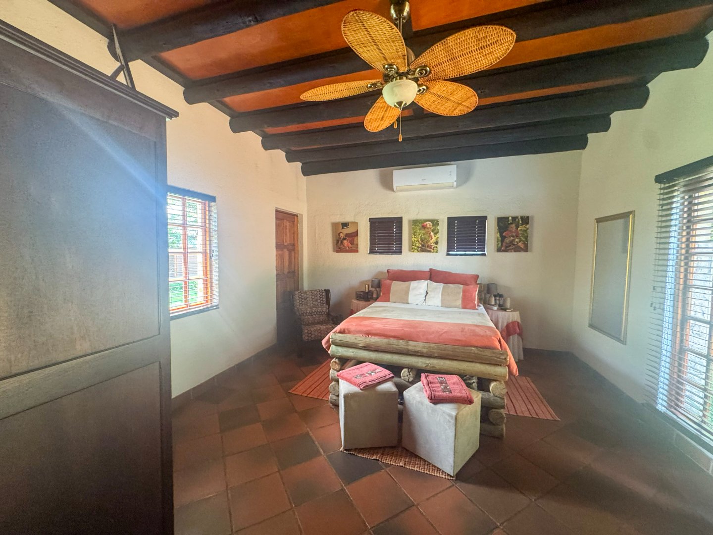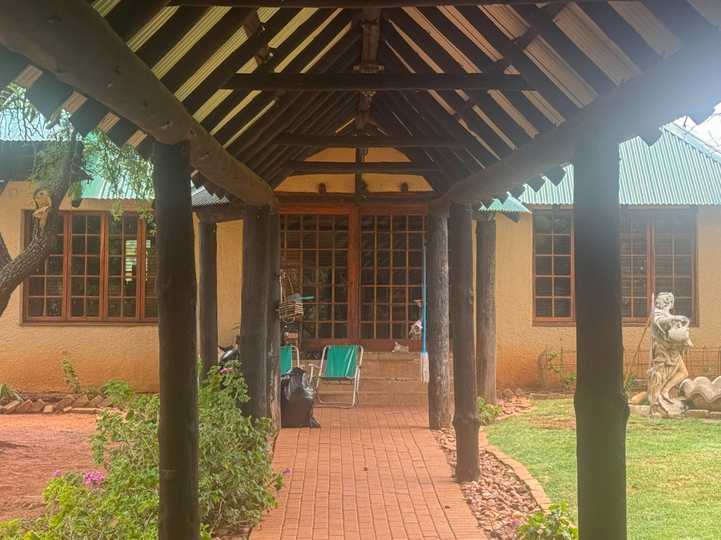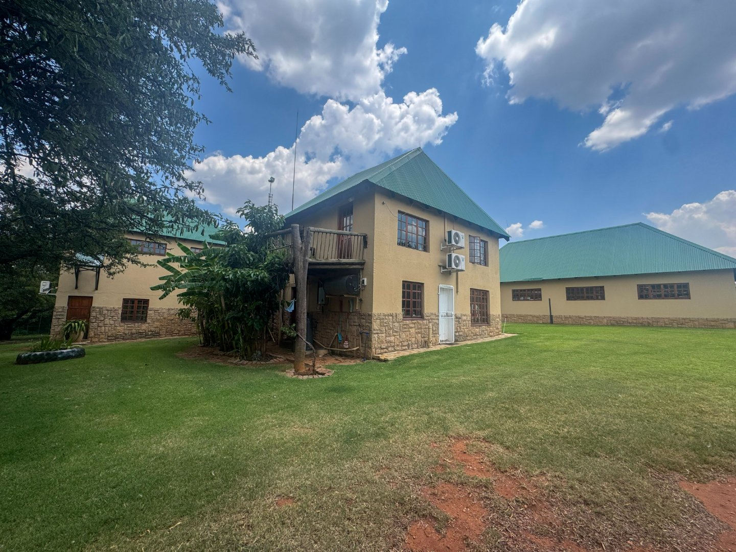 Set on 3.1 hectares in Klerksdorp, this impressive property blends peaceful country living with the practicality of town convenience. The double-storey main residence offers four spacious en-suite bedrooms, each with its own bathroom, delivering privacy, comfort and a high standard of living. High ceilings throughout and striking wooden finishes on the upper level create warmth and a timeless, upmarket feel.