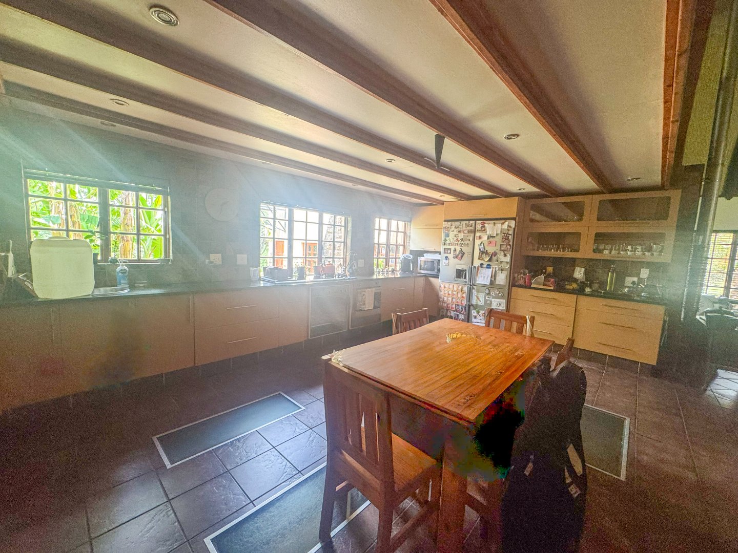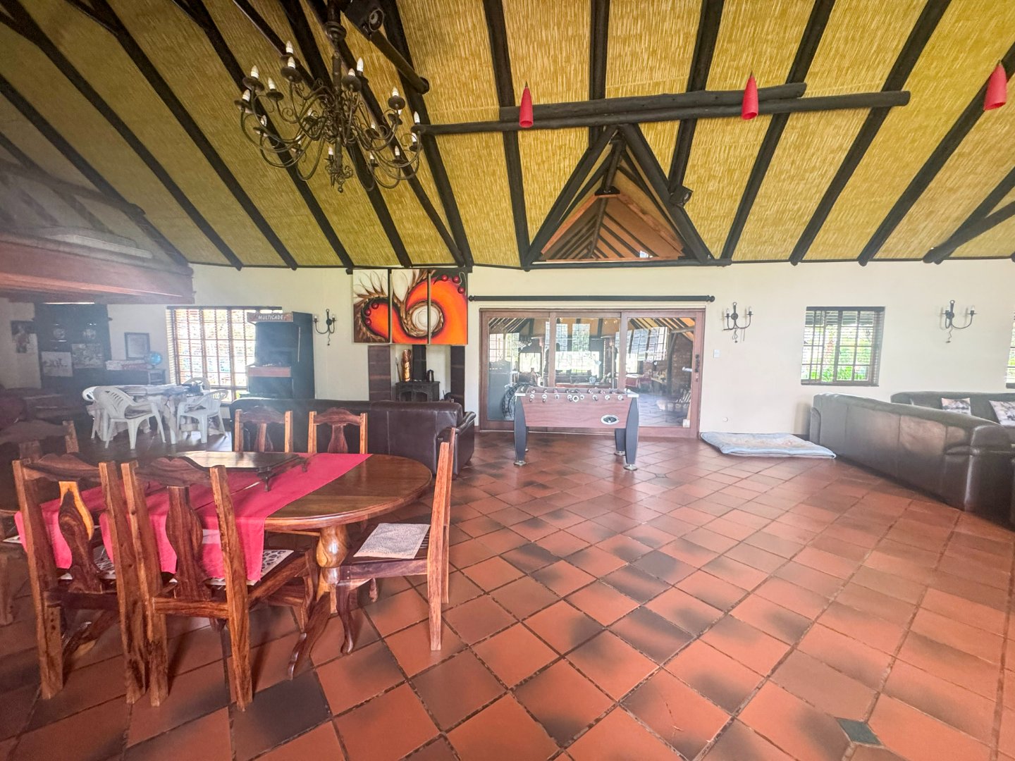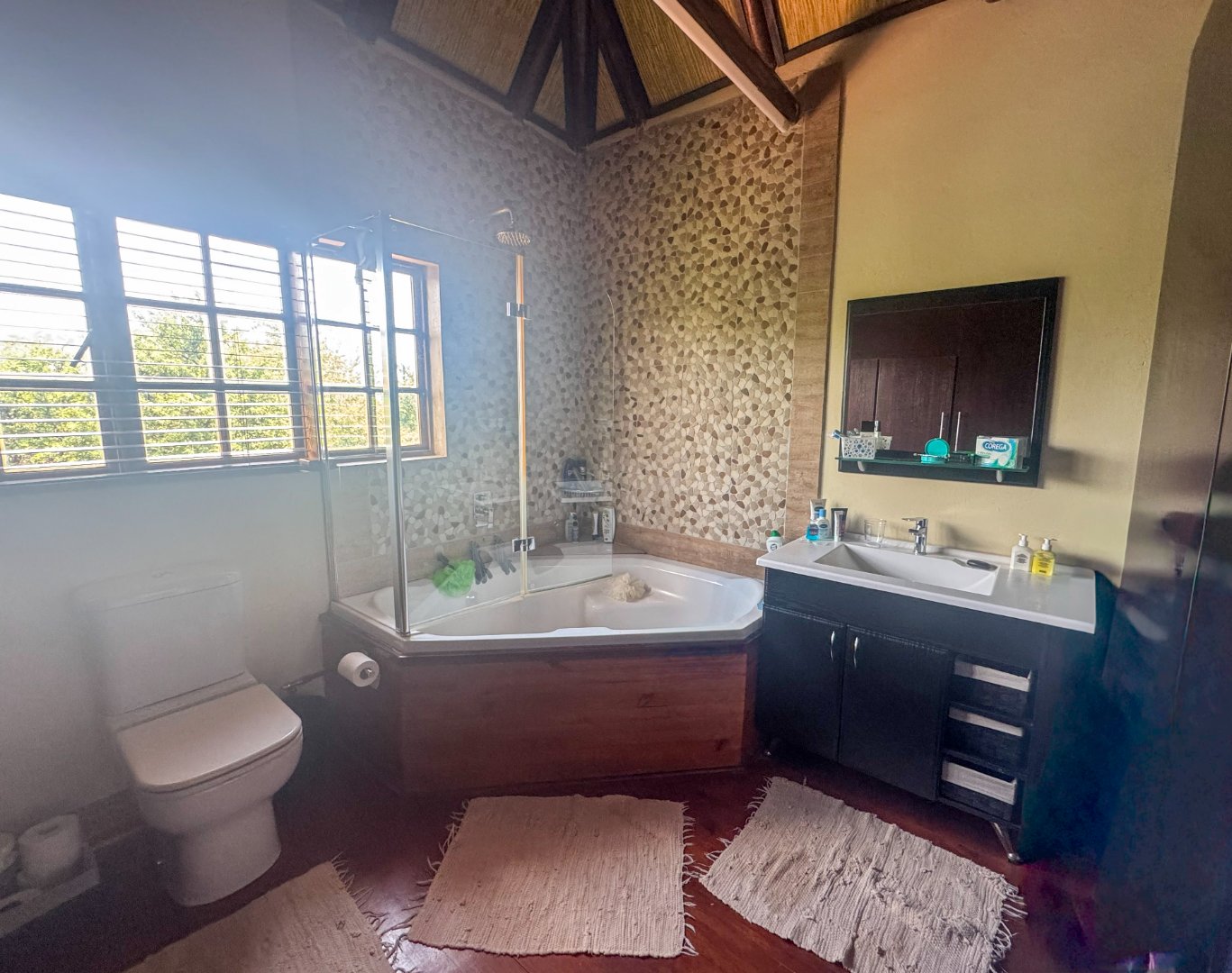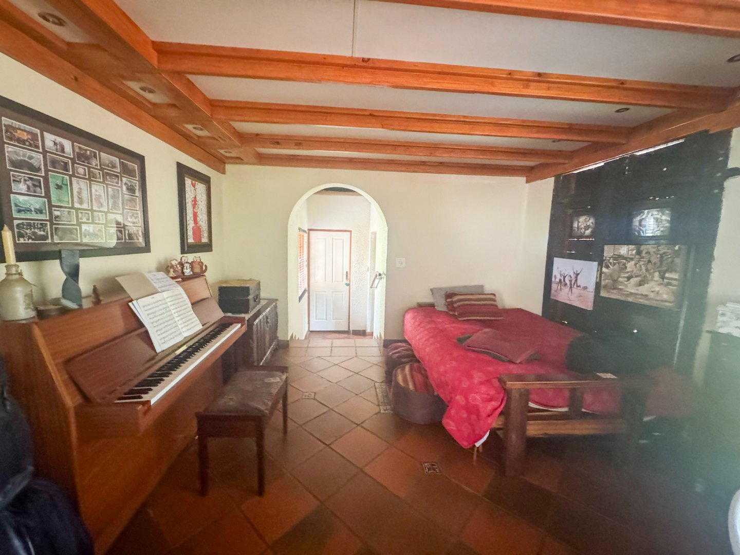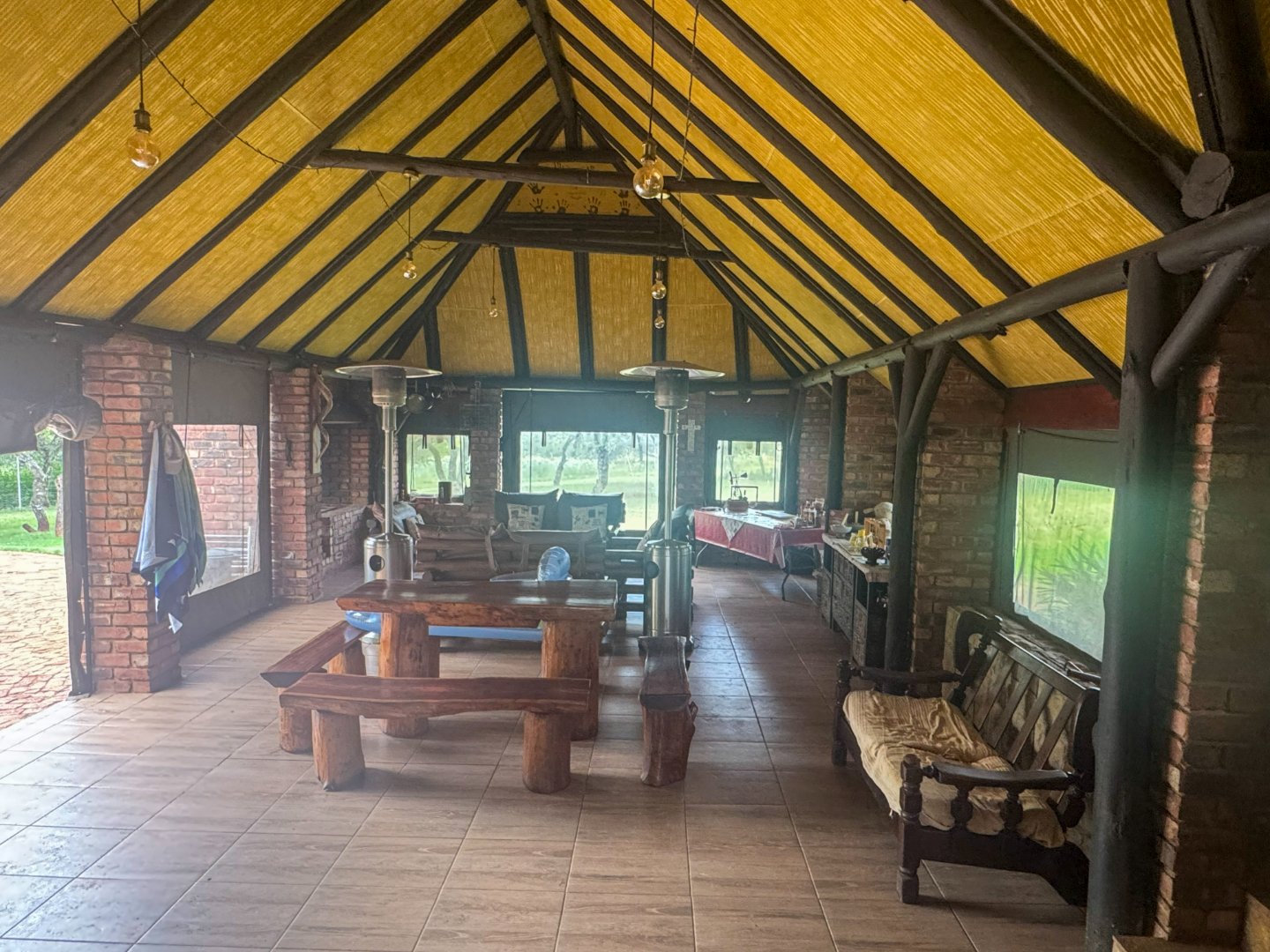 Set on 3.1 hectares in Klerksdorp, this impressive property blends peaceful country living with the practicality of town convenience. The double-storey main residence offers four spacious en-suite bedrooms, each with its own bathroom, delivering privacy, comfort and a high standard of living. High ceilings throughout and striking wooden finishes on the upper level create warmth and a timeless, upmarket feel.
