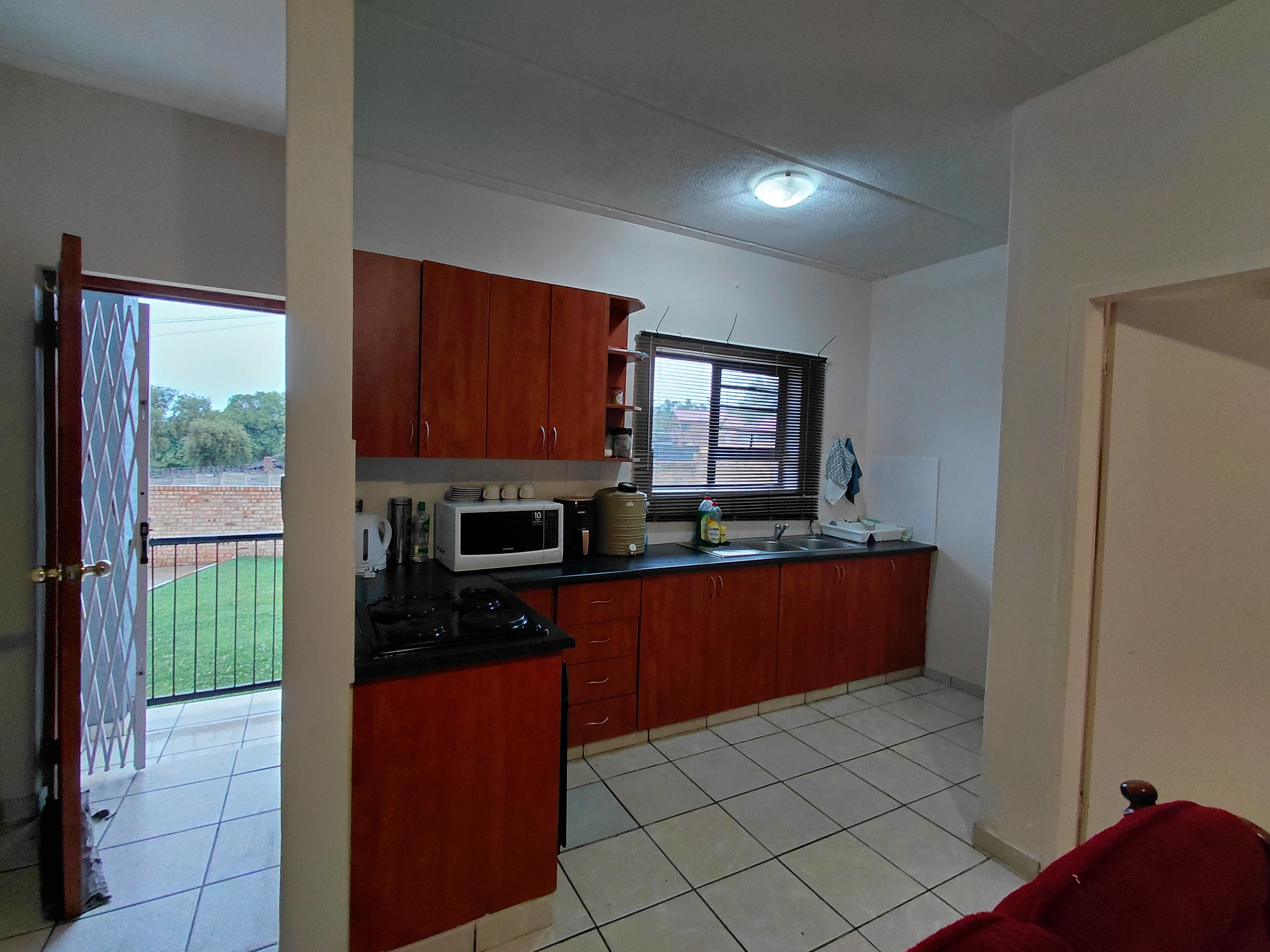 Modern one bedroom flat with en-suite bathroom and open-plan kitchen and lounge area. Single carport and pre-paid electricity. Communal DSTV included. Basic usage fee payable.