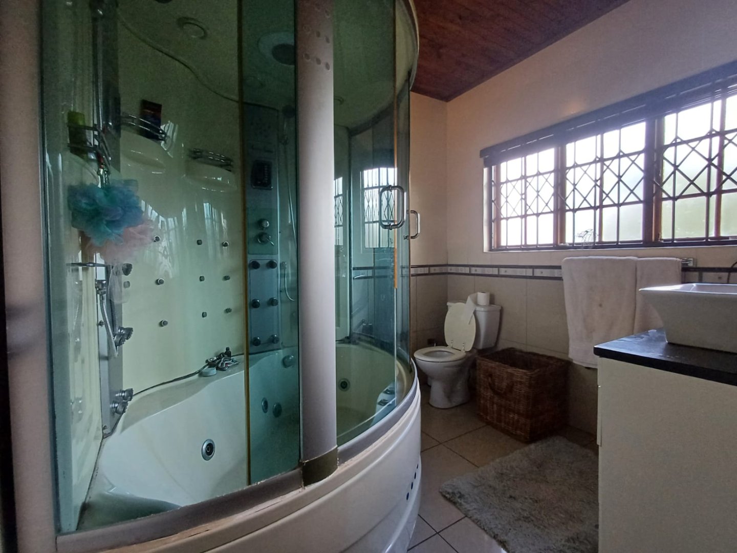 For your peace of mind, the property is equipped with security beams, an inverter system, prepaid electricity, and a switch-over system for generator use. With air conditioning throughout and seamless indoor-outdoor living, this home truly has it all.