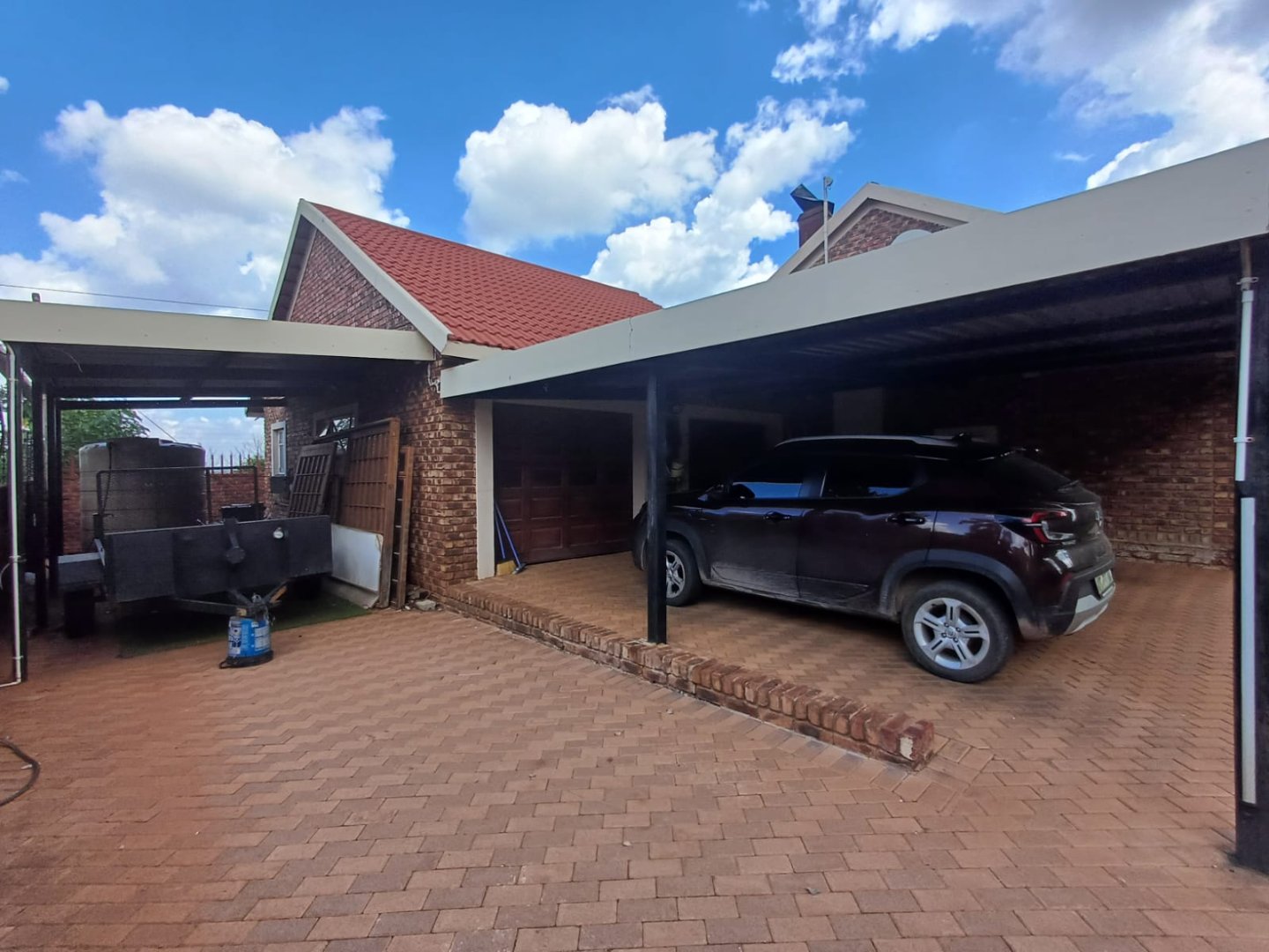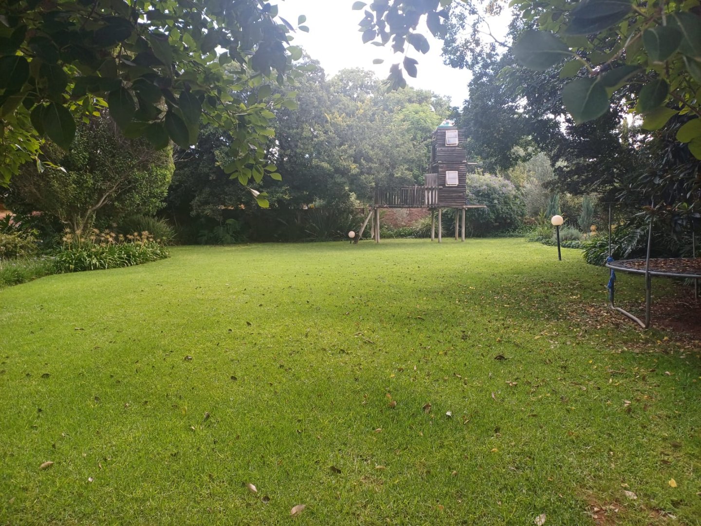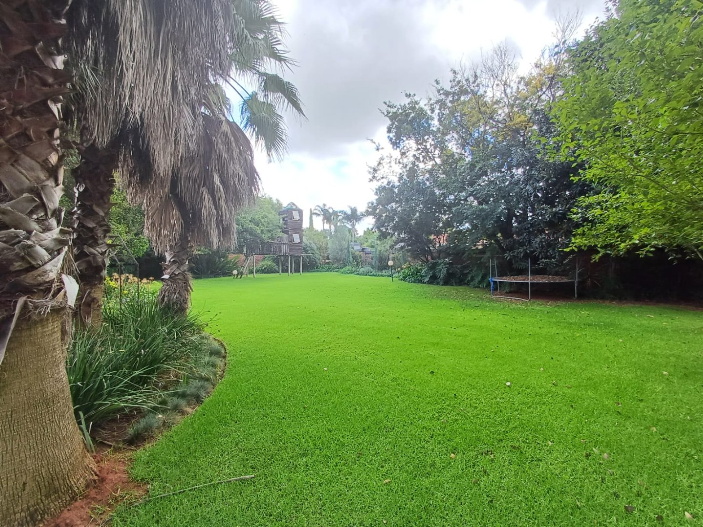 The beautifully manicured garden, complete with a borehole and automated irrigation system, ensures year-round greenery. Additional features include a double garage, two carports, a large tool shed, and a full domestic room with its own bathroom.