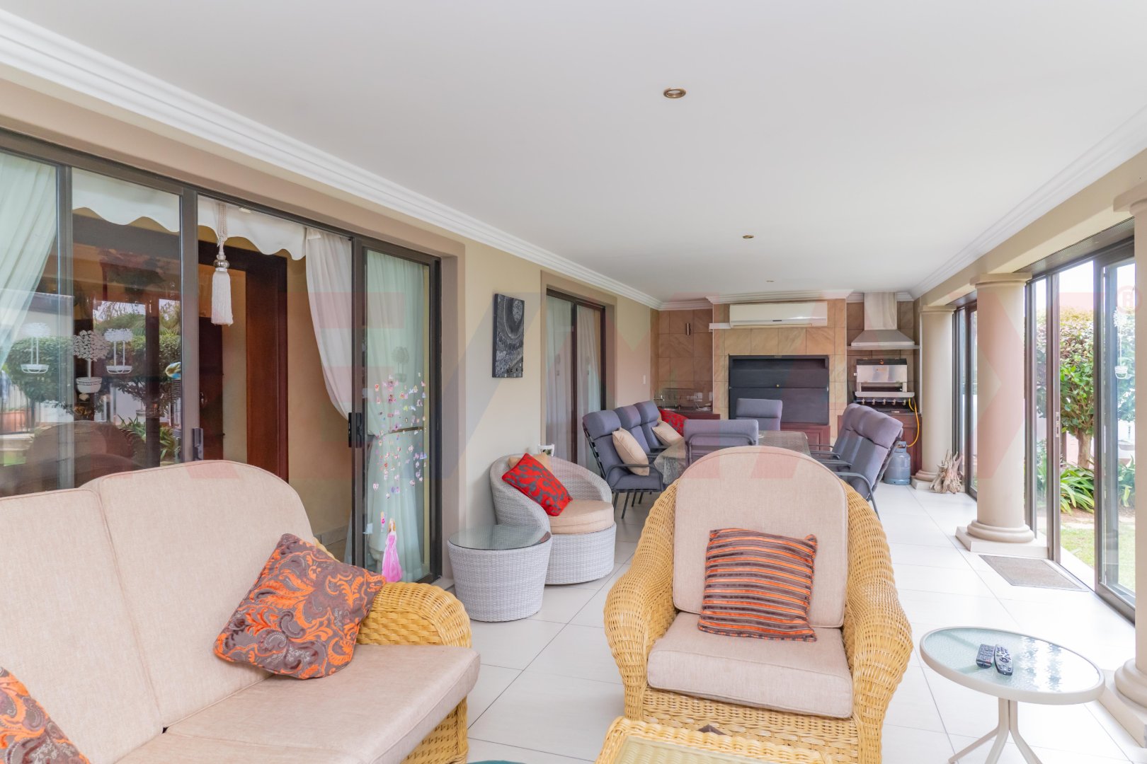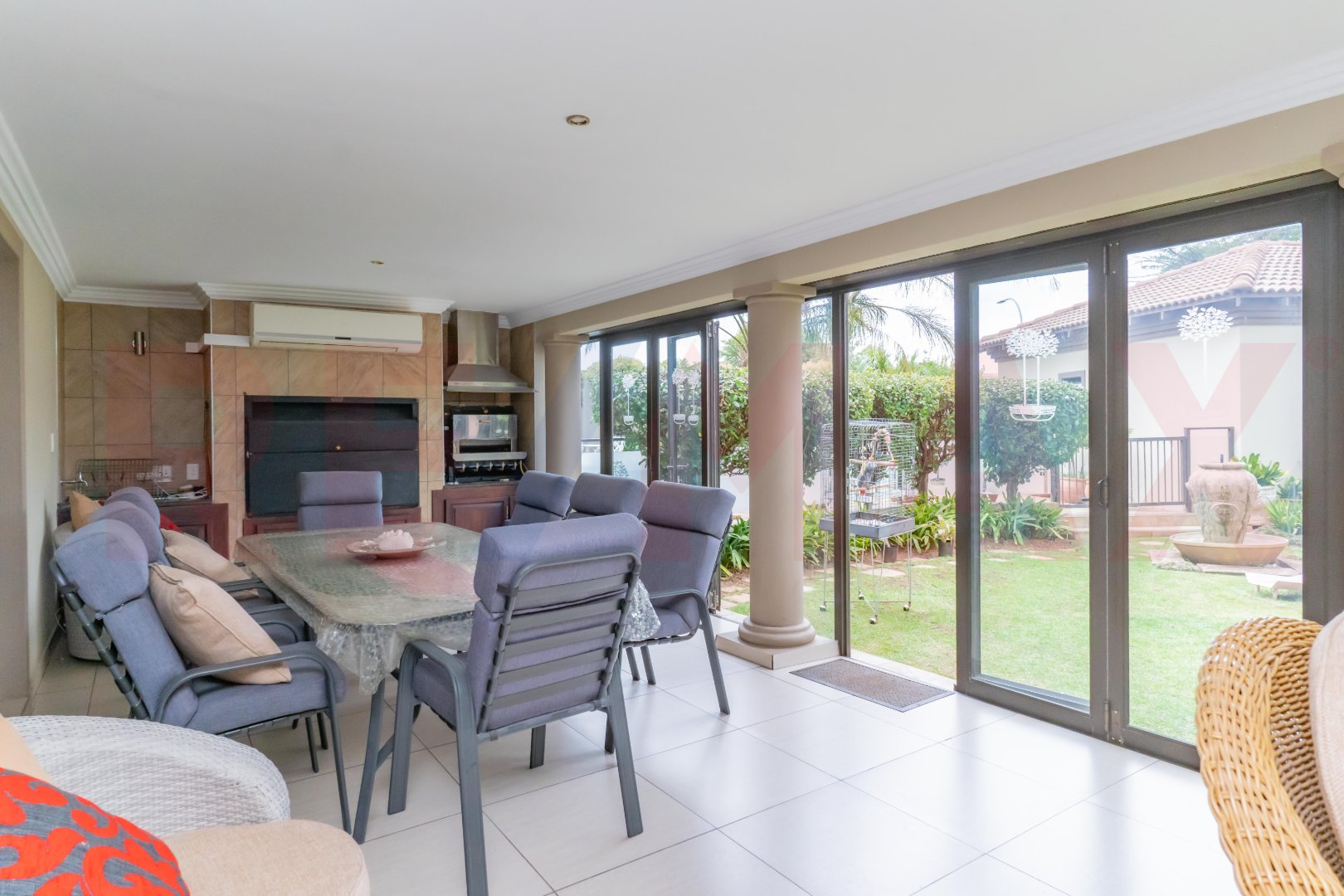 Entertainment room with gas and wood braai, opening up onto enclosed garden leading to Pool.