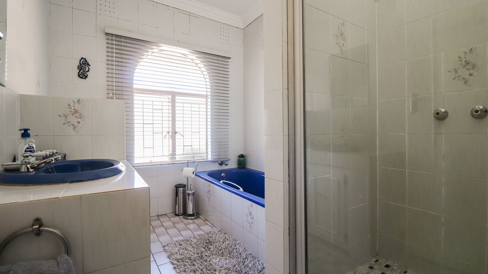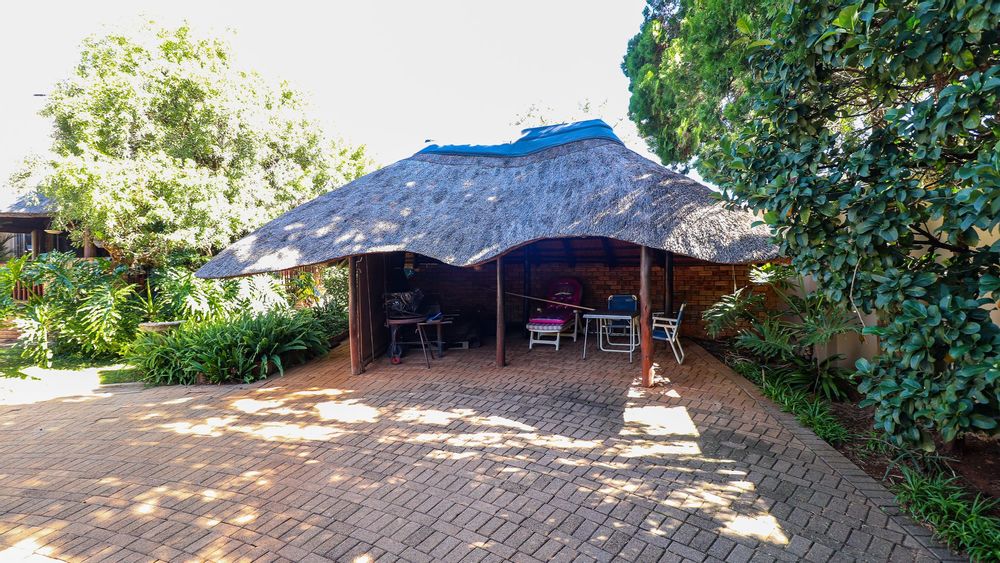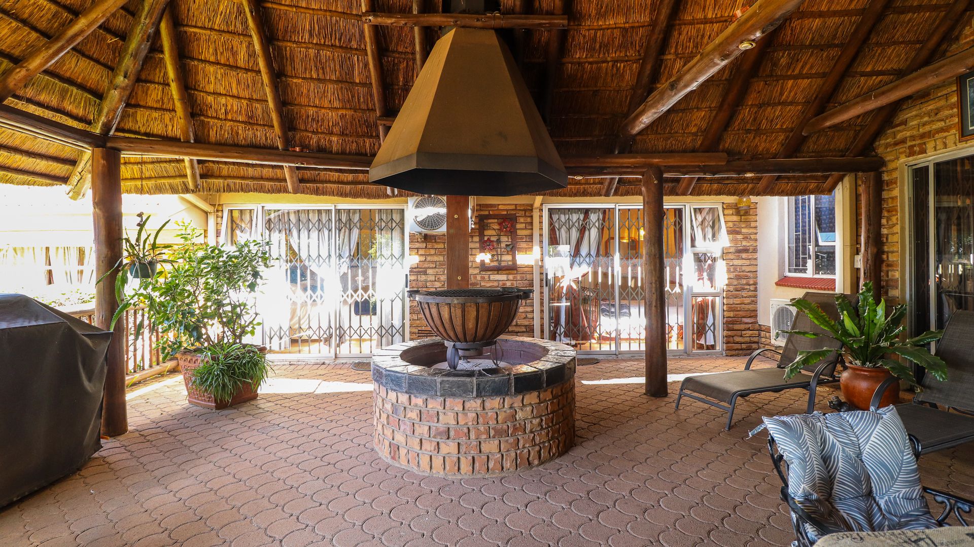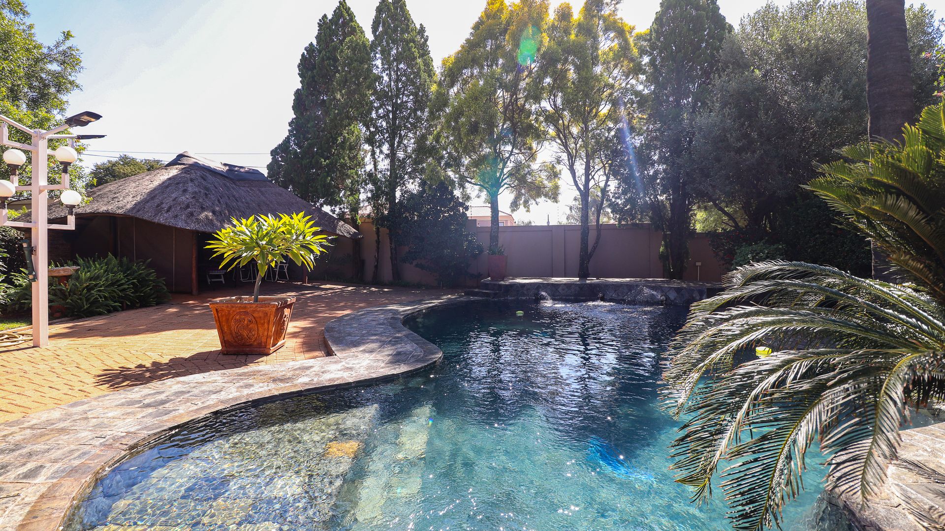 Step outside and you’ll find a beautiful garden, including a covered patio with an outdoor dining space, a built-in braai, and a beautifully landscaped garden. The highlight is the sparkling swimming pool and jacuzzi, creating a perfect retreat for both relaxation and socializing on warm days or cool evenings.