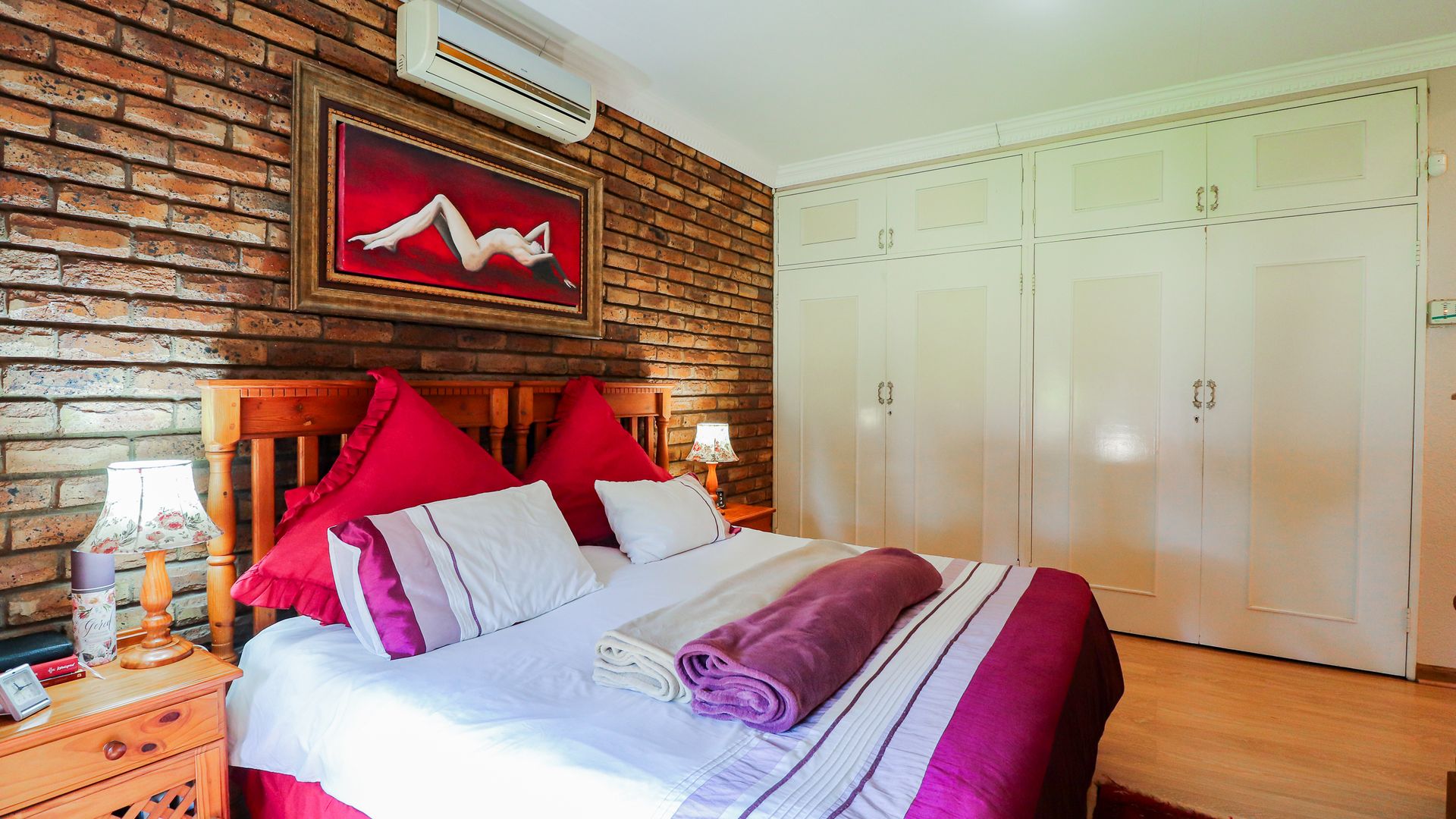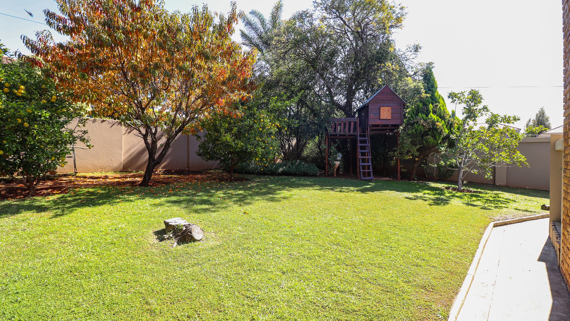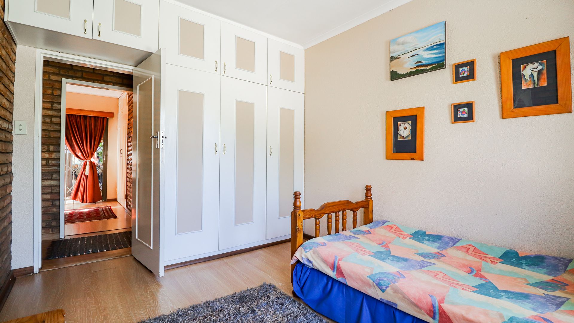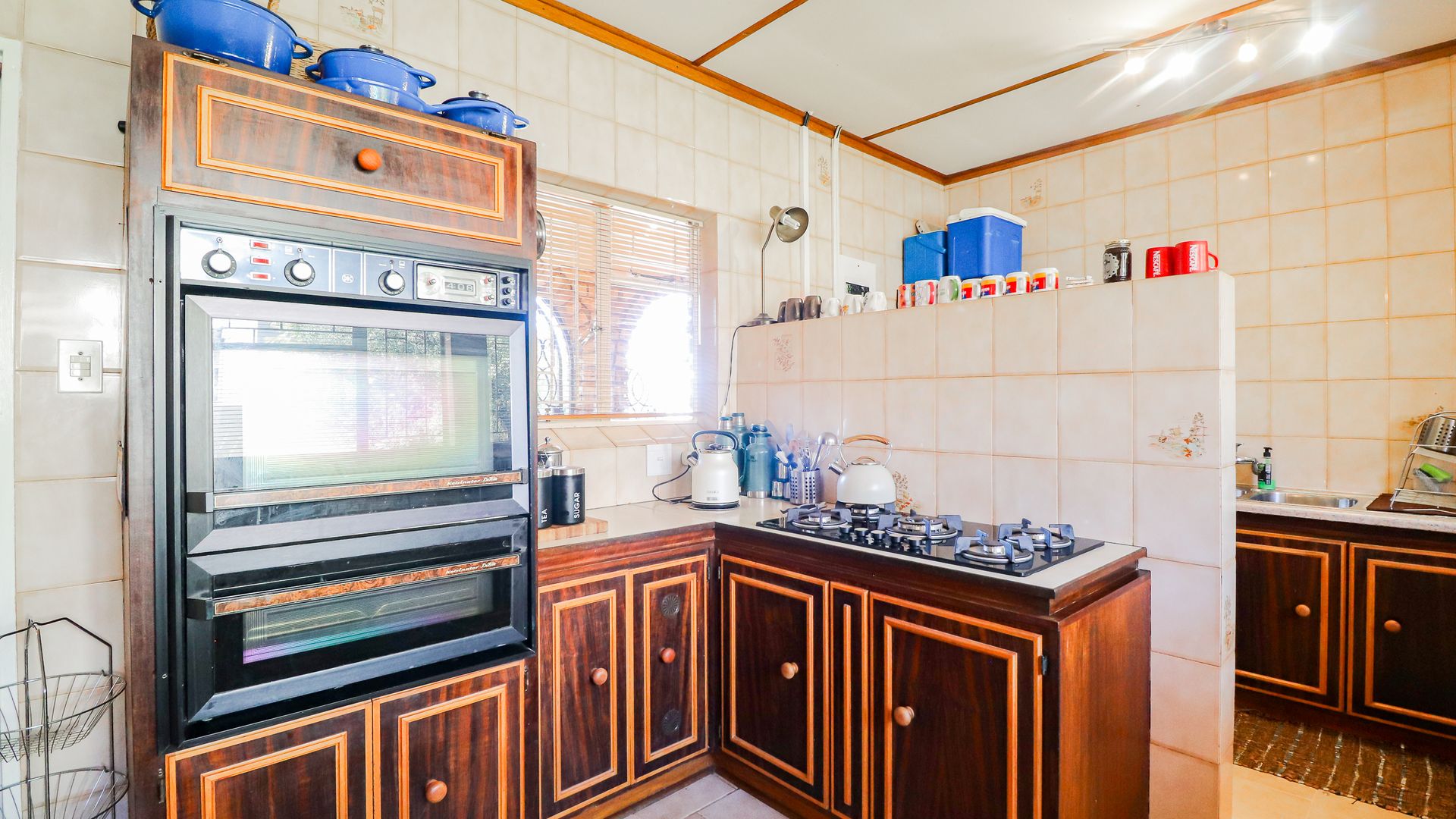 Step outside and you’ll find a beautiful garden, including a covered patio with an outdoor dining space, a built-in braai, and a beautifully landscaped garden. The highlight is the sparkling swimming pool and jacuzzi, creating a perfect retreat for both relaxation and socializing on warm days or cool evenings.