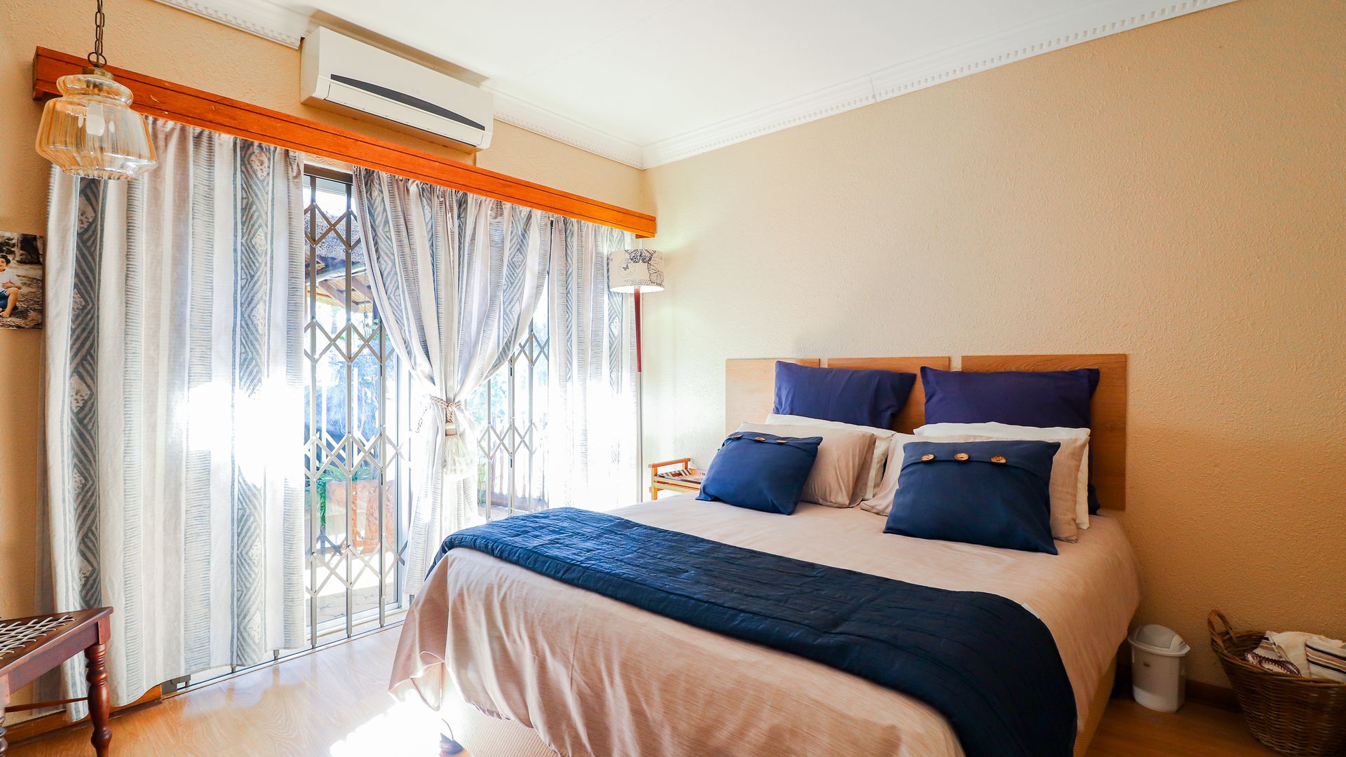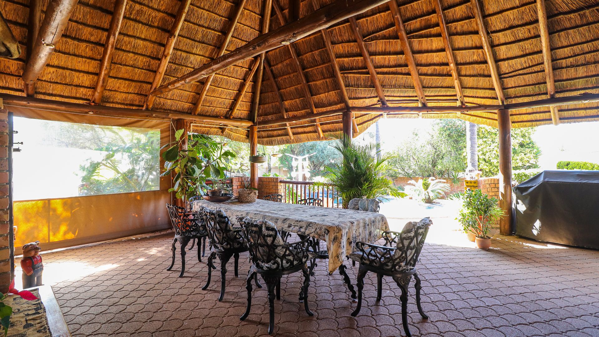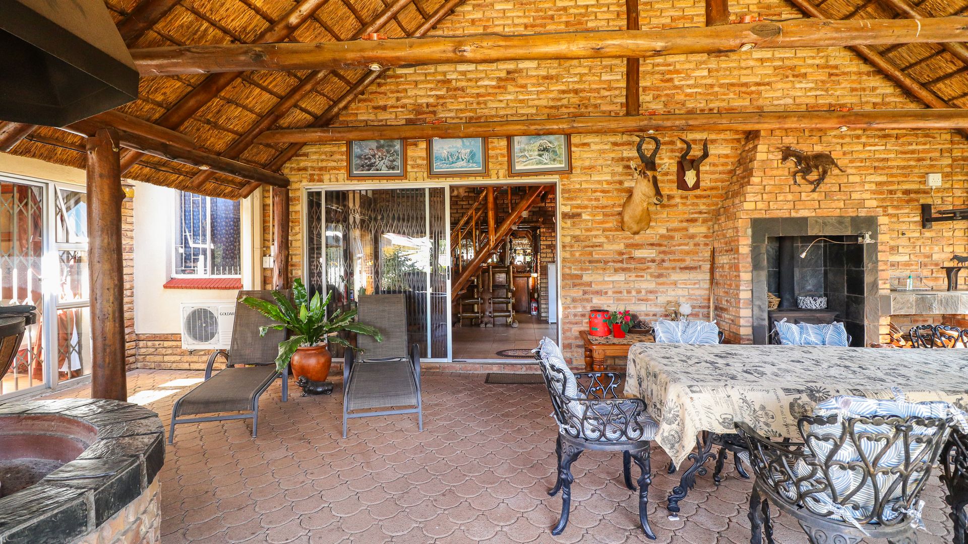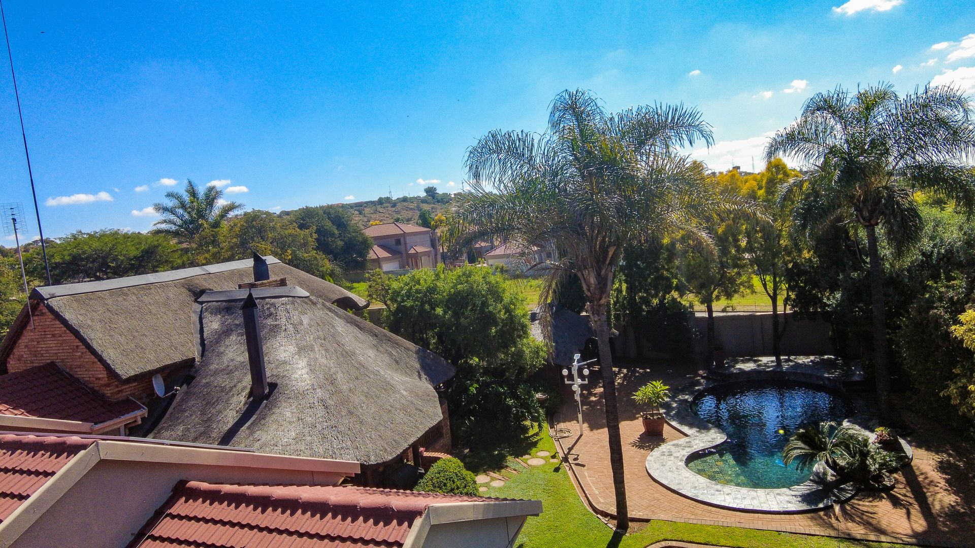 Step outside and you’ll find a beautiful garden, including a covered patio with an outdoor dining space, a built-in braai, and a beautifully landscaped garden. The highlight is the sparkling swimming pool and jacuzzi, creating a perfect retreat for both relaxation and socializing on warm days or cool evenings.
