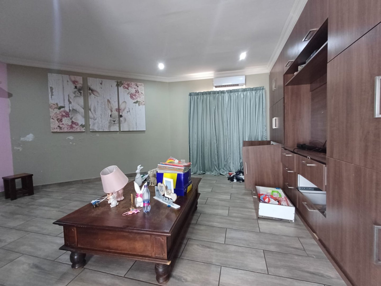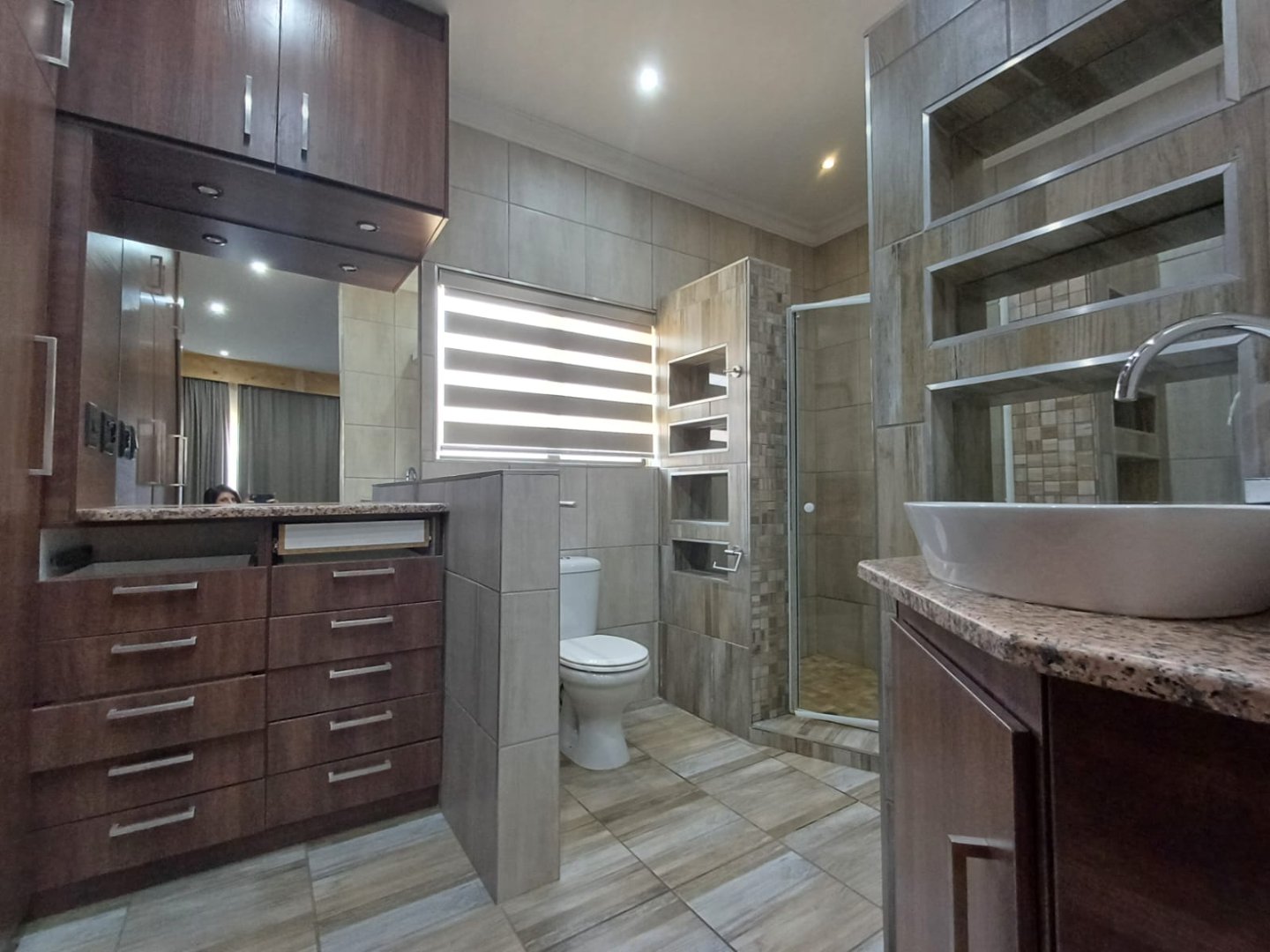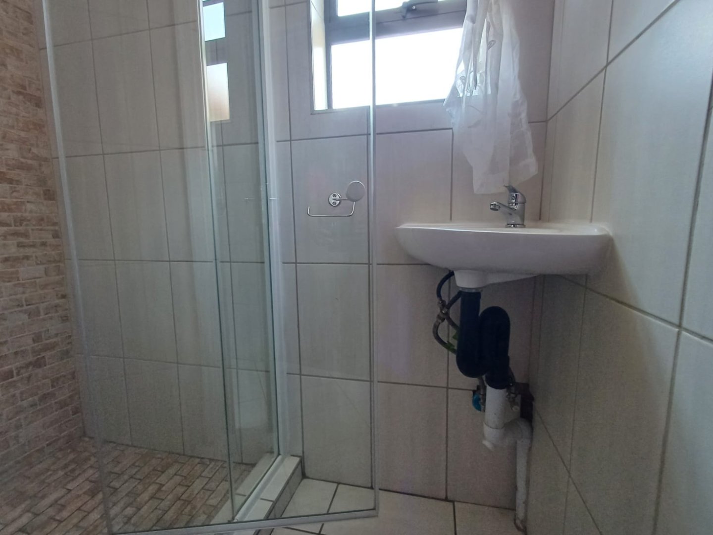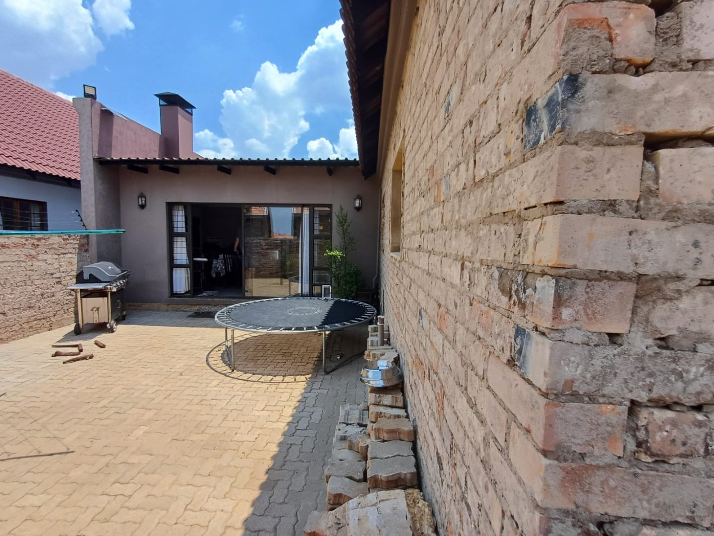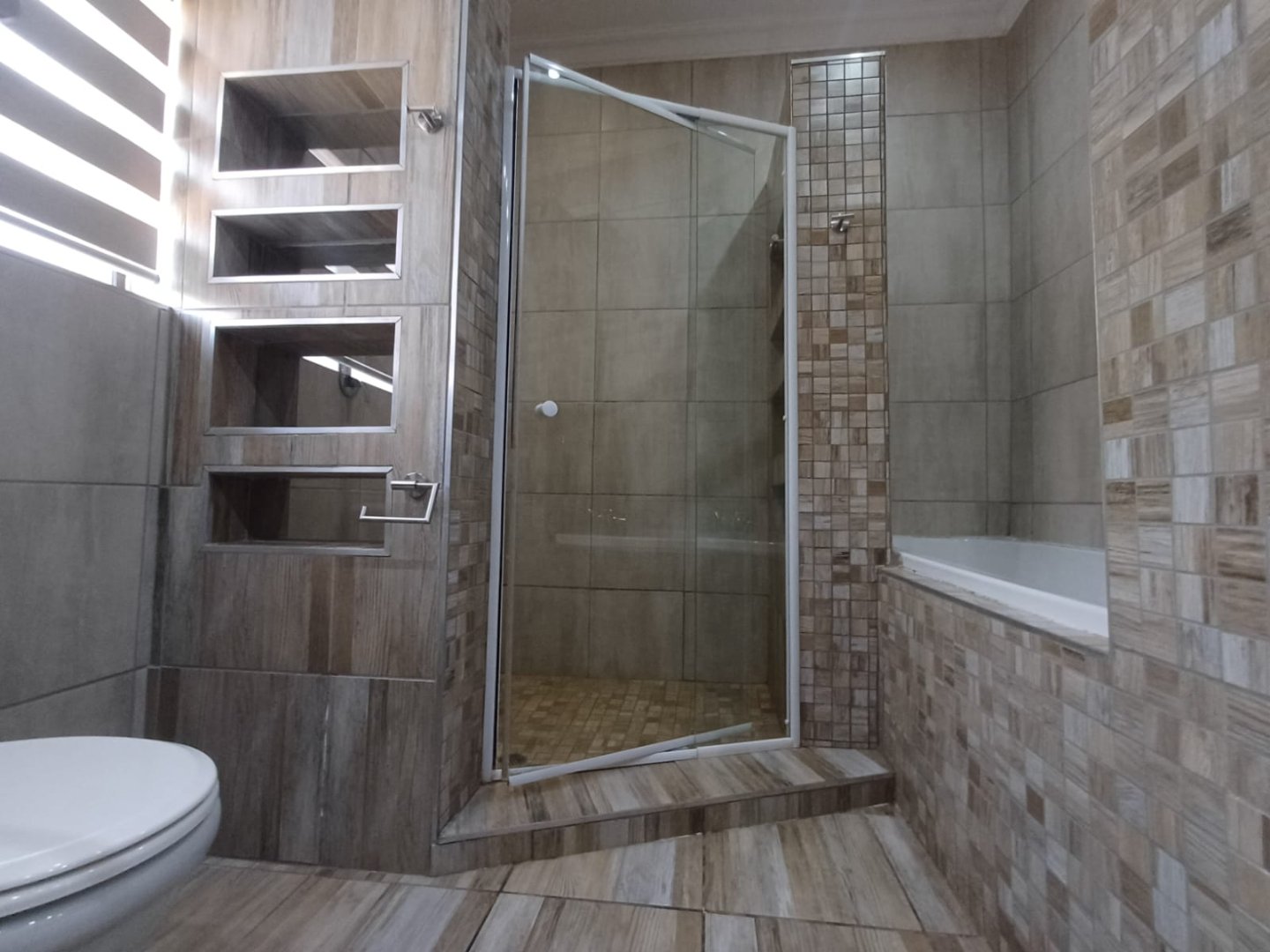 This beautiful full-title townhouse in the sought-after neighborhood of Doringkruin offers modern living with convenience and comfort. Featuring three well-sized bedrooms, the main bedroom includes an en-suite bathroom and built-in cupboards, while a second bathroom serves the rest of the home.
