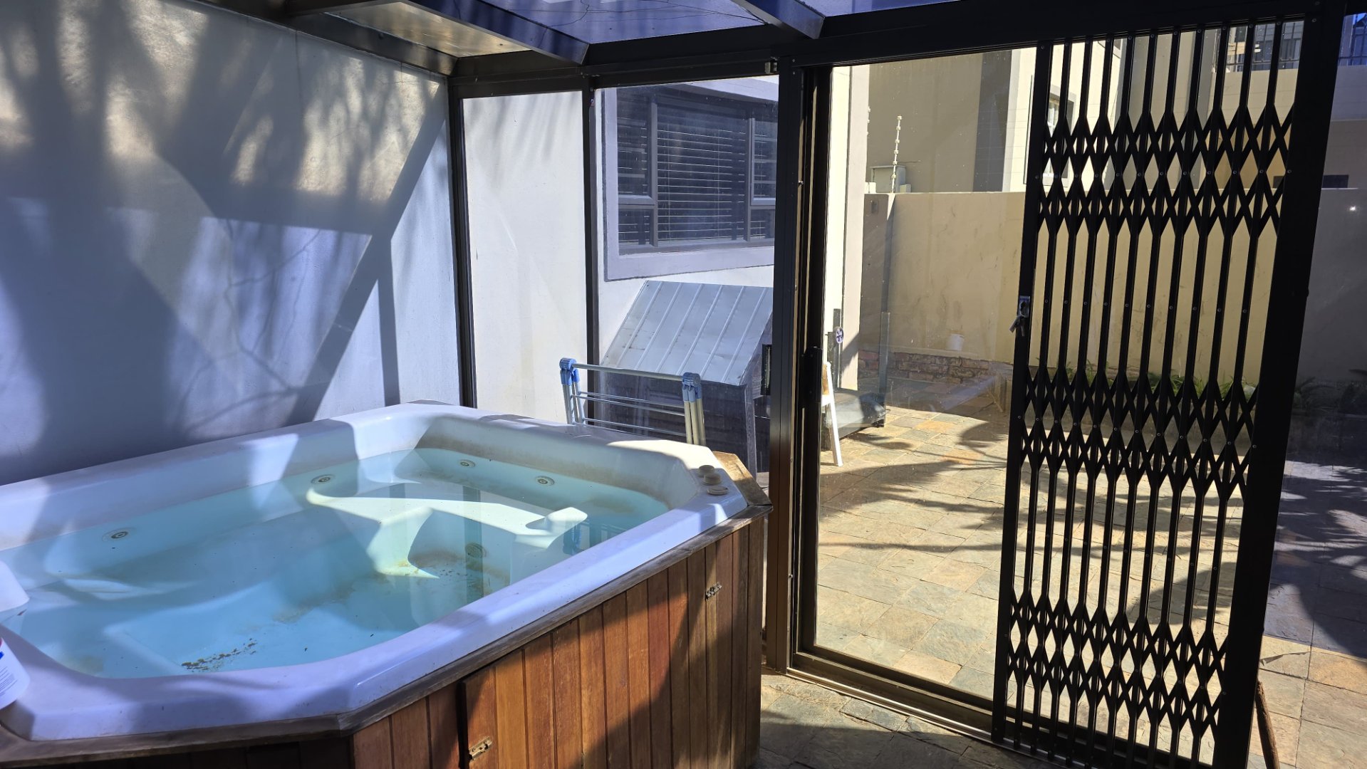 - Enclosed patio with a built-in braai and Jacuzzi. Private, and north facing for maximum sun in winter.