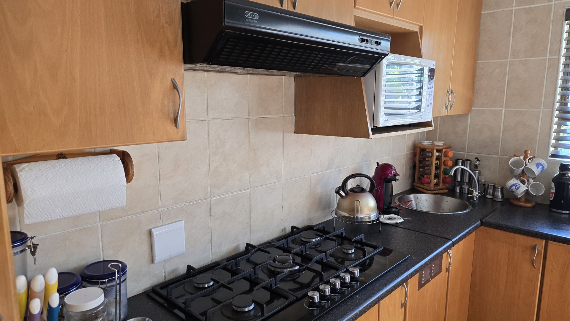 - Well equipped kitchen with separate scullery. Open-plan and super convenient. Gas hob.