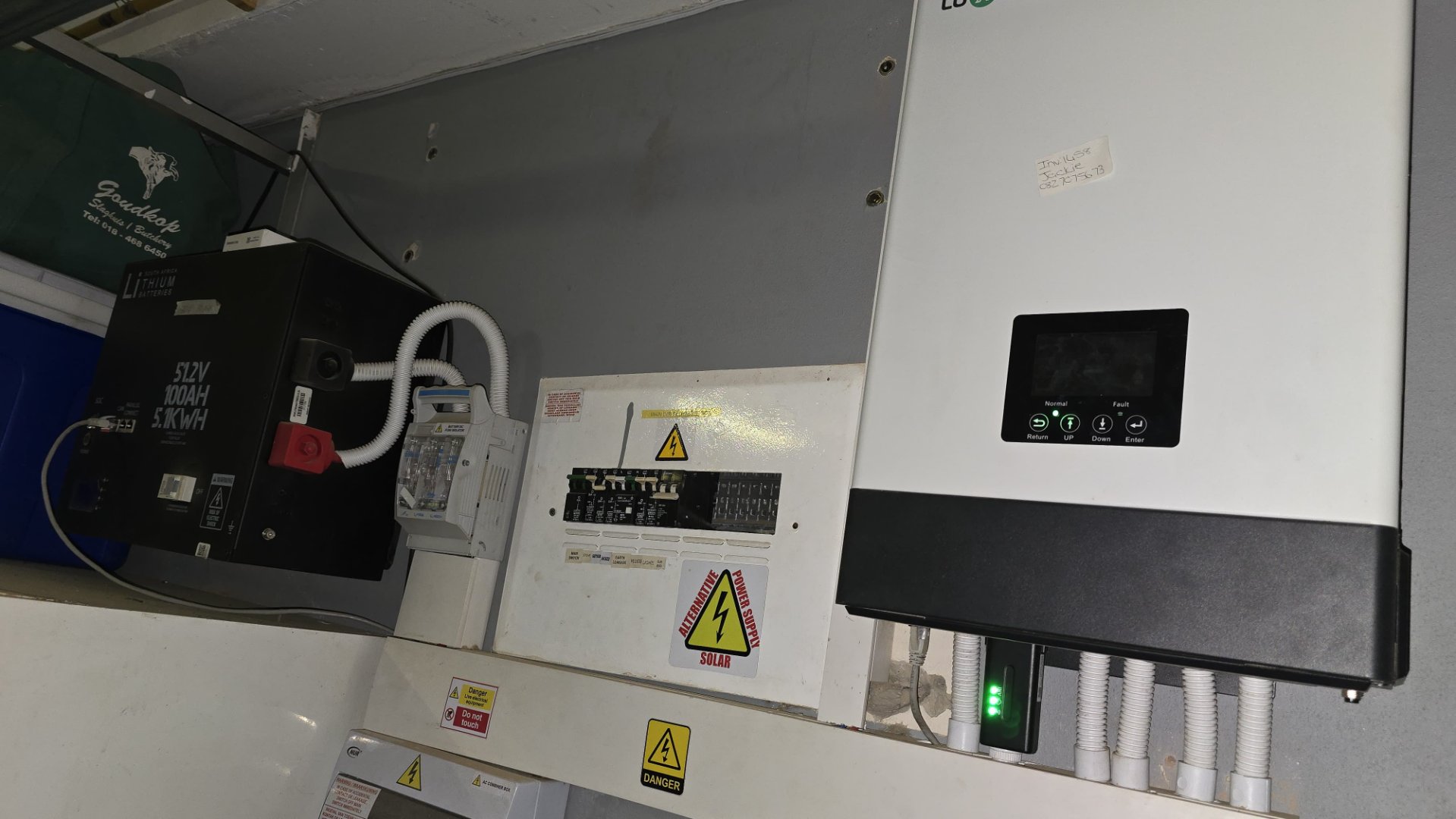 - 5 kVA inverter installed, with 3 solar panels.