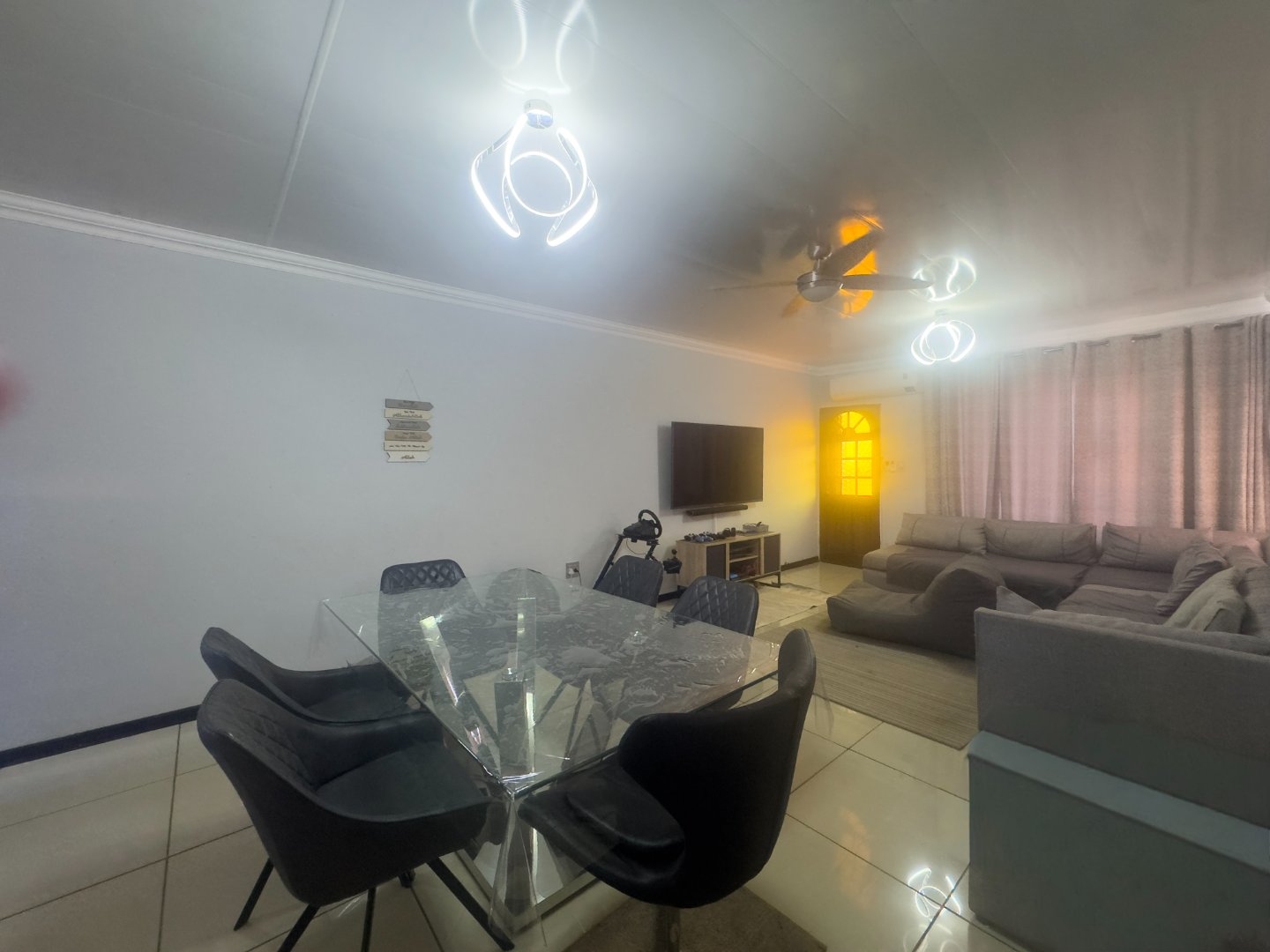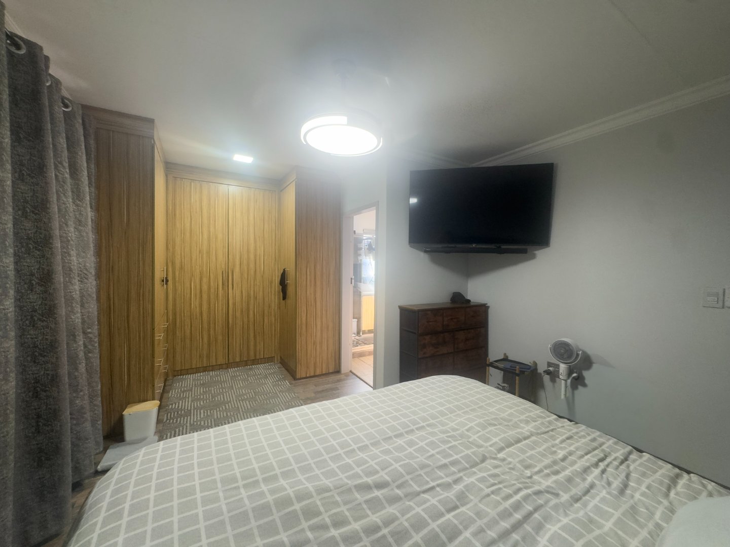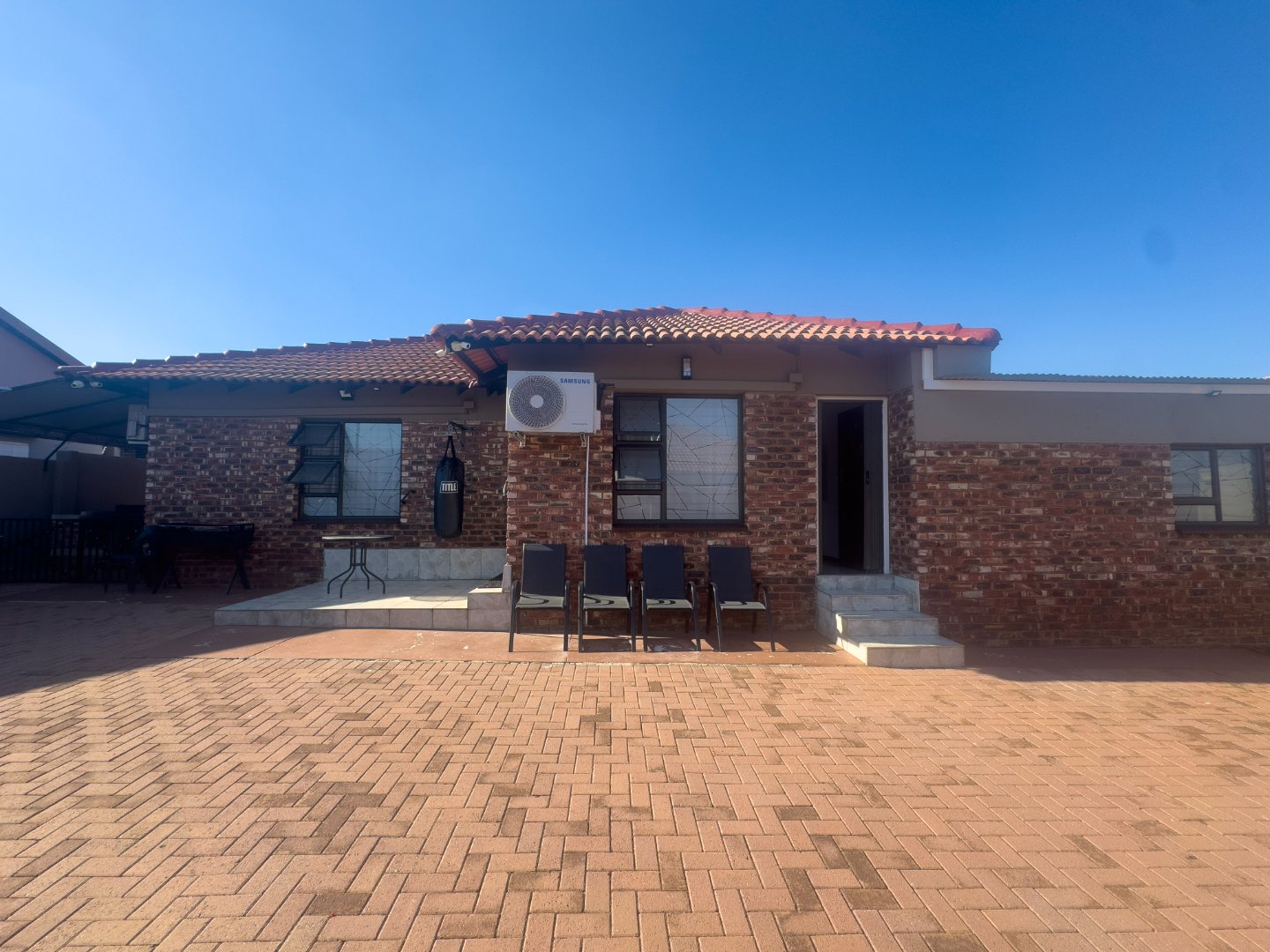 The home offers three generously sized bedrooms, all fitted with built-in cupboards and ceiling fans, along with two neat bathrooms. The main bedroom includes a private en-suite bathroom for added convenience.
