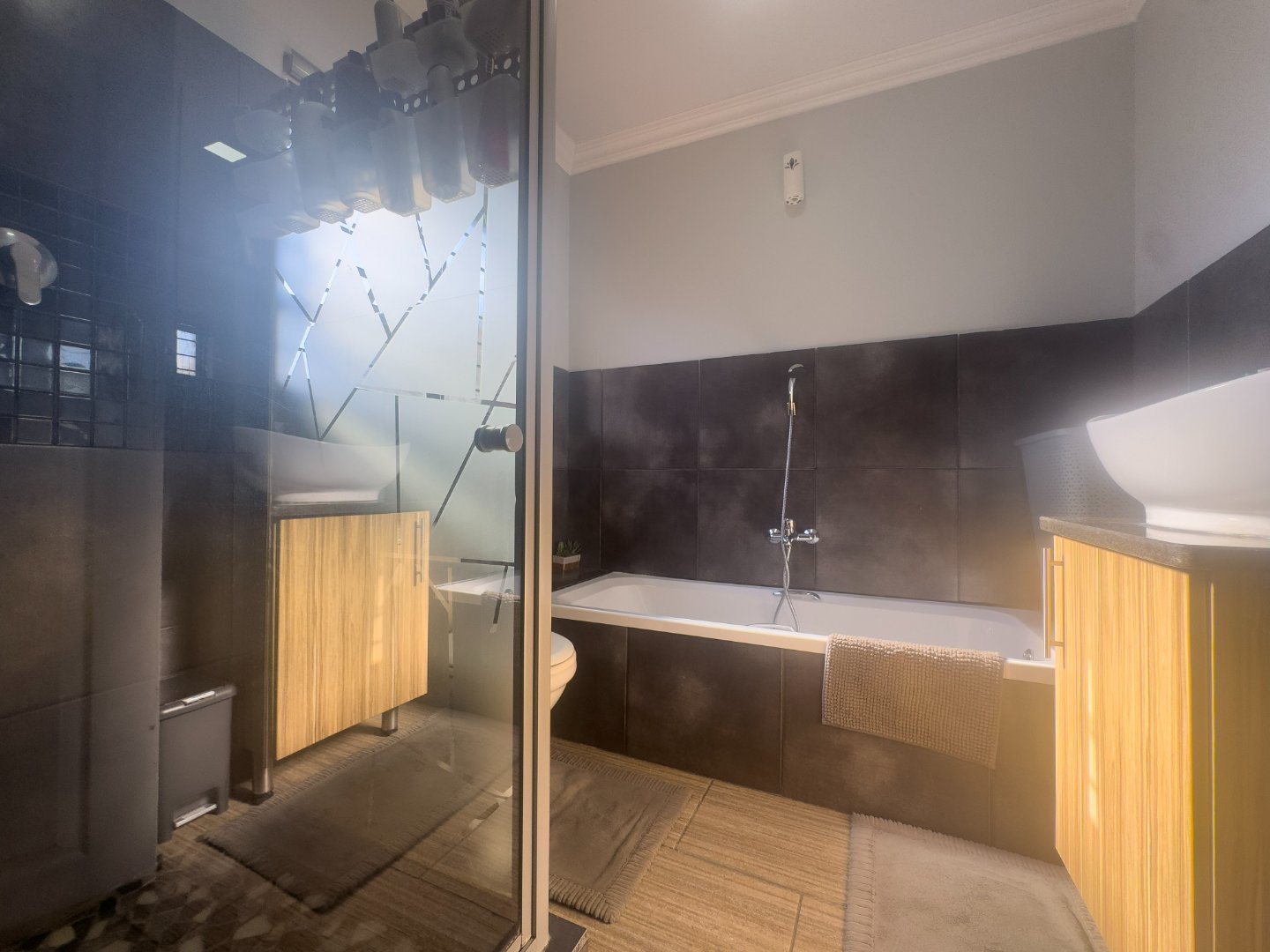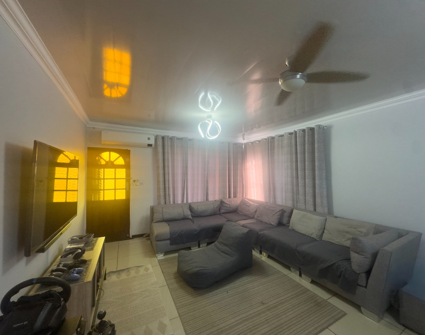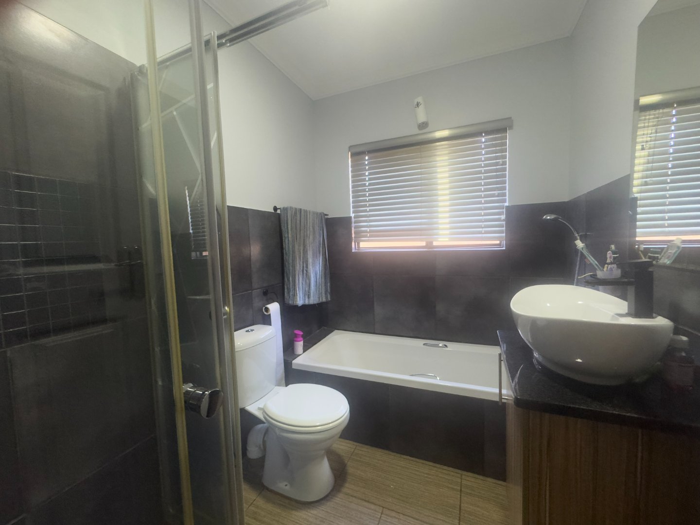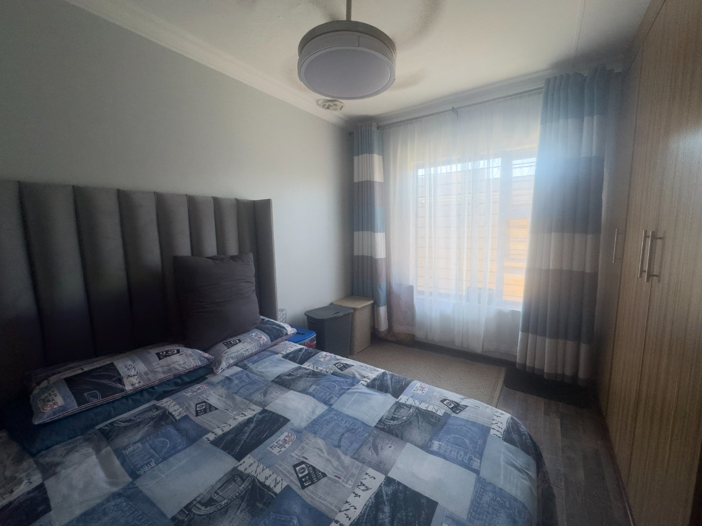 The home offers three generously sized bedrooms, all fitted with built-in cupboards and ceiling fans, along with two neat bathrooms. The main bedroom includes a private en-suite bathroom for added convenience.