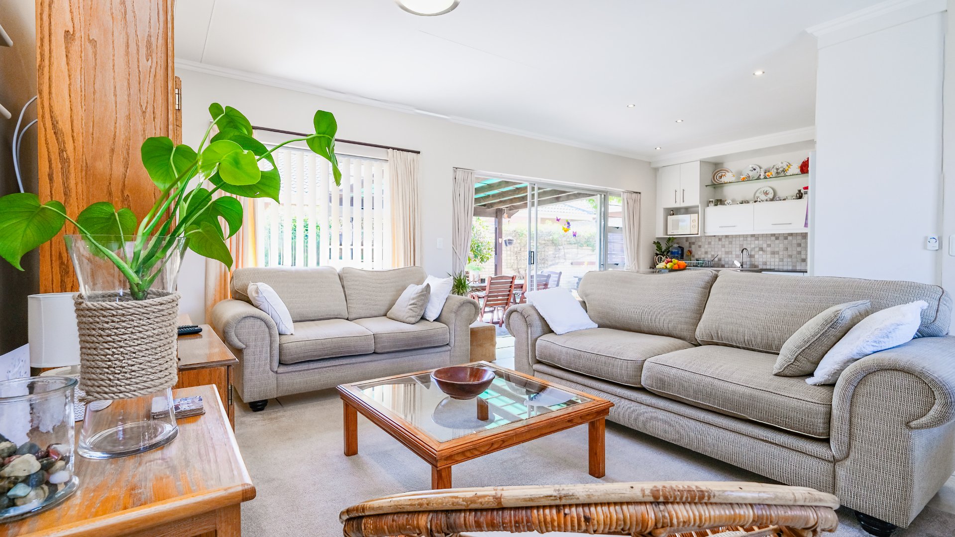The open-plan living area flows between the kitchen, dining, and lounge creating the perfect space for both relaxation and entertaining and leads out to a private undercover patio, ideal for outdoor dining, which overlooks a small, easy-to-maintain garden.