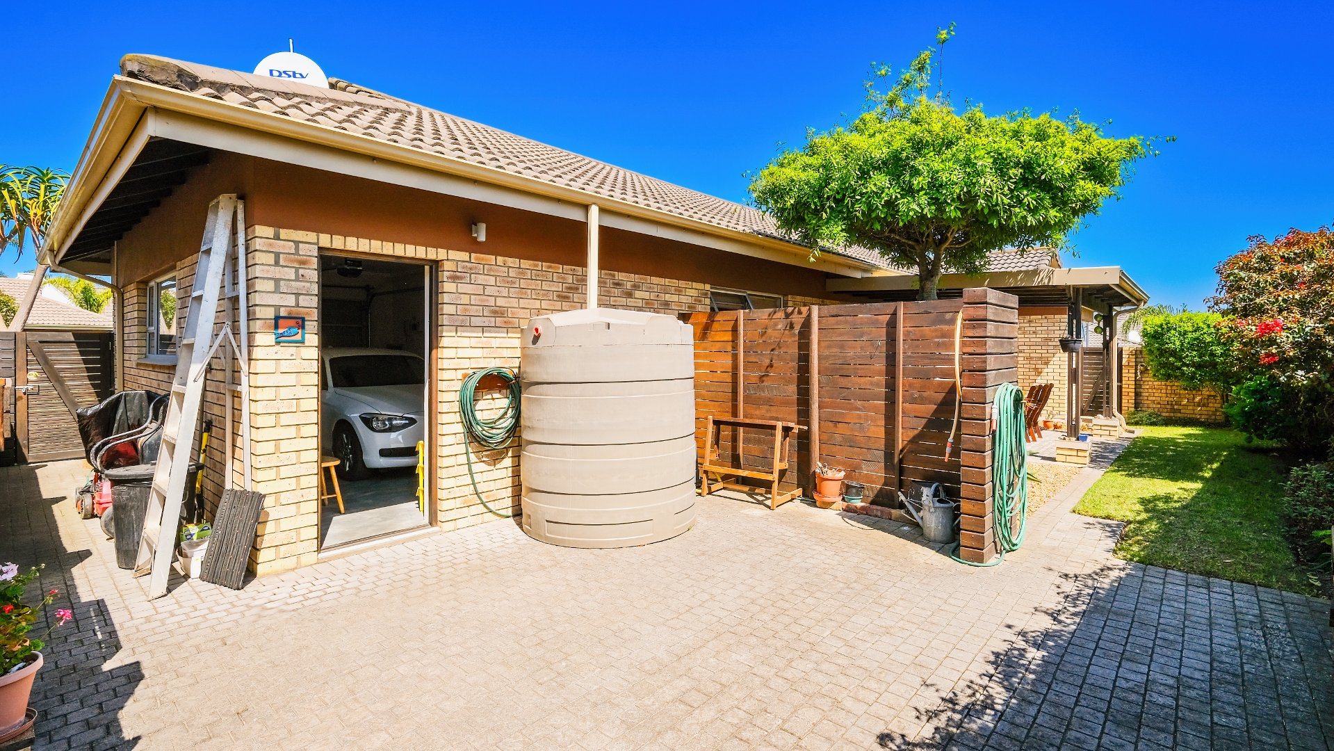 The home includes a single garage that is equipped with fittings for a washing machine, providing extra utility and storage space. An added feature is a water tank with pump.