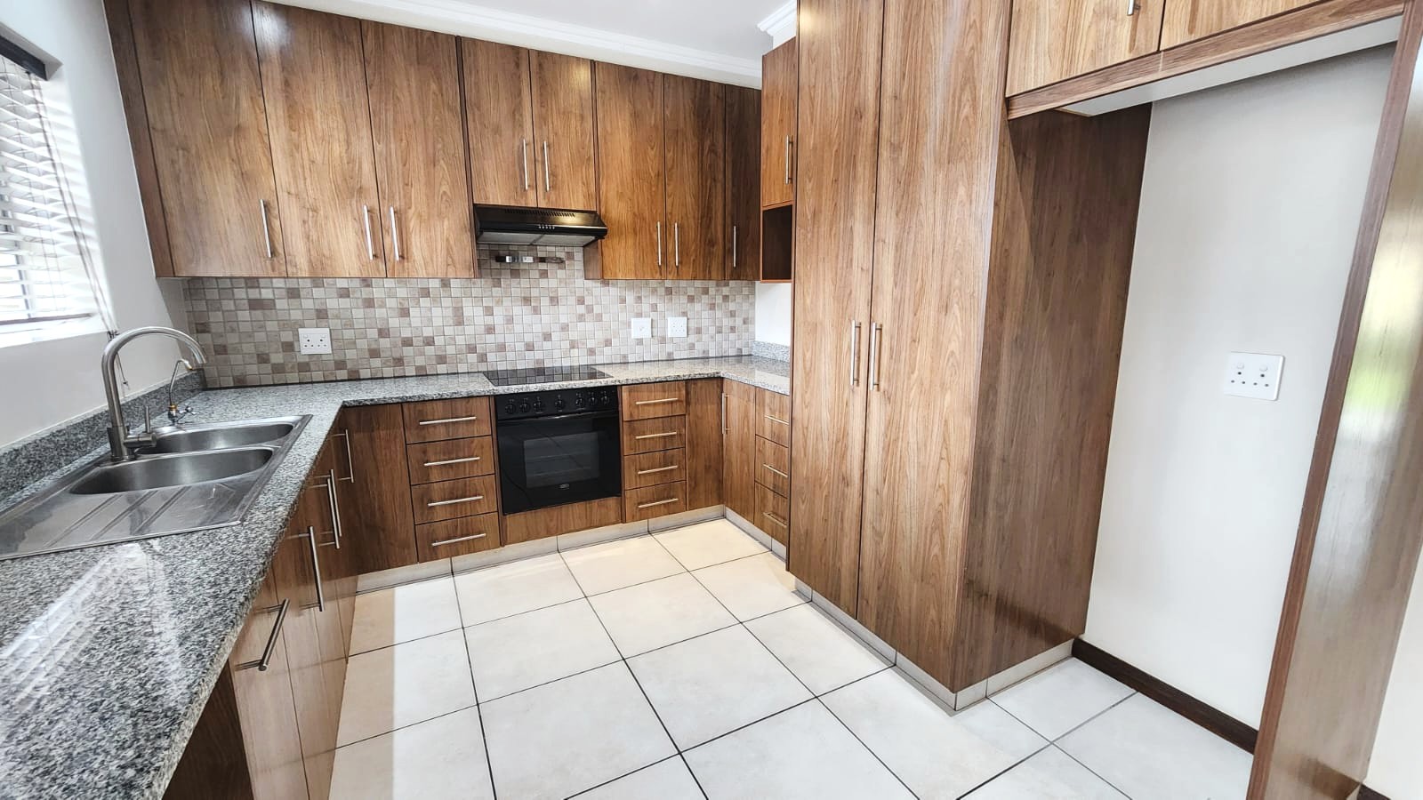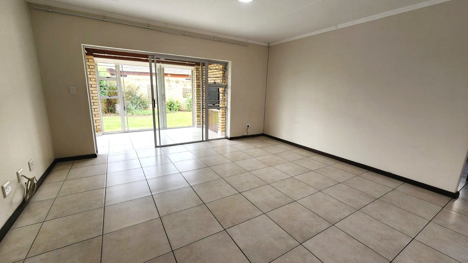 The unit features three well-sized bedrooms, with the main bedroom enjoying a full en-suite bathroom. The open-plan living areas flow effortlessly out to a neat, manageable garden with an enclosed patio with a built-in braai.